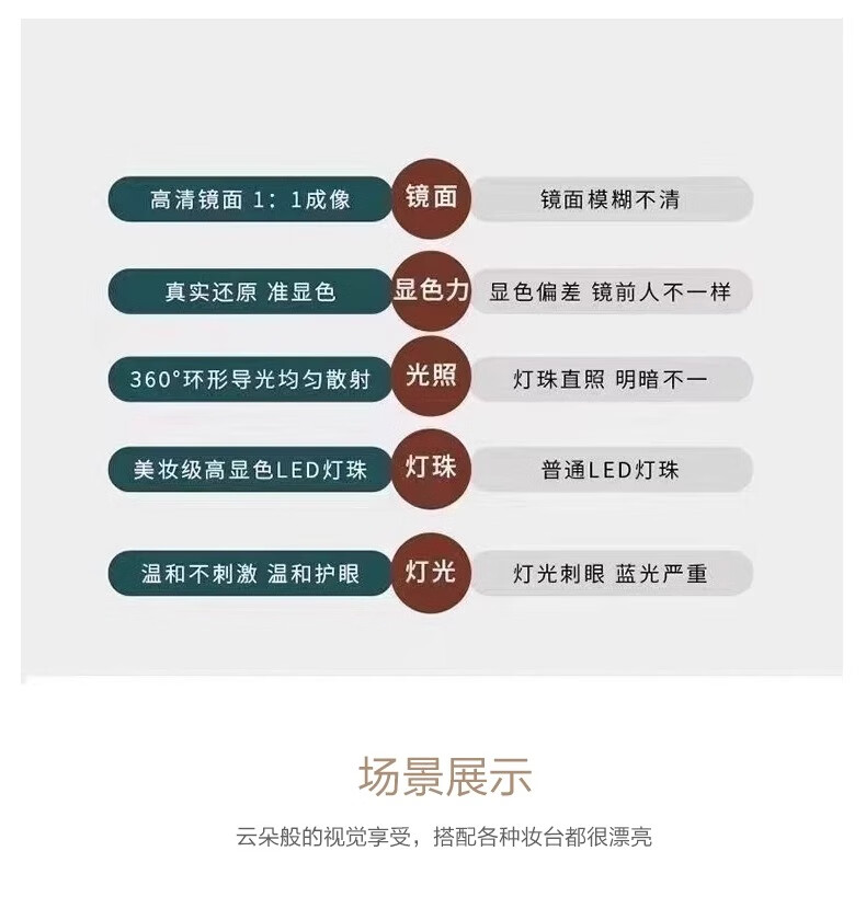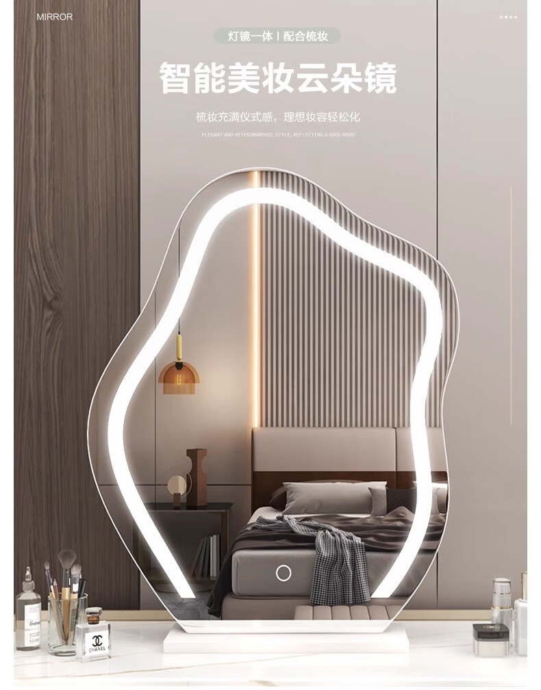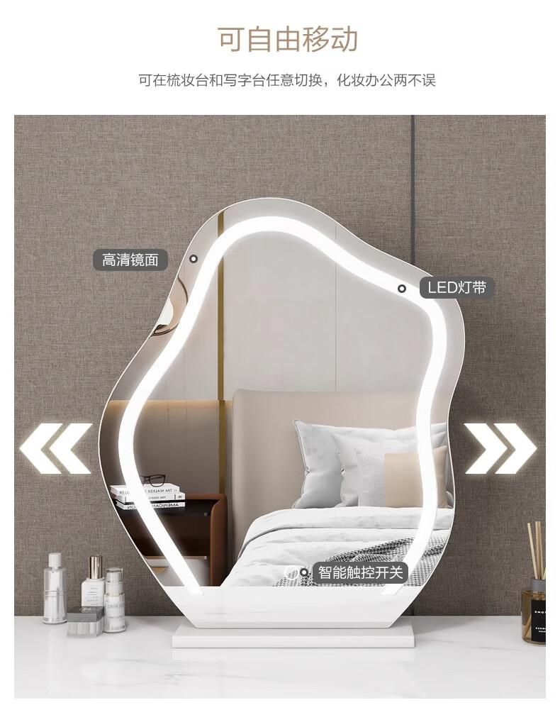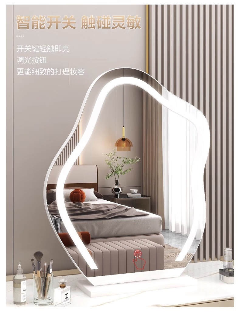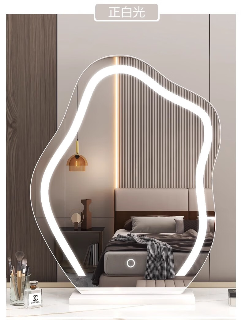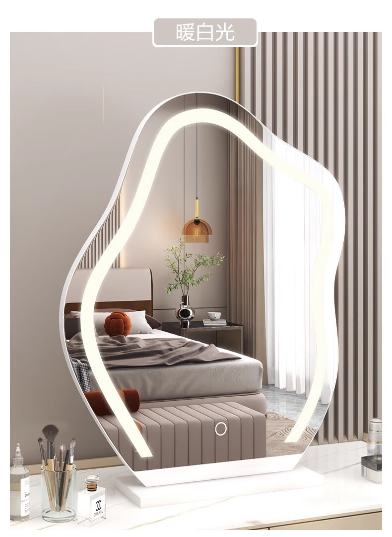 Fat Donglai's same style vanity mirror, tabletop, lighted vanity mirror, light luxury LED smart mirror, master bedroom vanity mirror, medium white without light