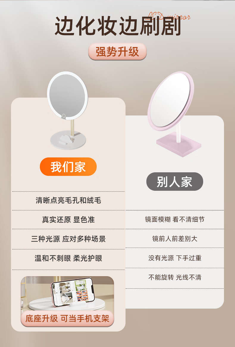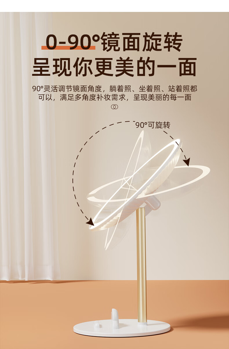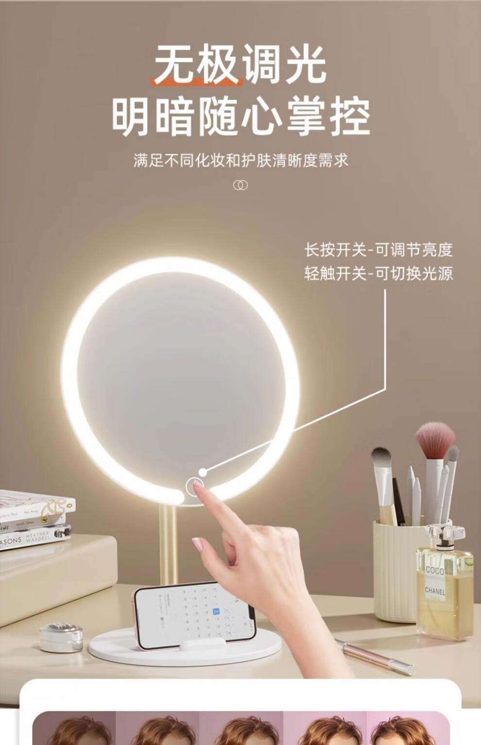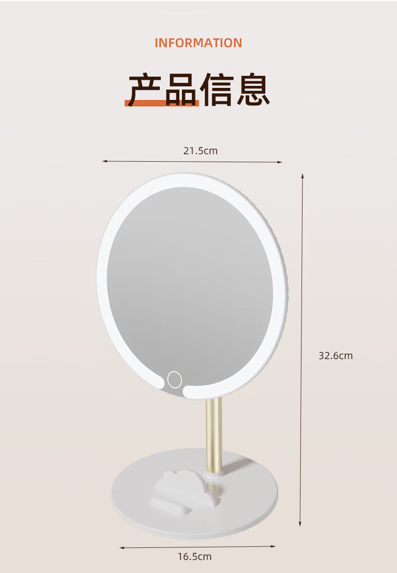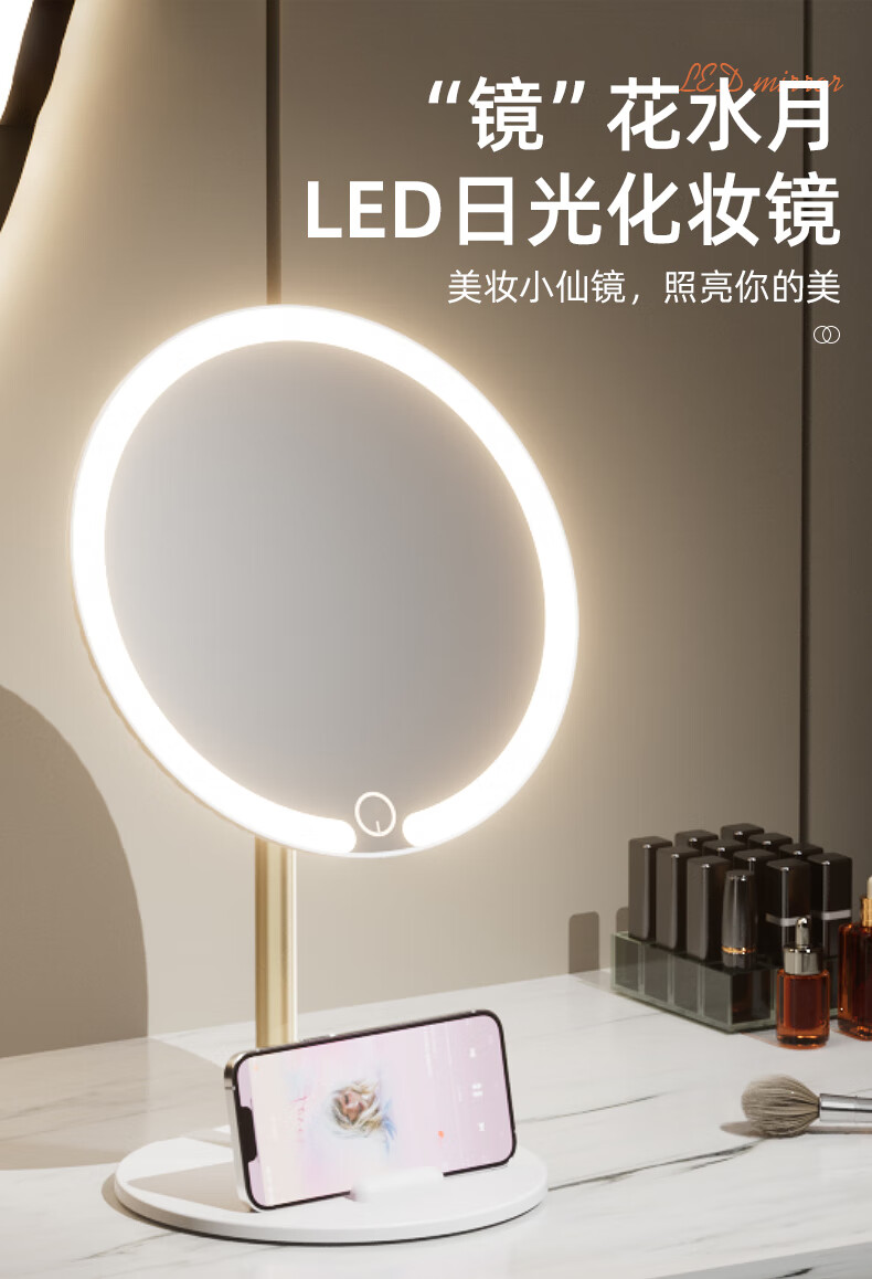 2025 new makeup storage tube E mirror makeup mirror tabletop with light student home supplementary light mirror standard ivory white three-button control stepless dimming
