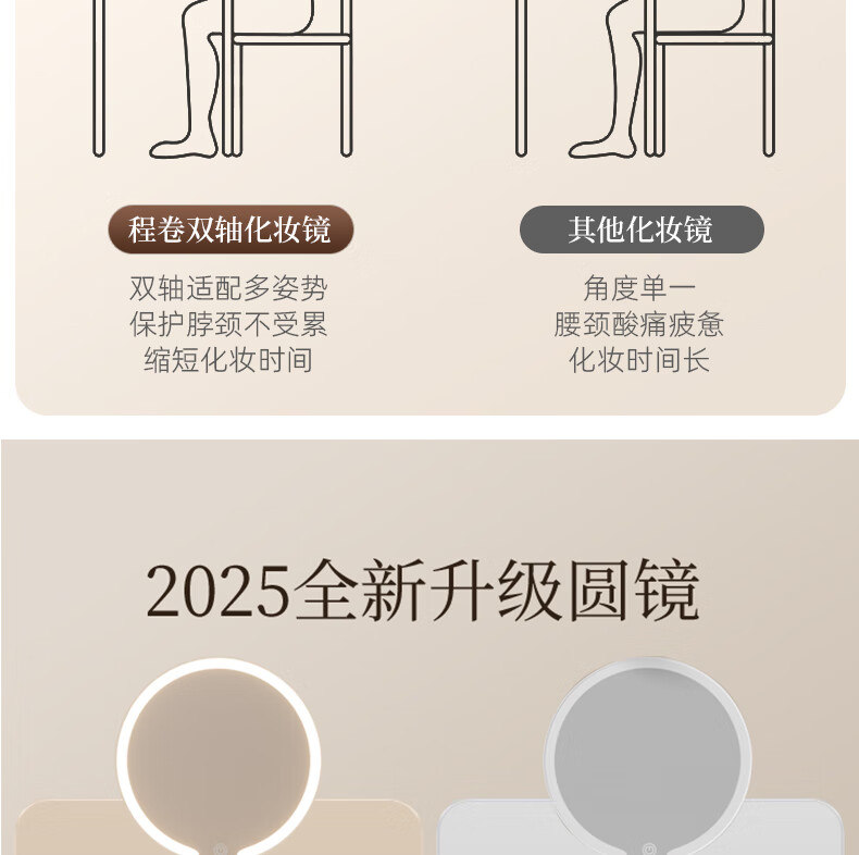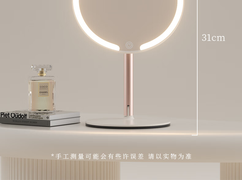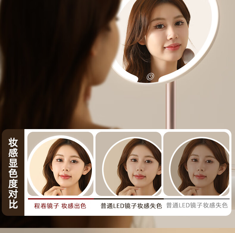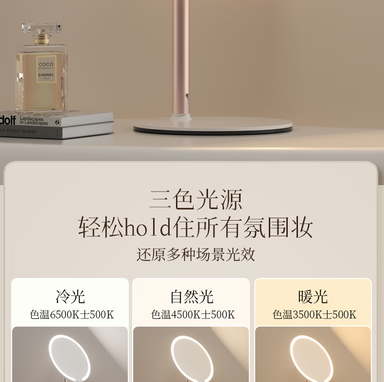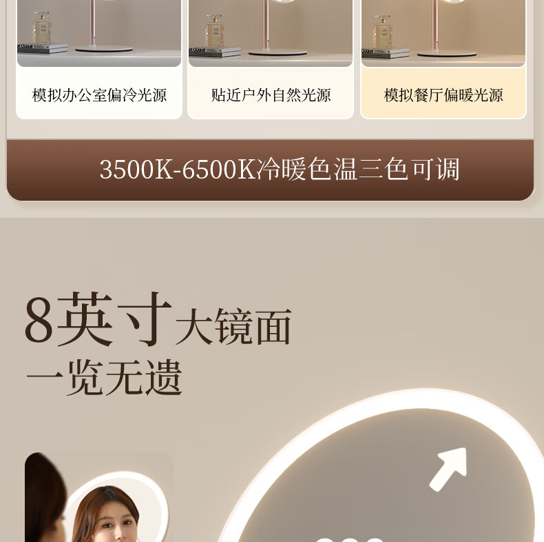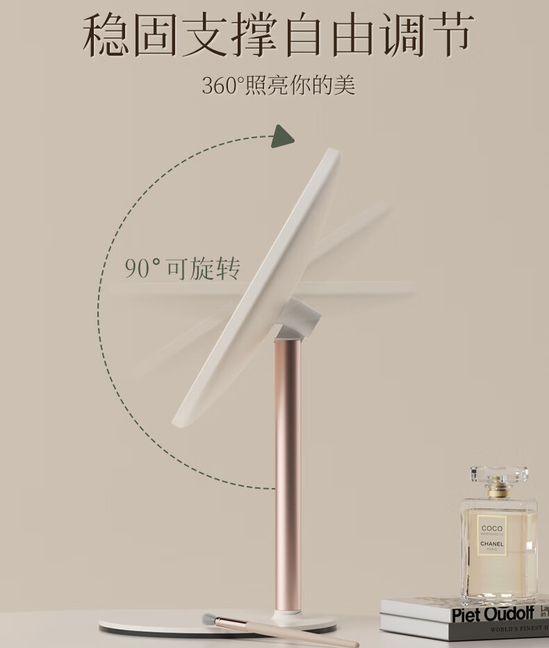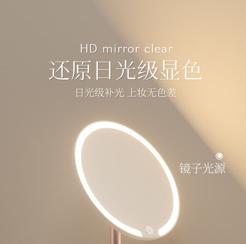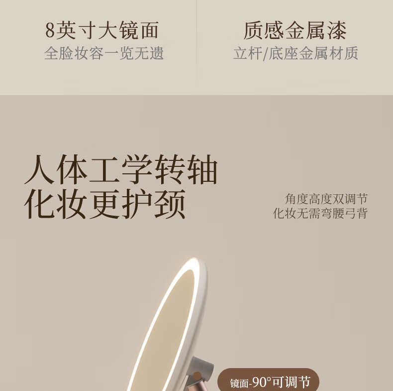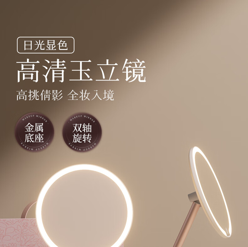 Fat Donglai's same model 2025 new double-axis mirror makeup mirror LED with light desktop desktop home student dormitory beauty supplement light mirror classic jade porcelain white three-color light source soft light eye protection -2400AH
