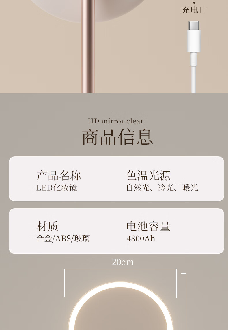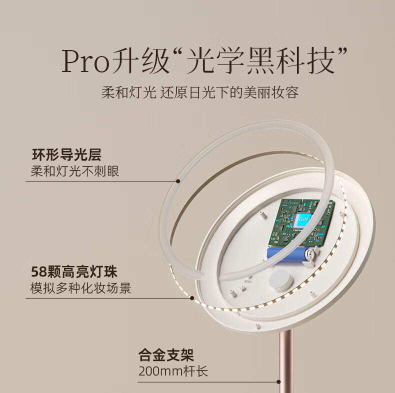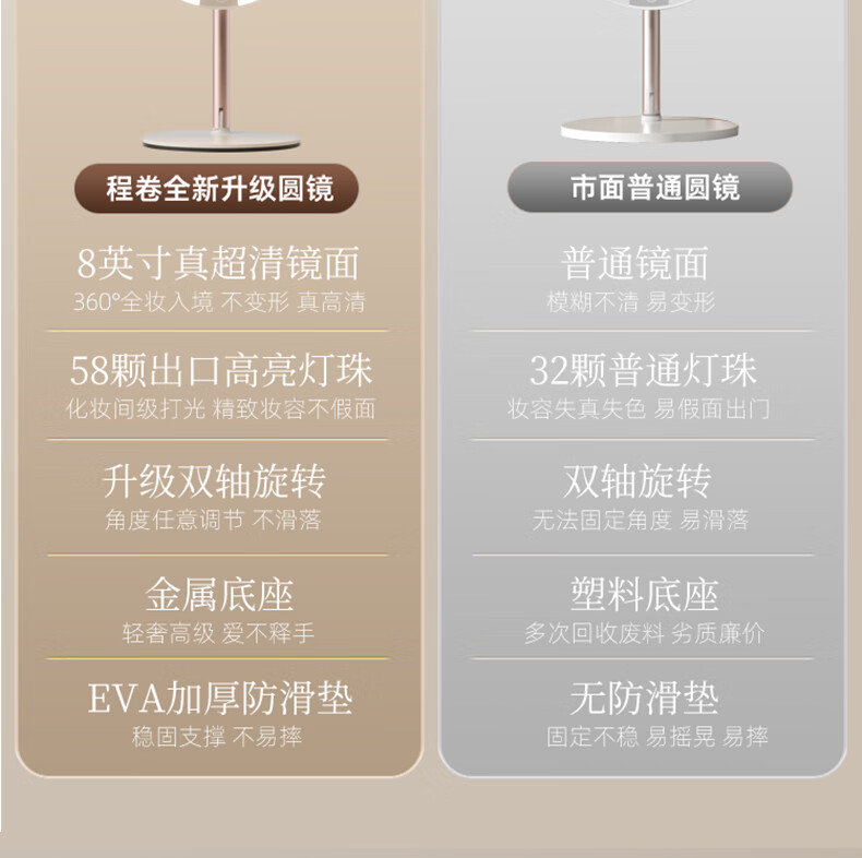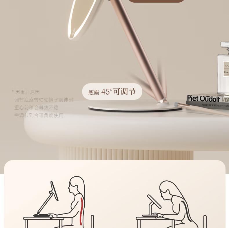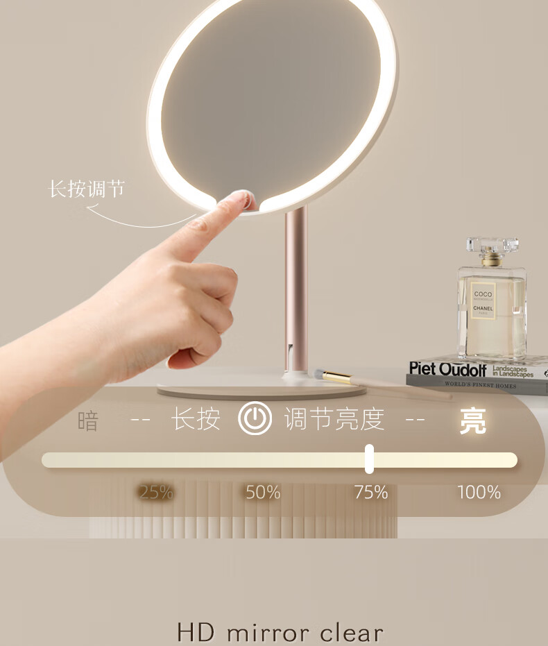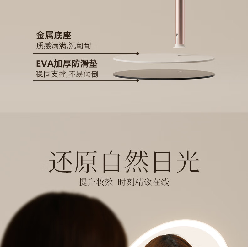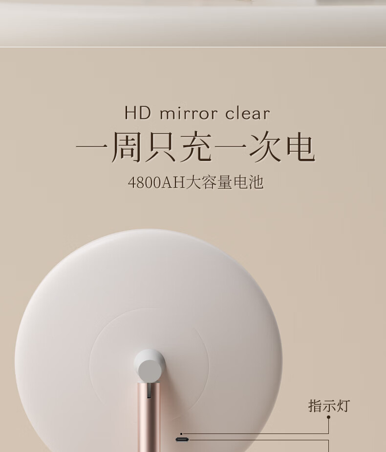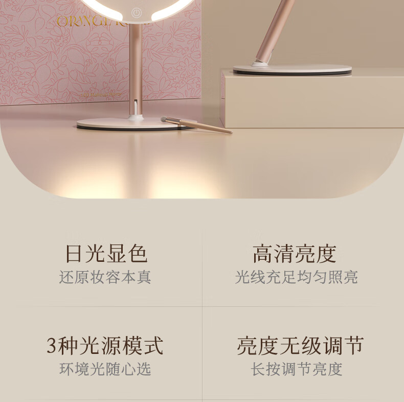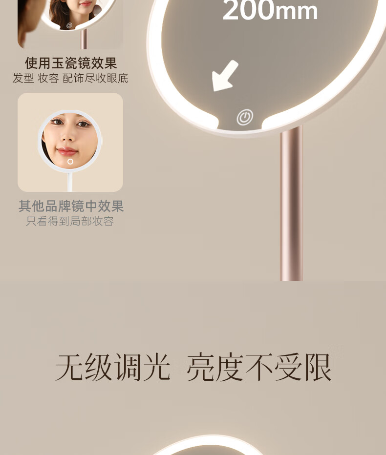 Fat Donglai's same model 2025 new double-axis mirror makeup mirror LED with light desktop desktop home student dormitory beauty supplement light mirror classic jade porcelain white three-color light source soft light eye protection -2400AH