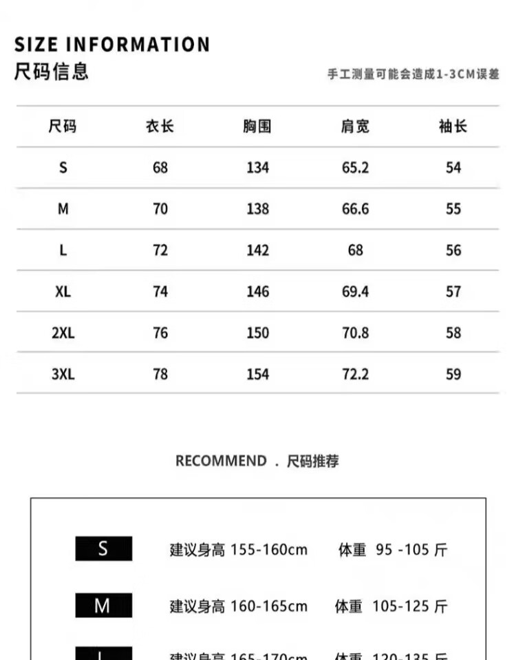 China (cm) 165 / 88-90 170 / 96-98 175 / 108-110 180 / 118-122 185 / 126-130