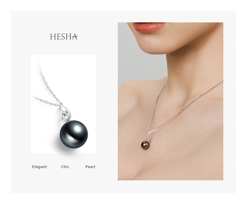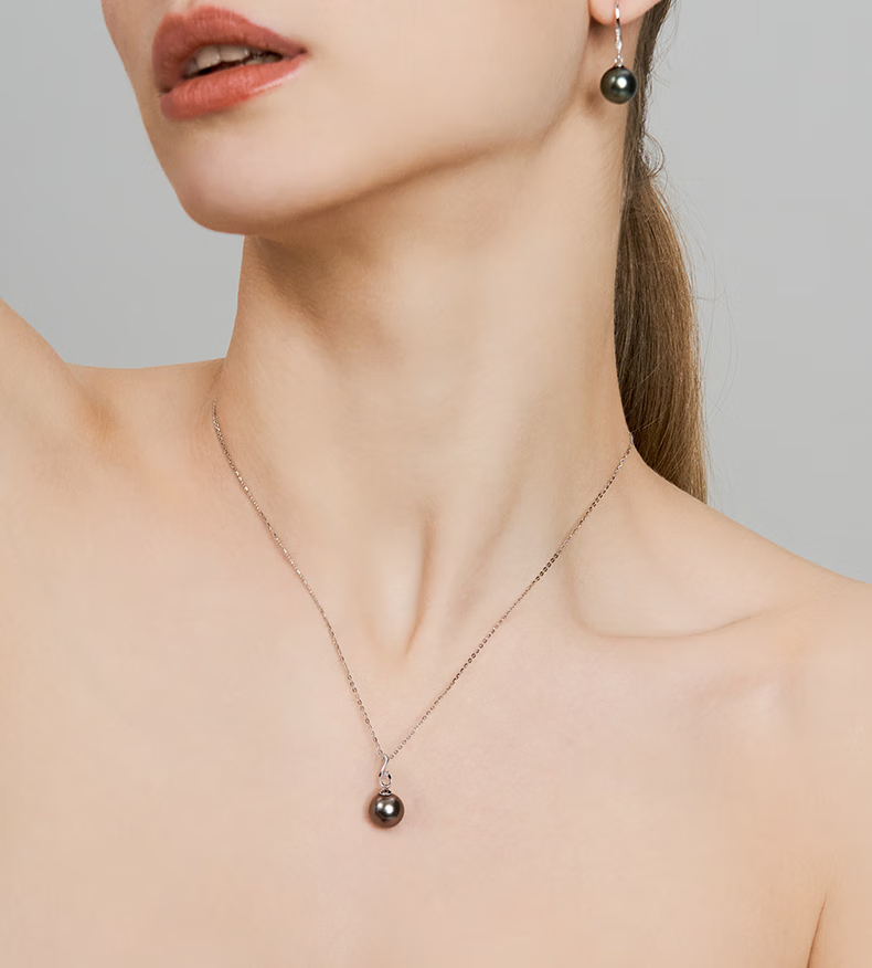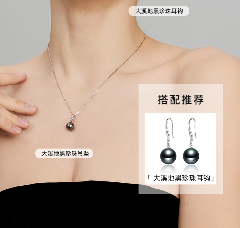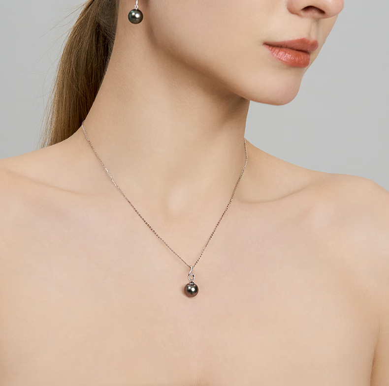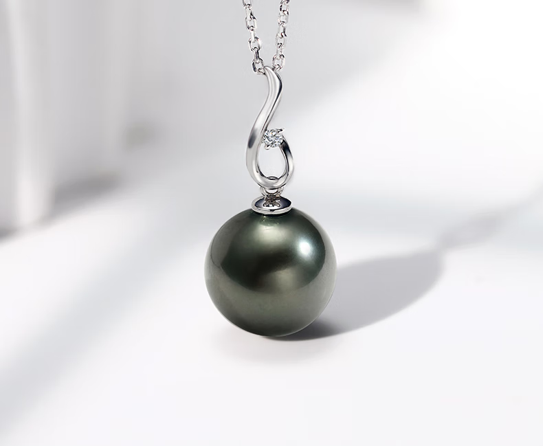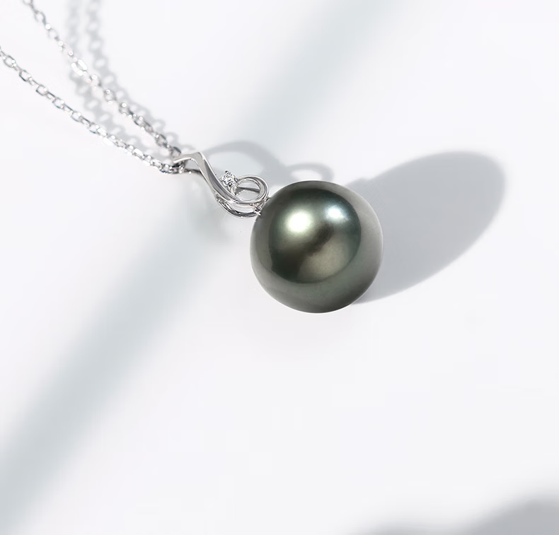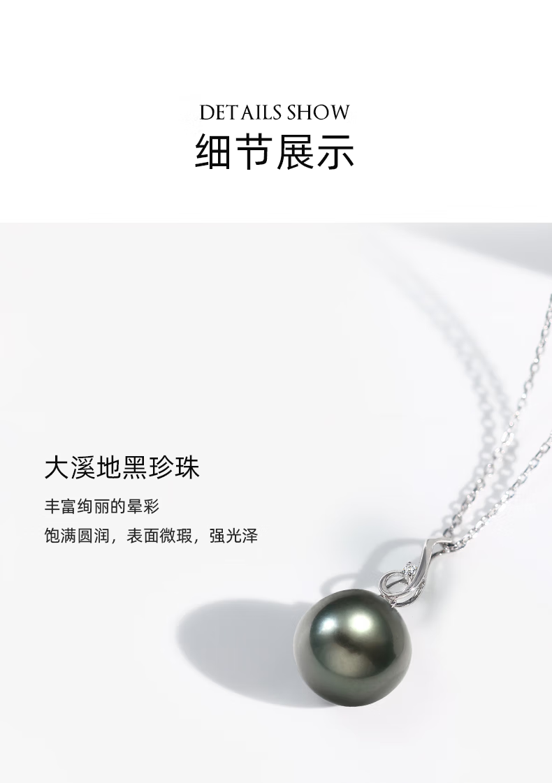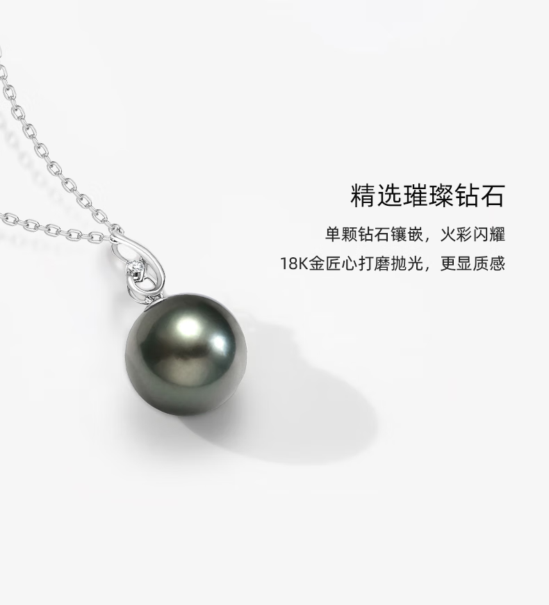 Queshe selects high-quality gold-set diamond seawater black pearl pendant necklace Chinese Valentine's Day gift S-level/flawless+gold chain 10-11mm