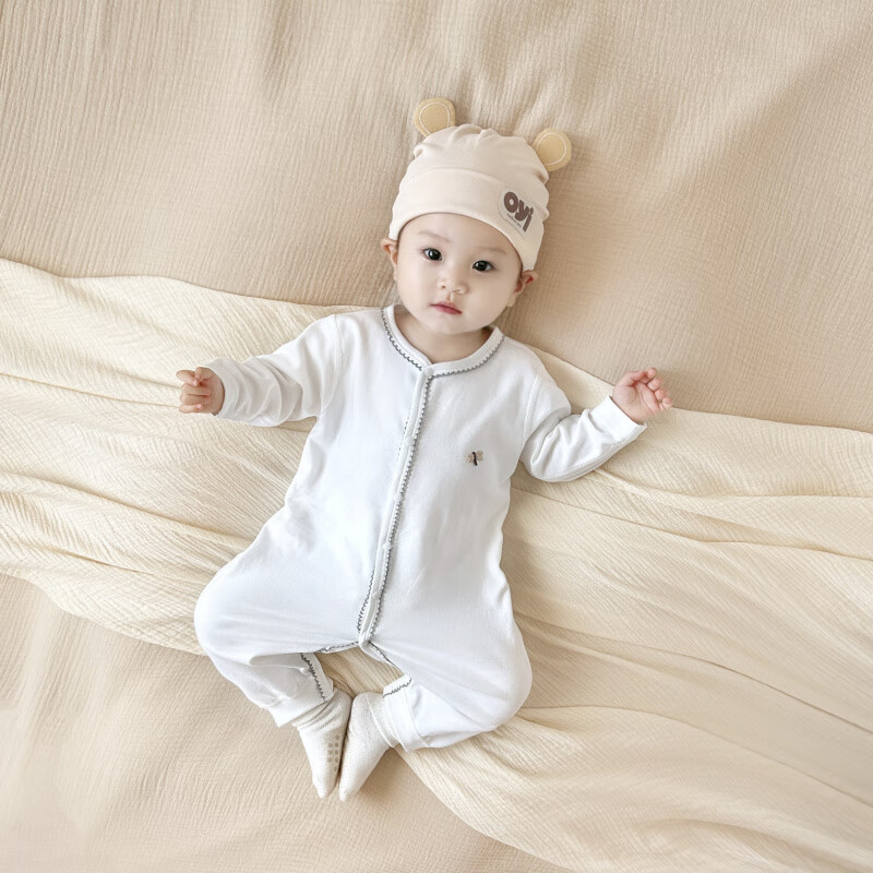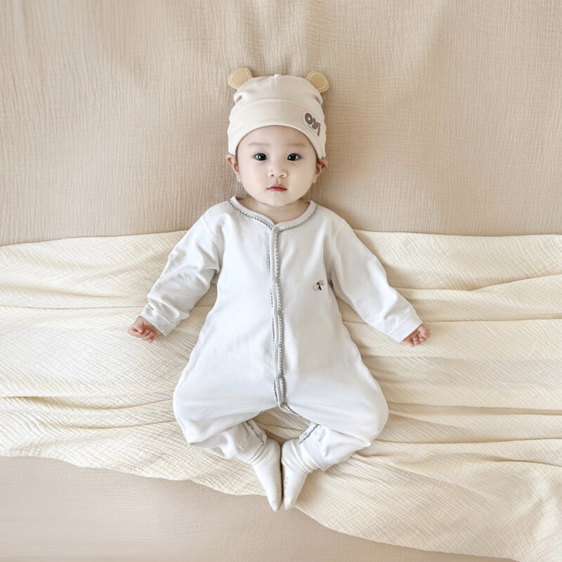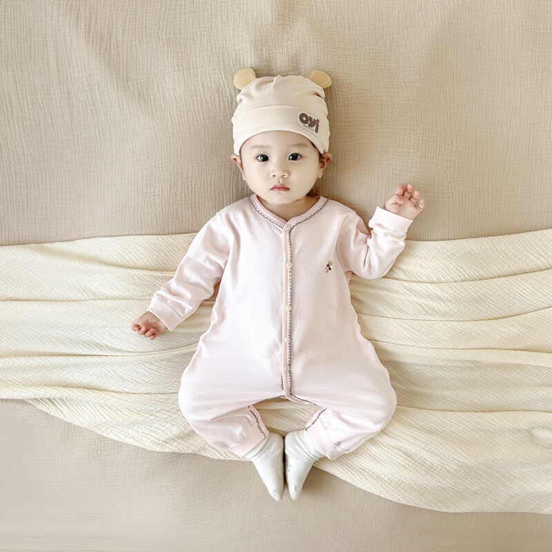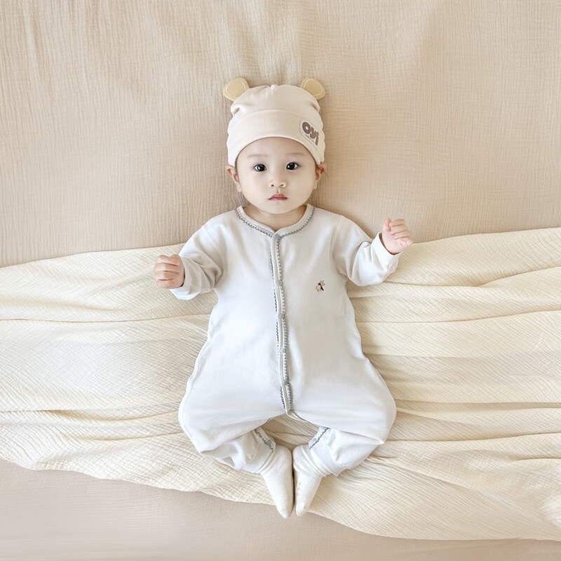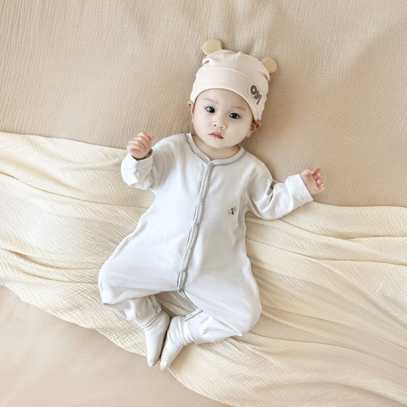 Semir children's spring and autumn baby pure cotton jumpsuit for boys and girls, long-sleeved romper, newborn baby outing home clothes, coffee color 66cm