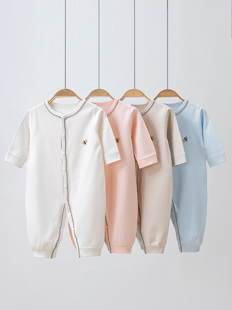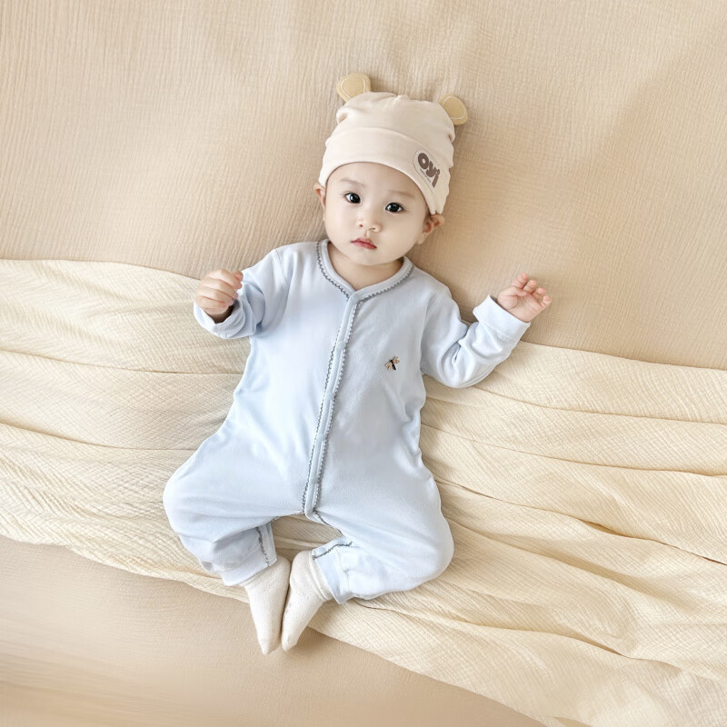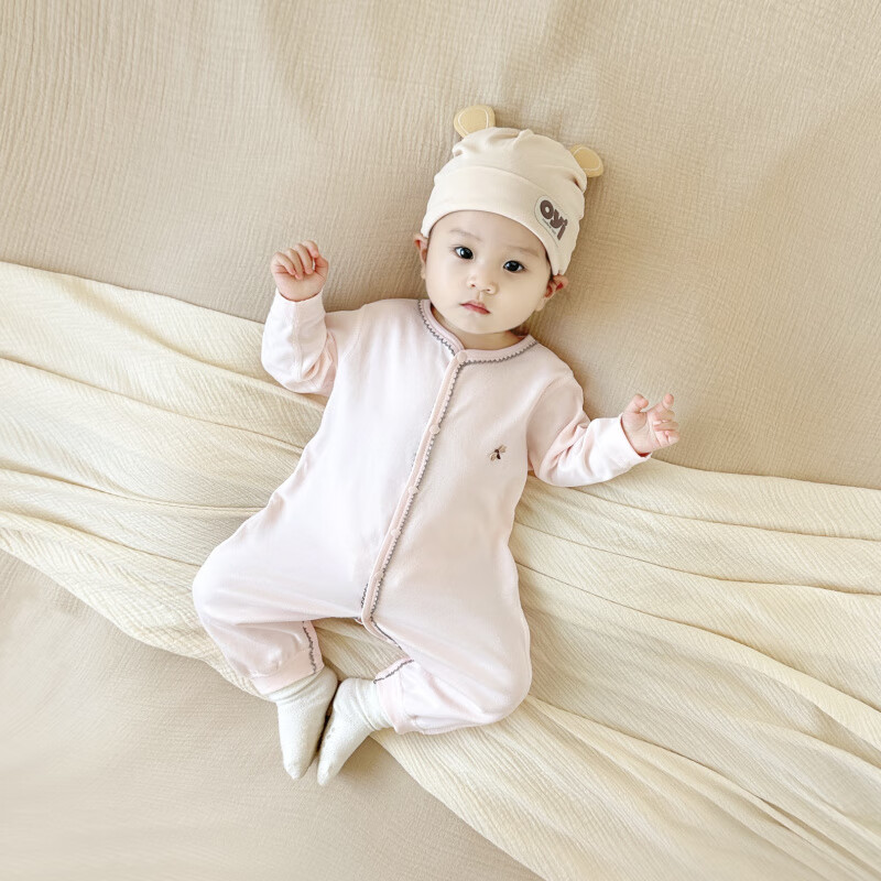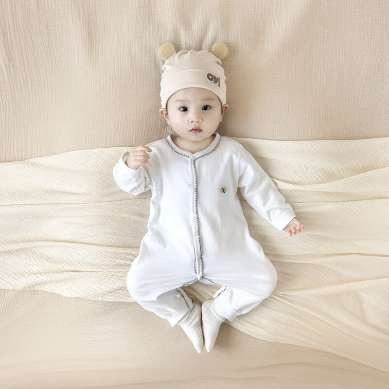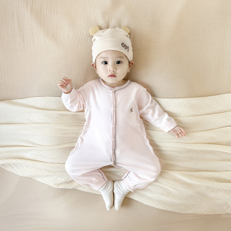 Semir children's spring and autumn baby pure cotton jumpsuit for boys and girls, long-sleeved romper, newborn baby outing home clothes, coffee color 66cm