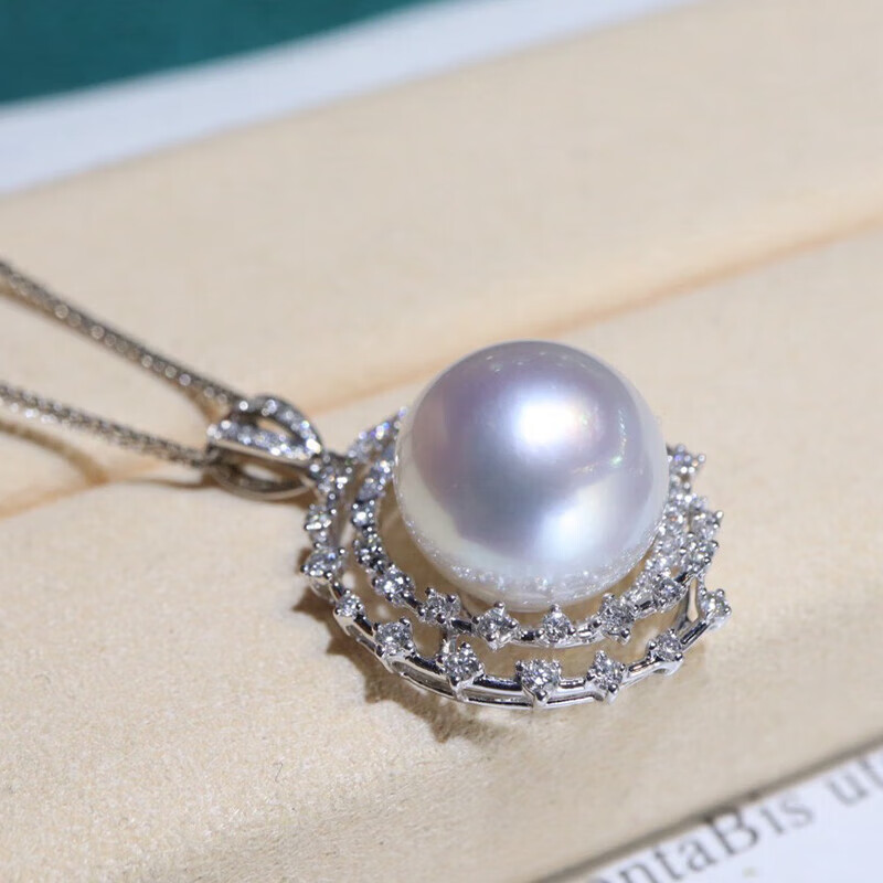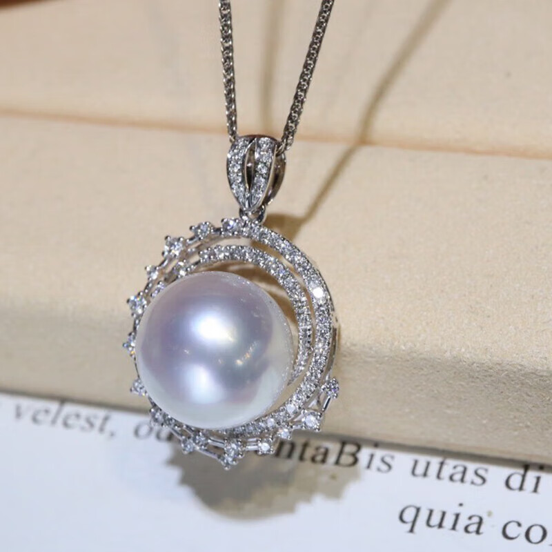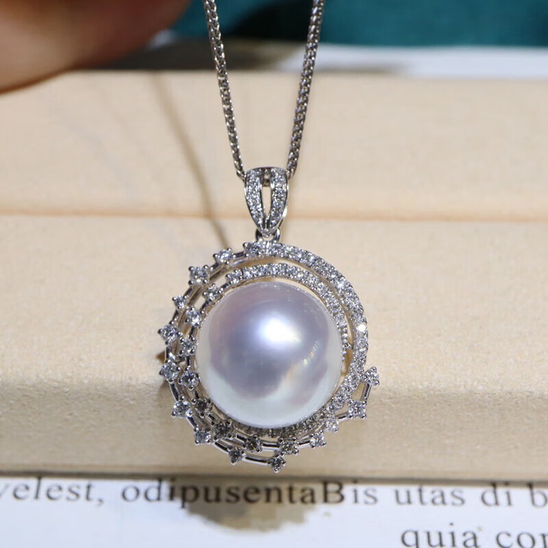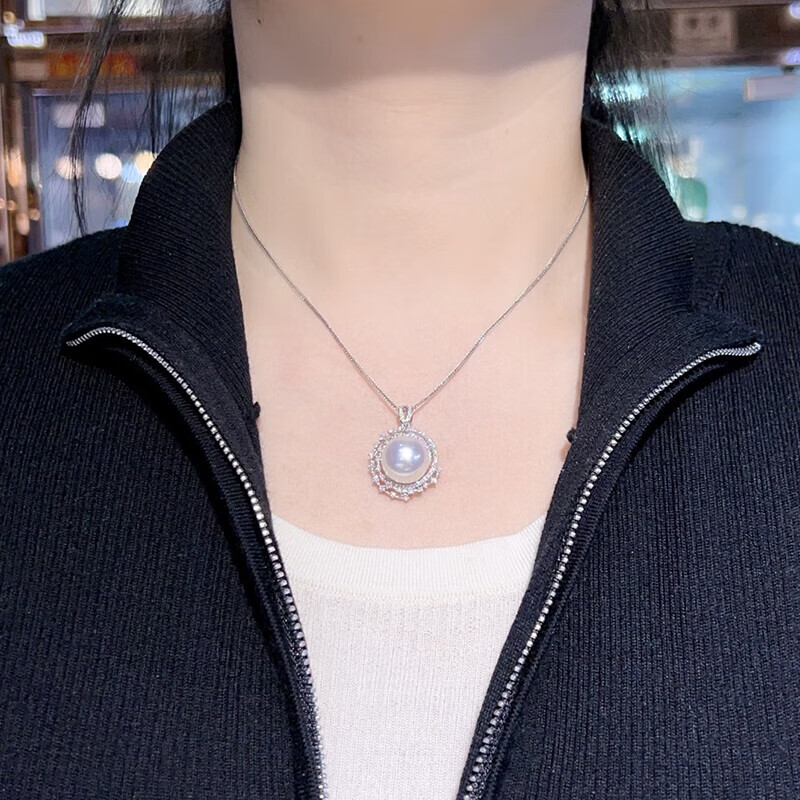 Zheng Xingyao white pearl pendant seawater necklace gold diamond temperament clavicle chain for birthday gift 13.1mm 3.1mm