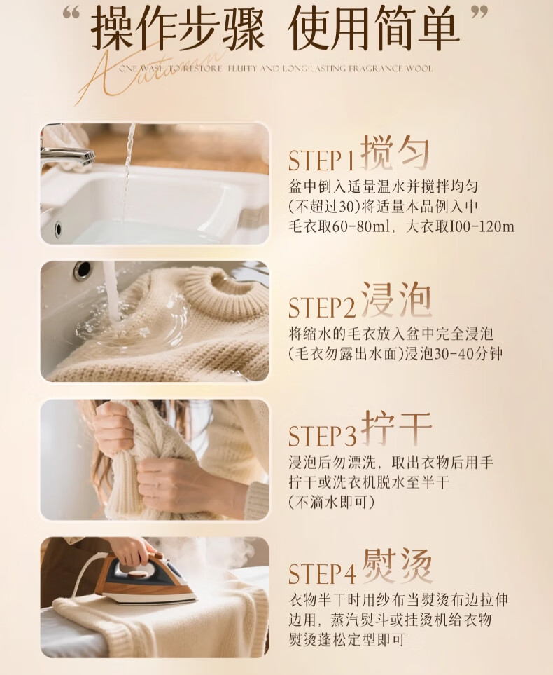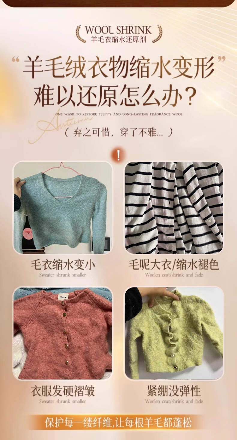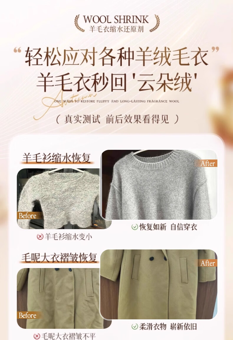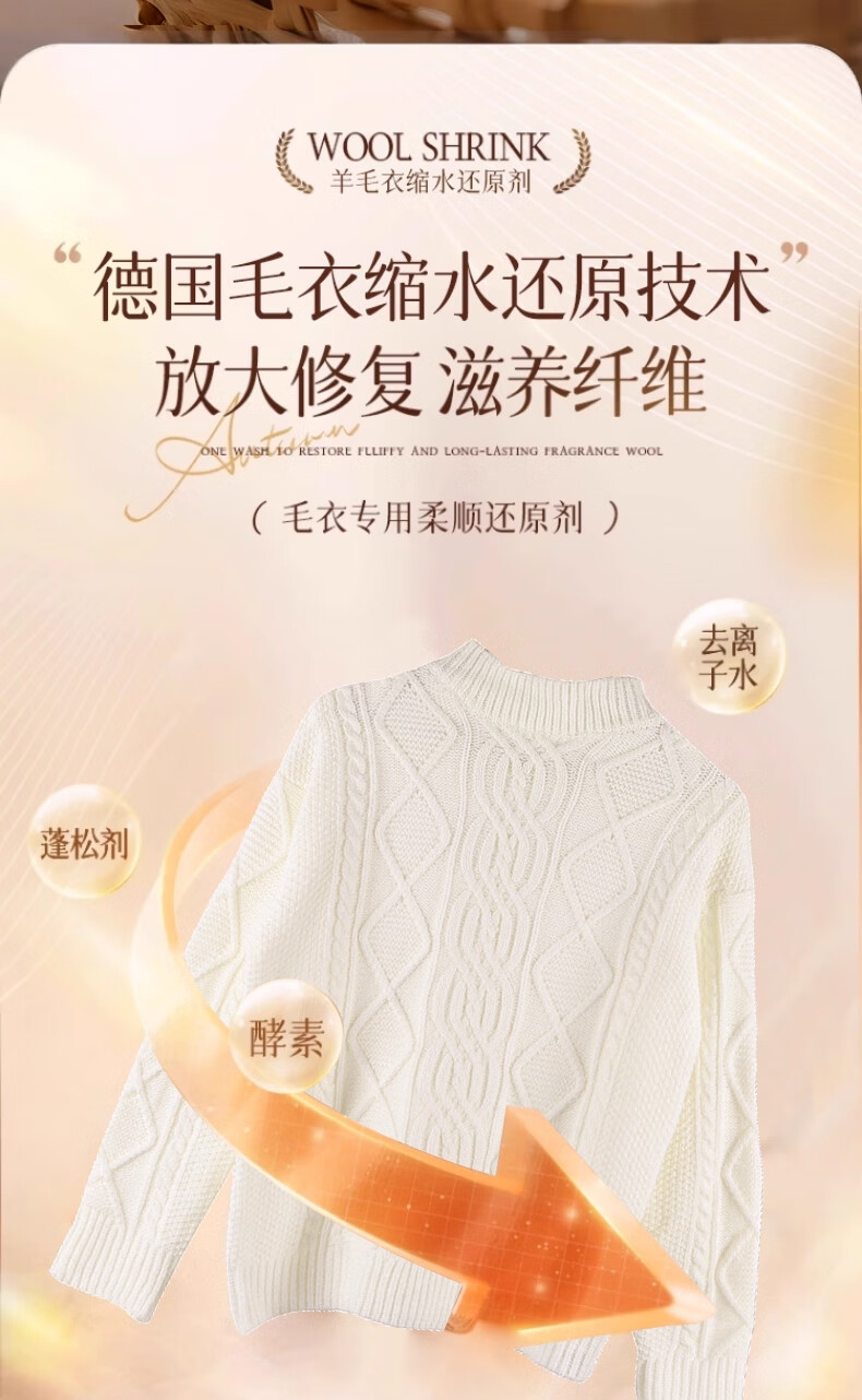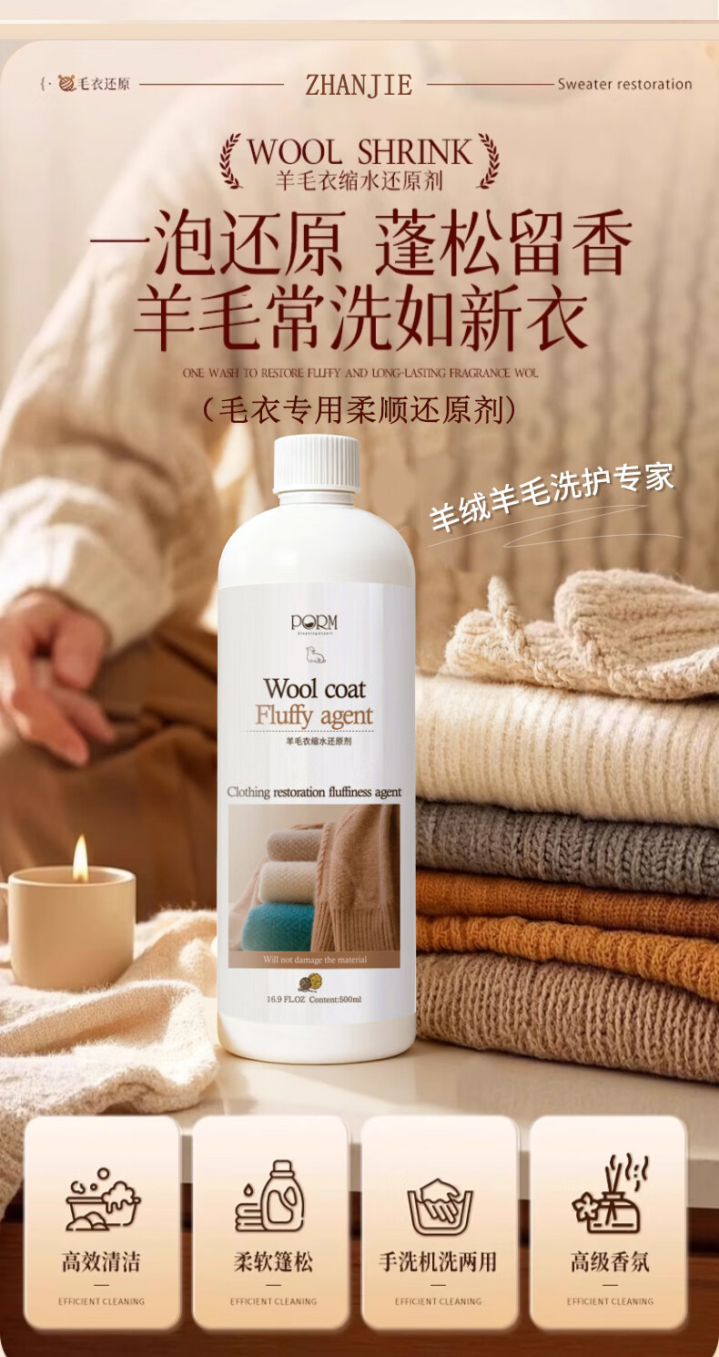 ZHANJIE imported from Germany, woolen sweaters, clothes shrinkage recovery agent, enlarging fluffy softener, detergent, group buying service, single shot, no delivery