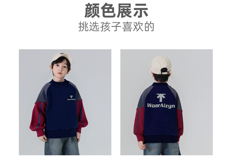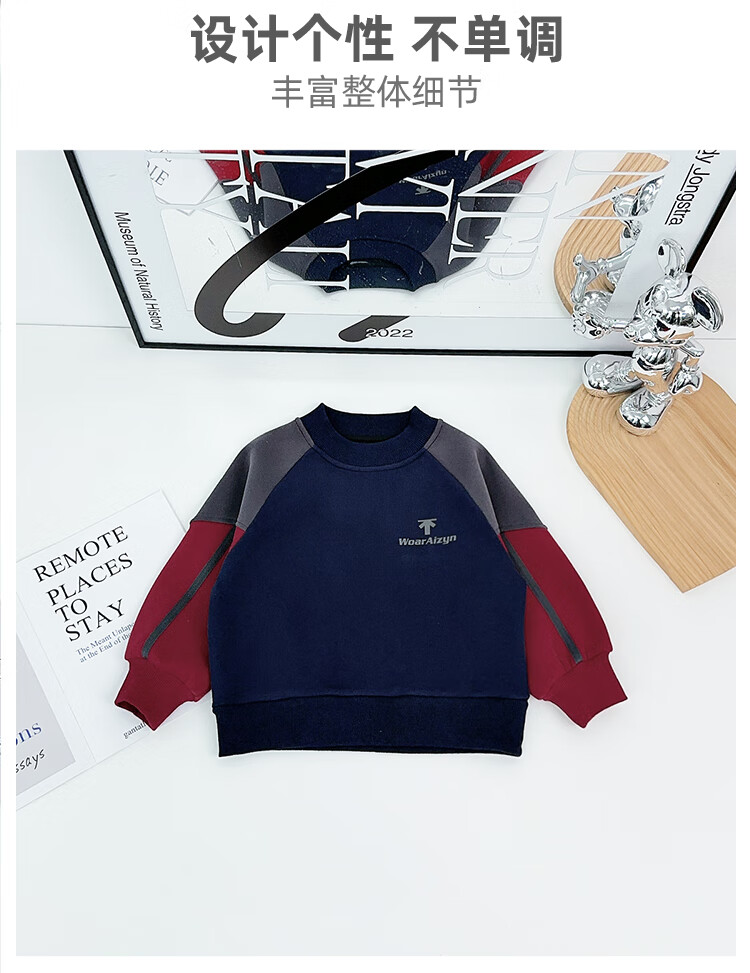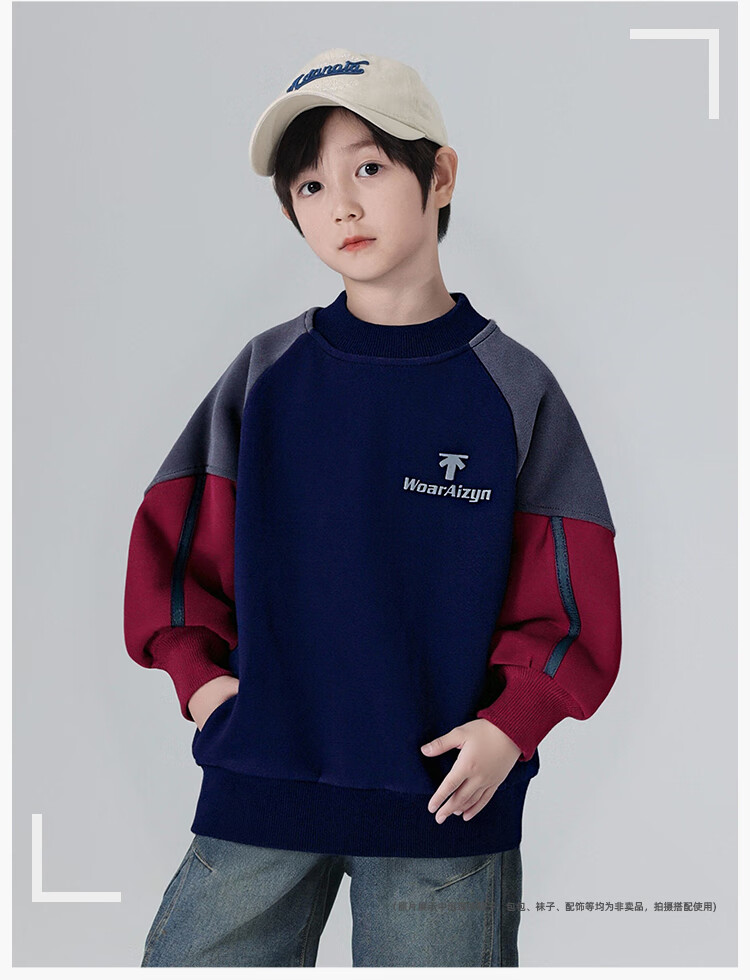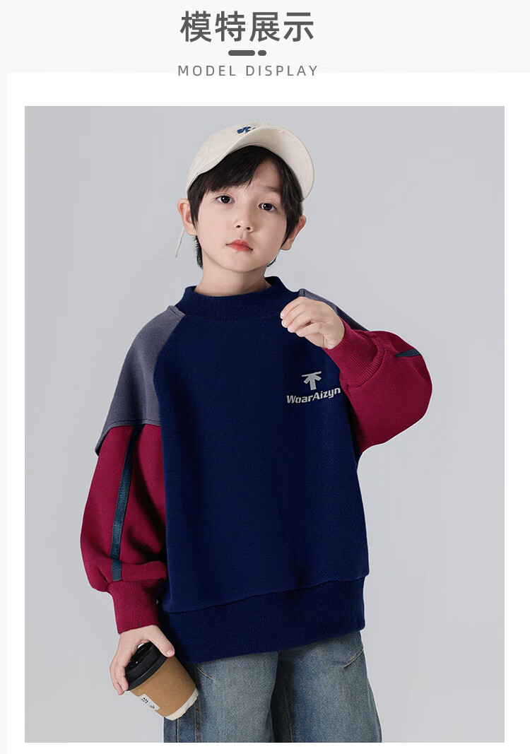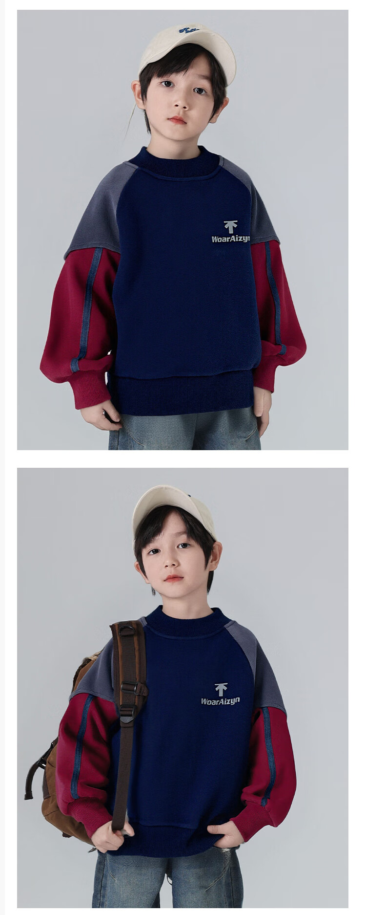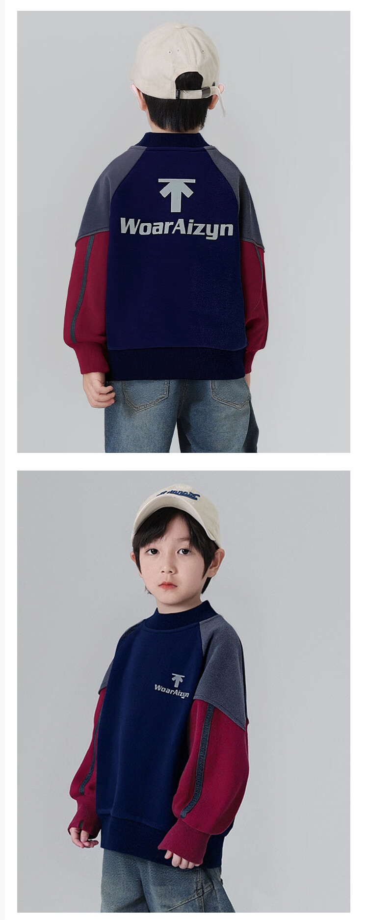 Youyou Fairy Tale Autumn and Winter Boys' Western Style Sweaters Plush Cotton 2025 Children's Warm Bottoming Shirts Thickened Medium and Large Children's Trendy Clothes Navy Blue 150 72