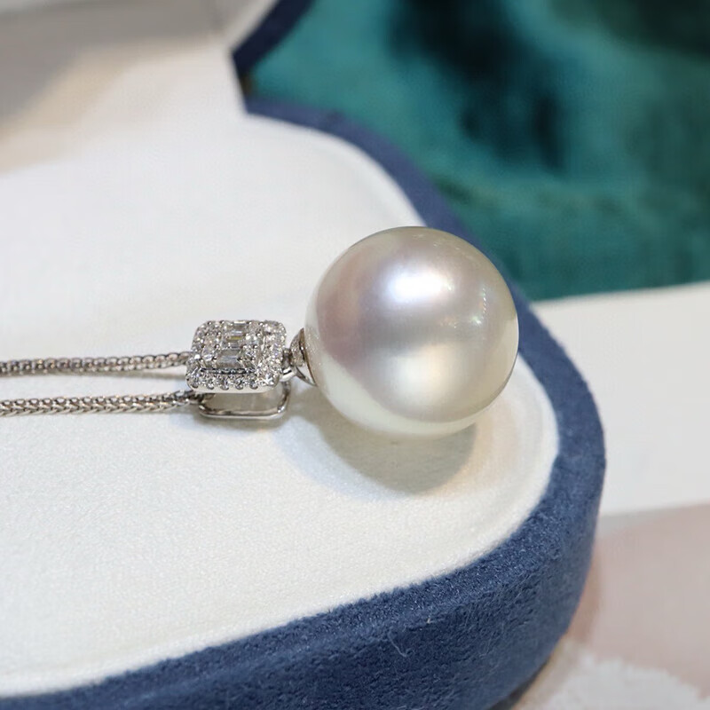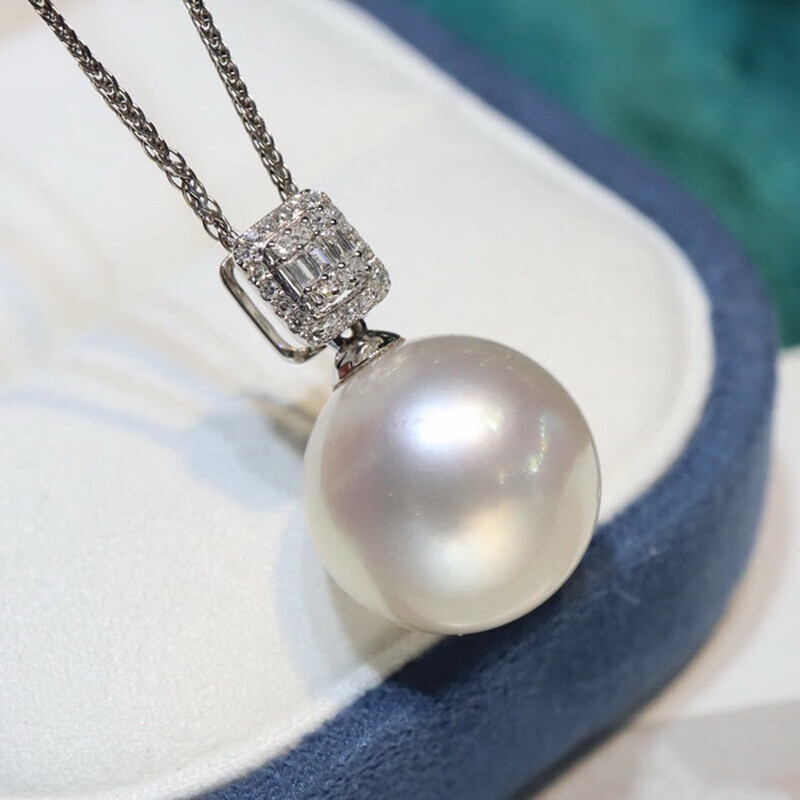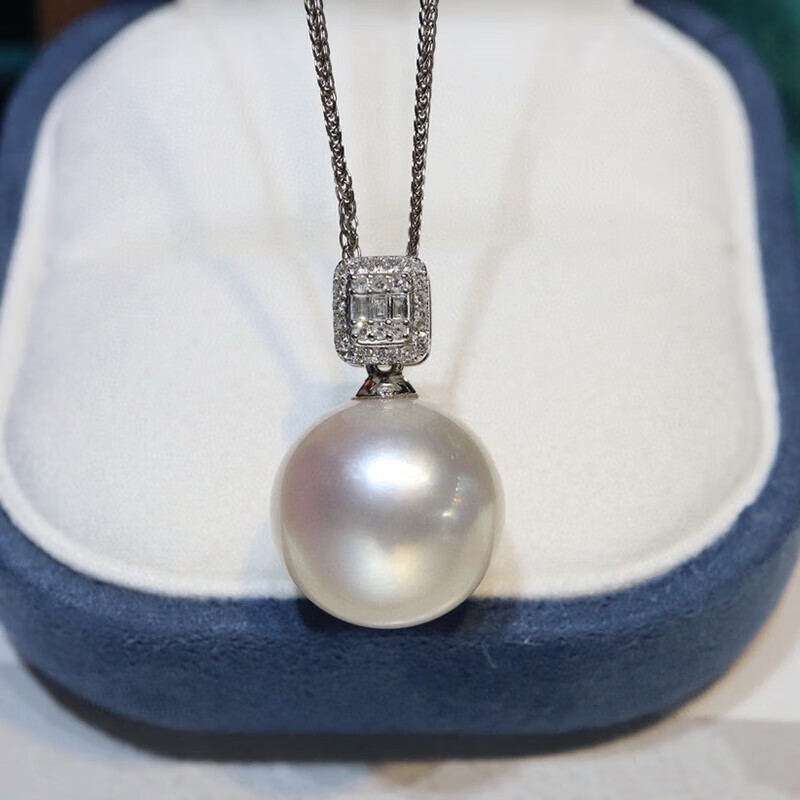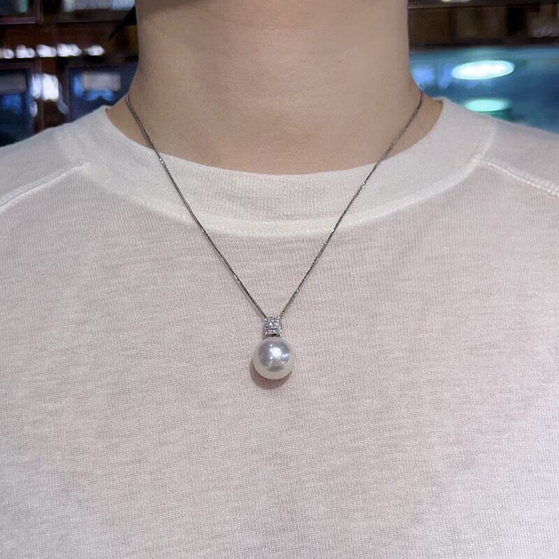 Zheng Xingyao white pearl pendant seawater necklace gold diamond temperament clavicle chain for birthday gift 14.4mm 4.4mm