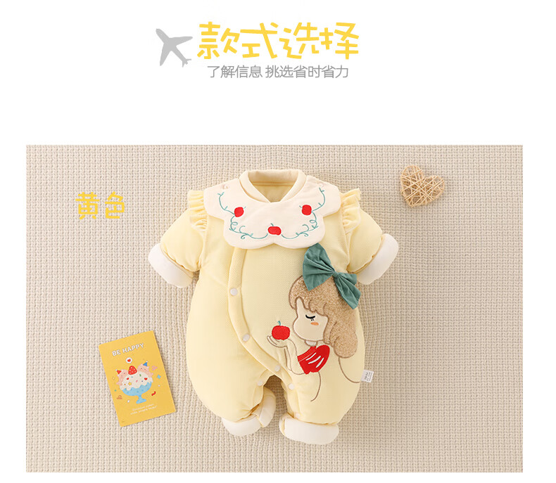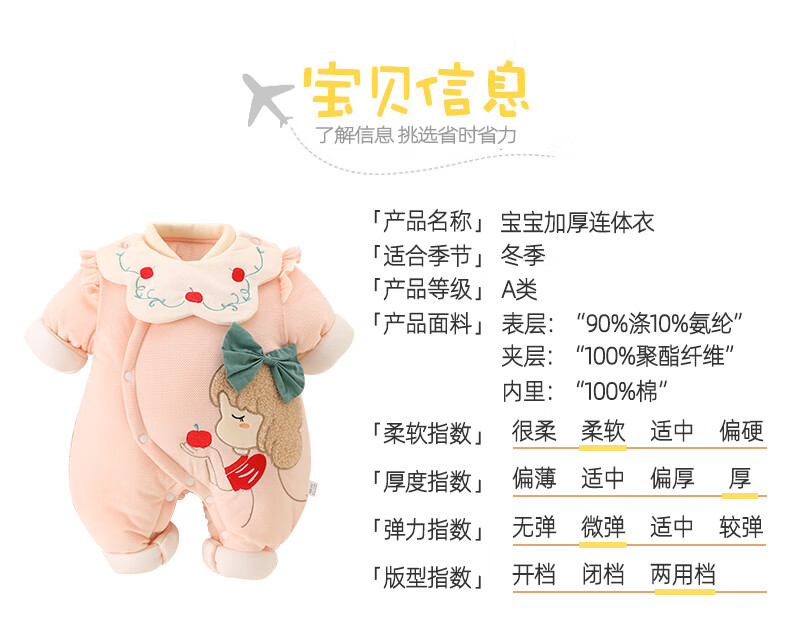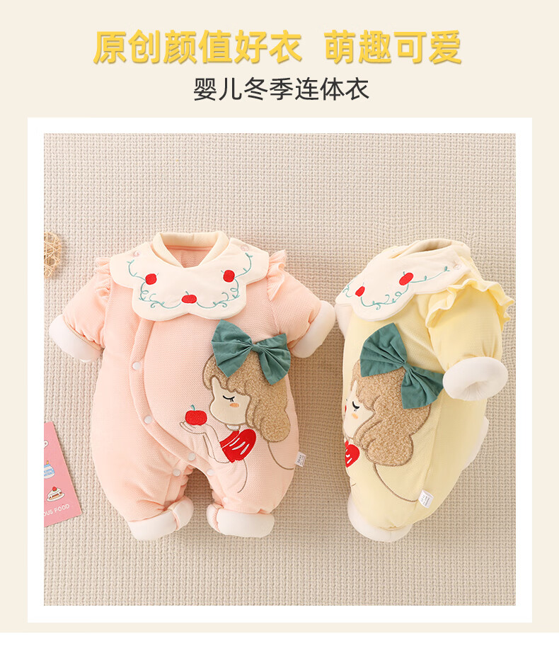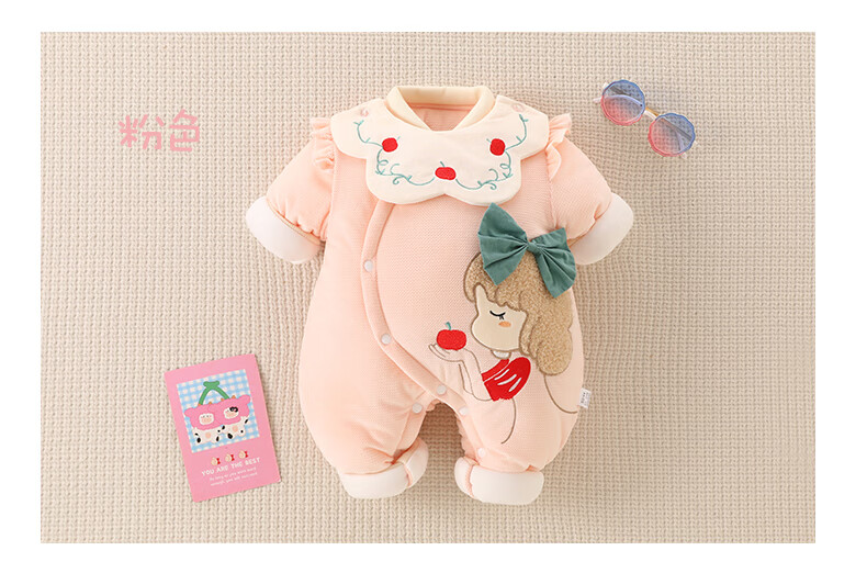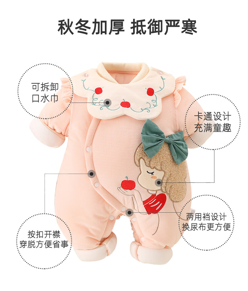 Semir Children's Newborn Baby Warm Jumpsuit Newborn One-month Baby Thickened Suit Autumn and Winter Outings Cotton Jacket Clothes Pink 73cm