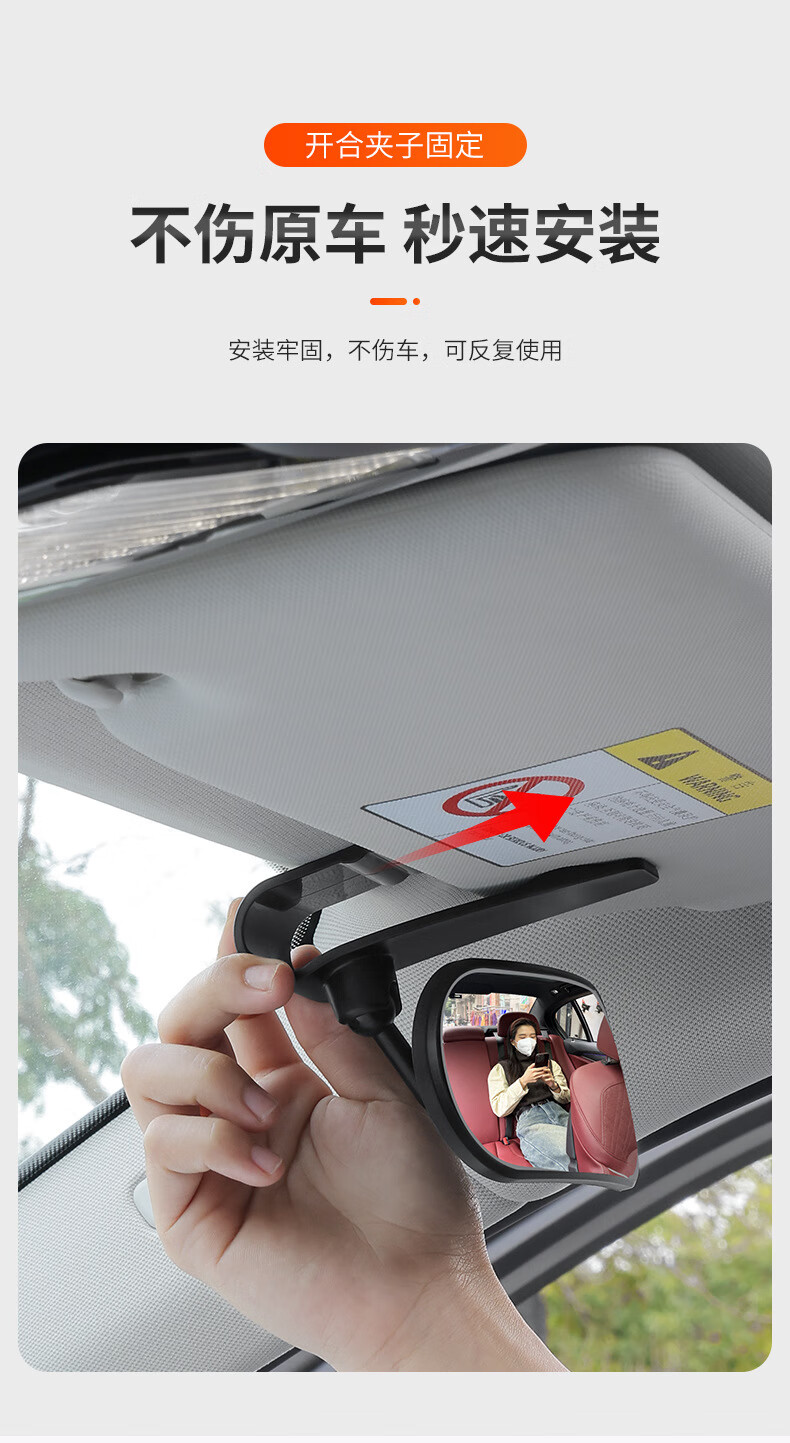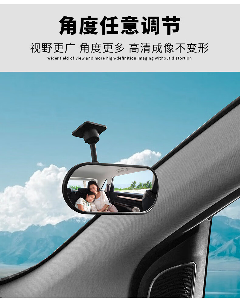 Extra large wide-angle rearview mirror installed in car interior, in-car baby observation reversing large field of view auxiliary mirror DM-153 adhesive type