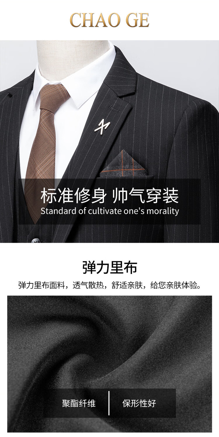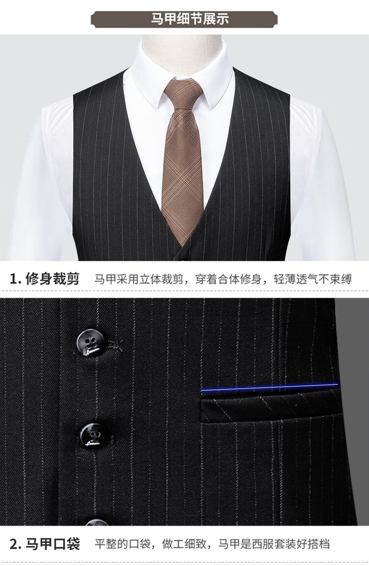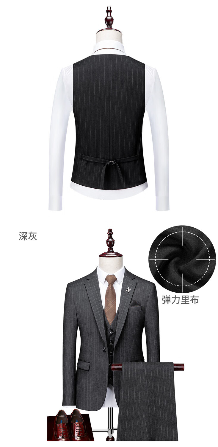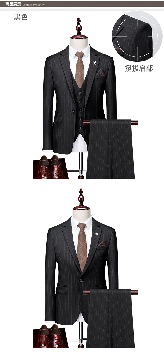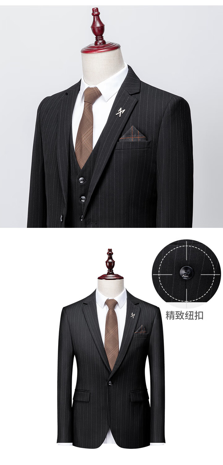 LESS IS MORE Lilang three-piece suit suit men's striped business formal wear Korean style trendy slim and handsome groom wedding dress official flagship black counter genuine M