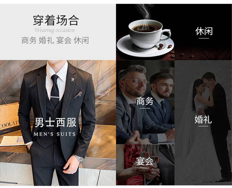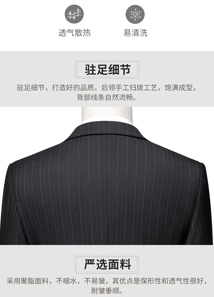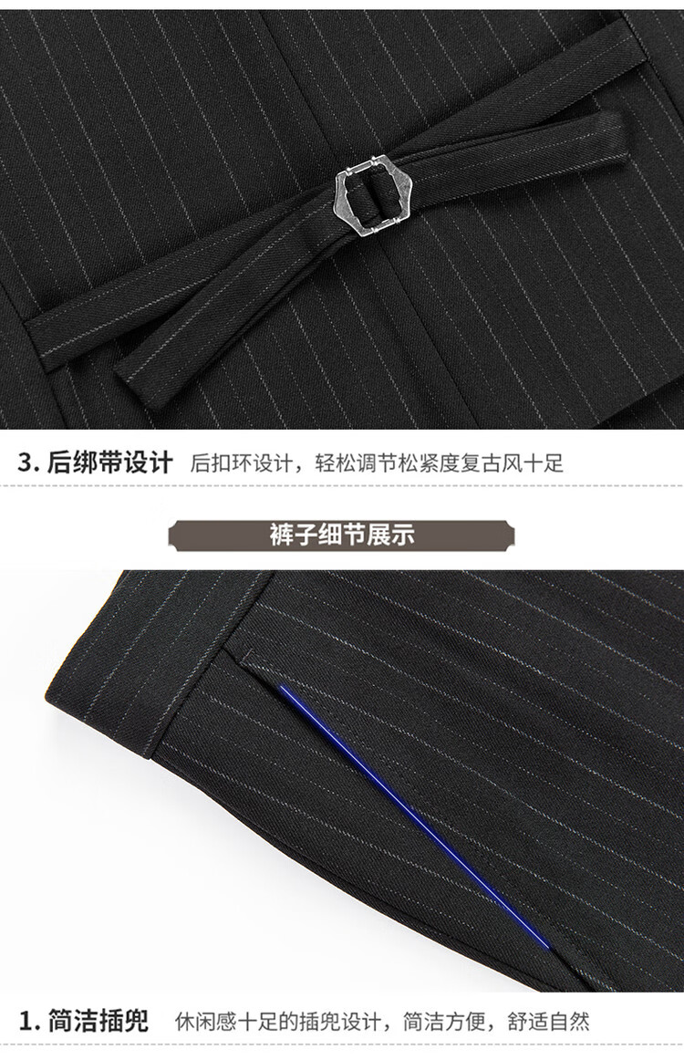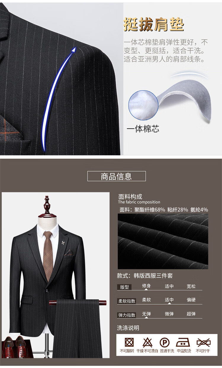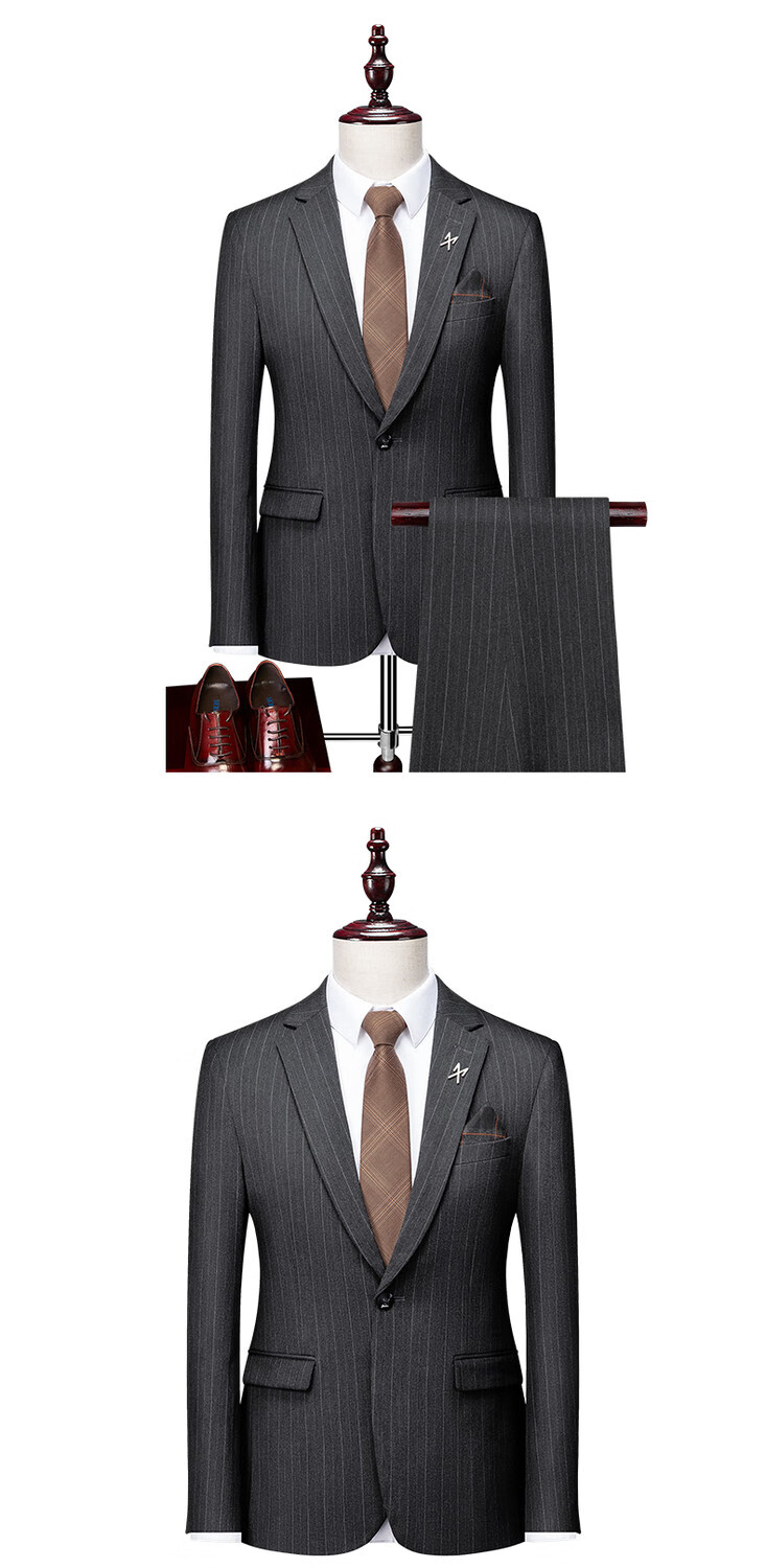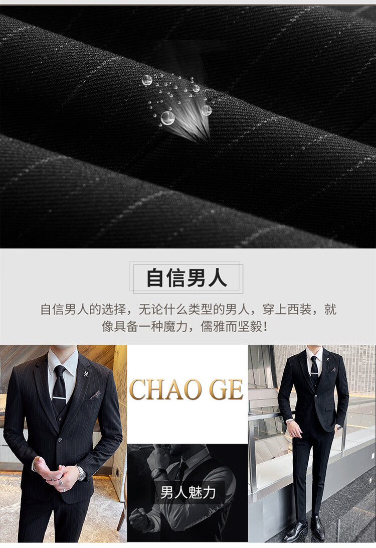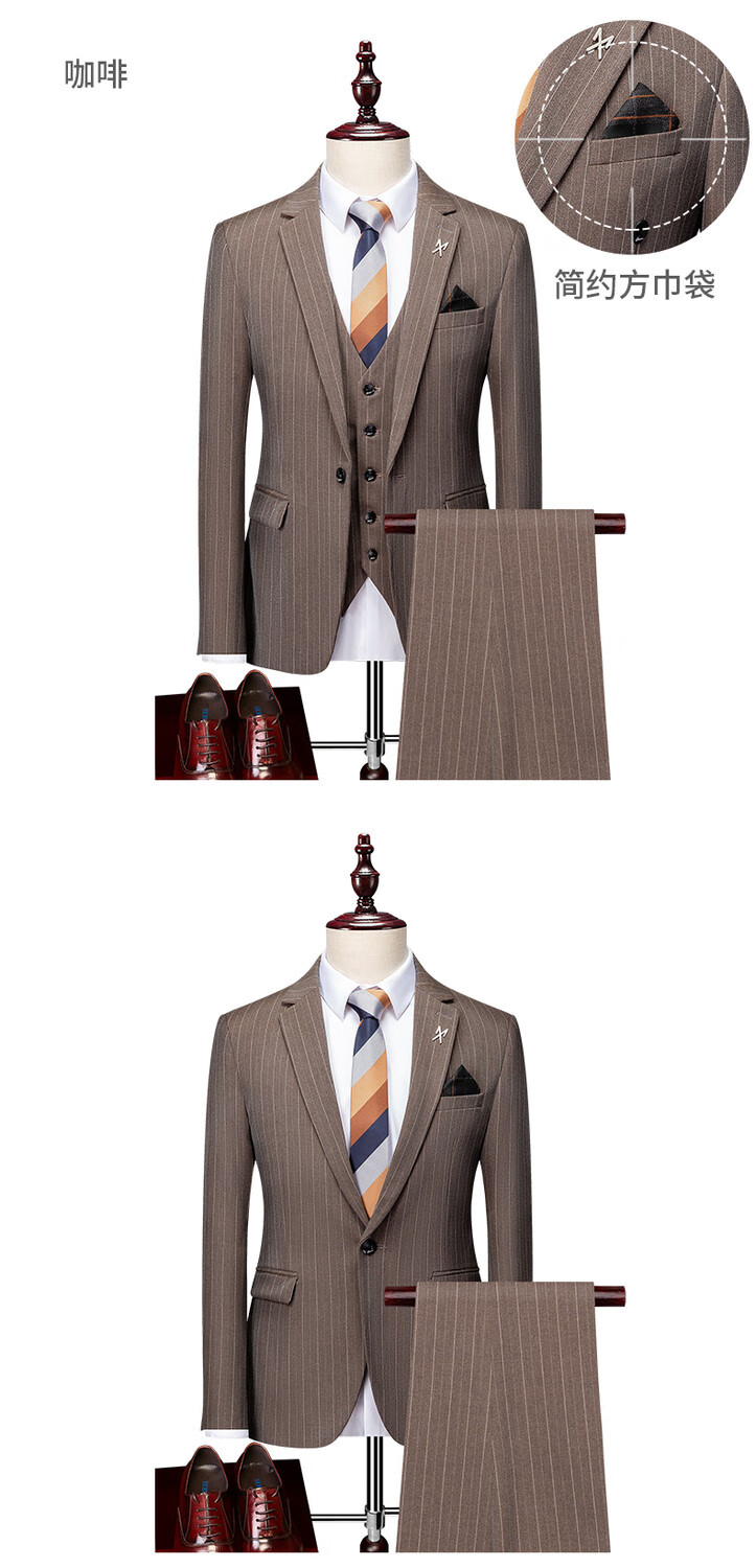 LESS IS MORE Lilang three-piece suit suit men's striped business formal wear Korean style trendy slim and handsome groom wedding dress official flagship black counter genuine M