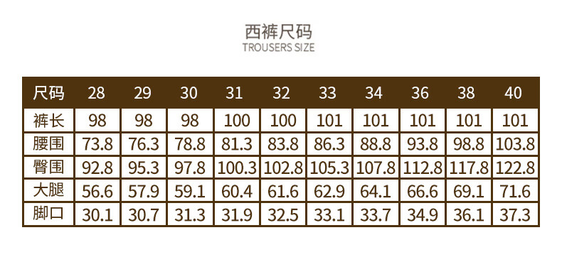 USA(inch) 28-30 30-32 32-34 34-38 38-42