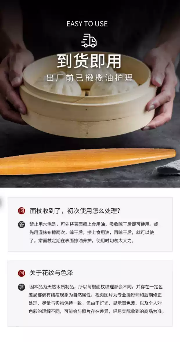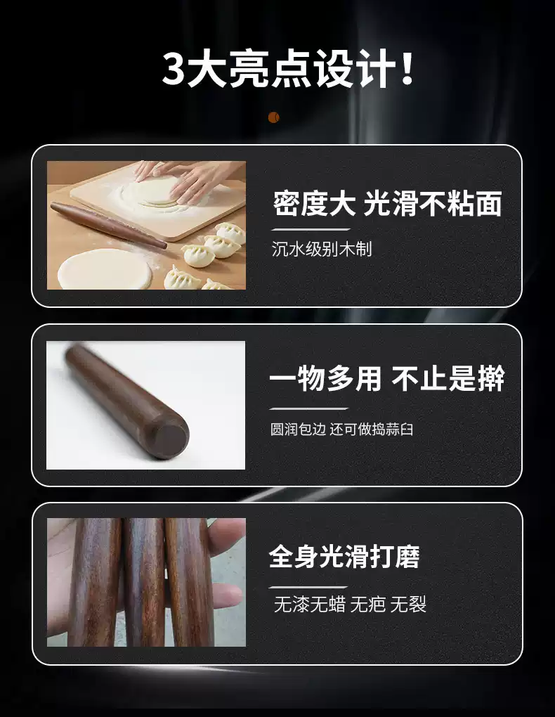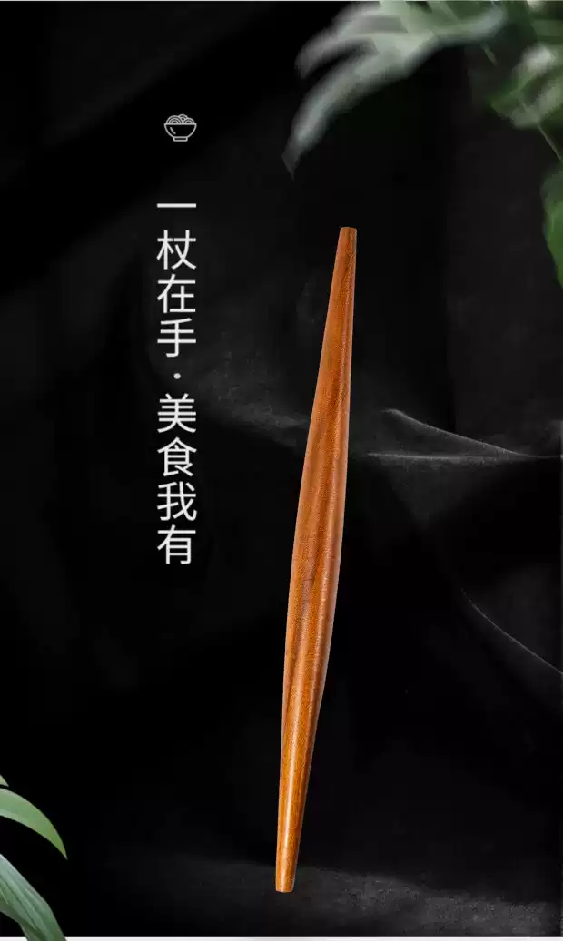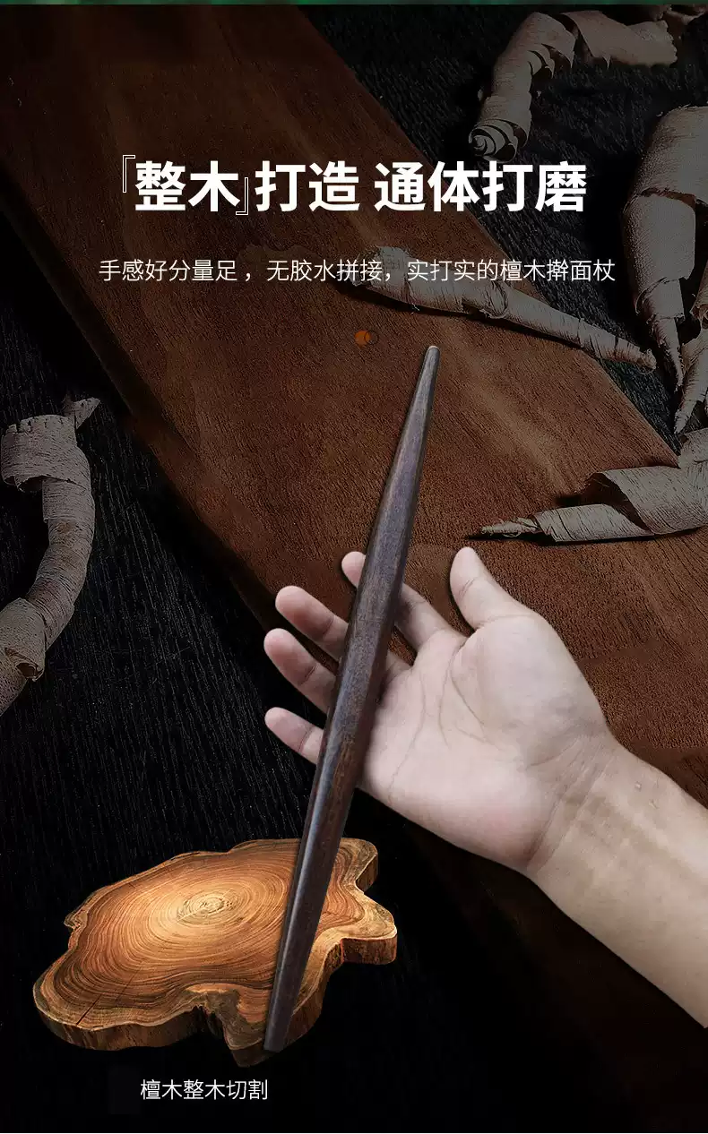 Fantasy purple sandalwood household fish belly-shaped two-end tip for rolling out dumpling skins with a rolling pin, sandalwood rolling pin, pineapple wood, 47*2.5cm long tip