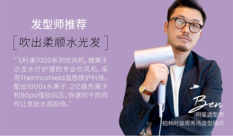 Philips (PHILIPS) hair dryer hair dryer 7 series water light machine hair care smooth and fluffy fast dry air high speed household high-power hair dryer magnetic suction type 200 million negative ions Chinese Valentine's Day gift Jujue Zi water light machine BHD720
