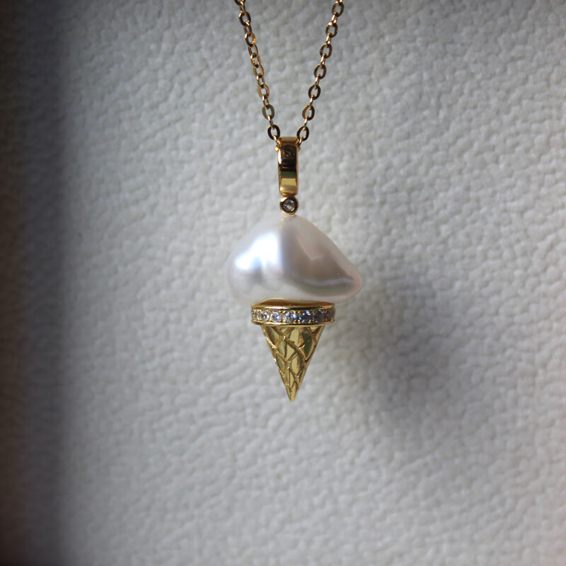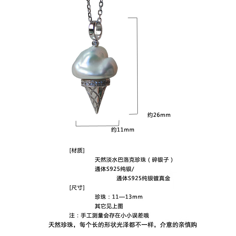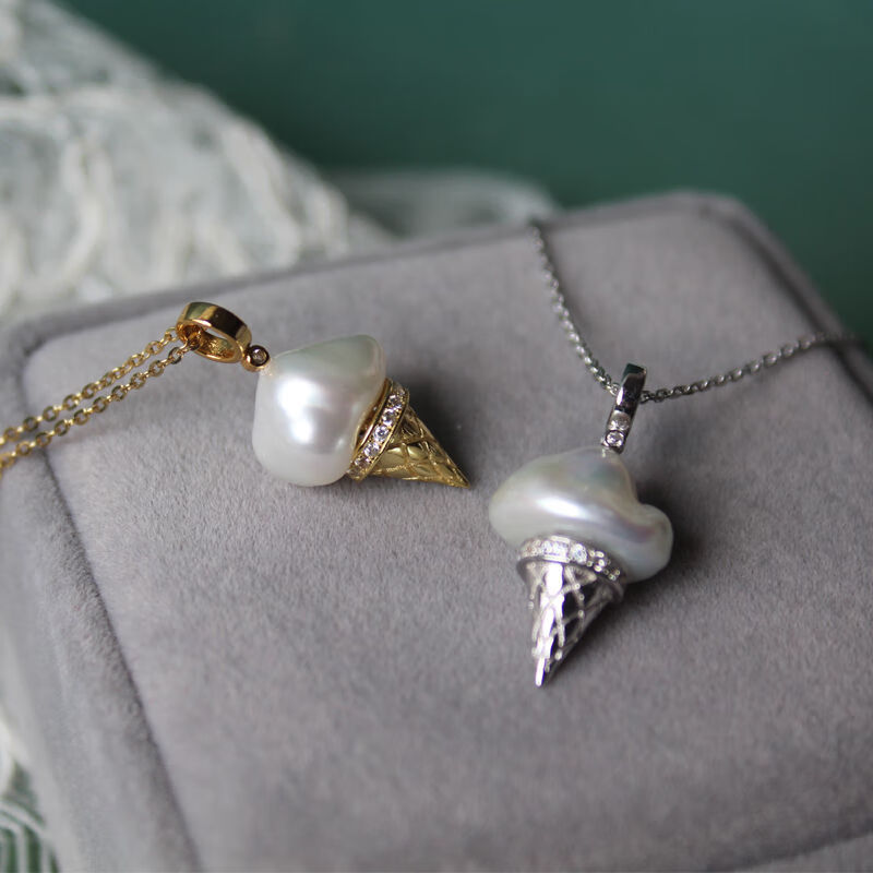 Floating Lotus Blossoms Childhood Freshwater Baroque Pearl Ice Cream Pendant Broken Silver Necklace S925 Sterling Silver Clavicle Chain Pendant Gold Style