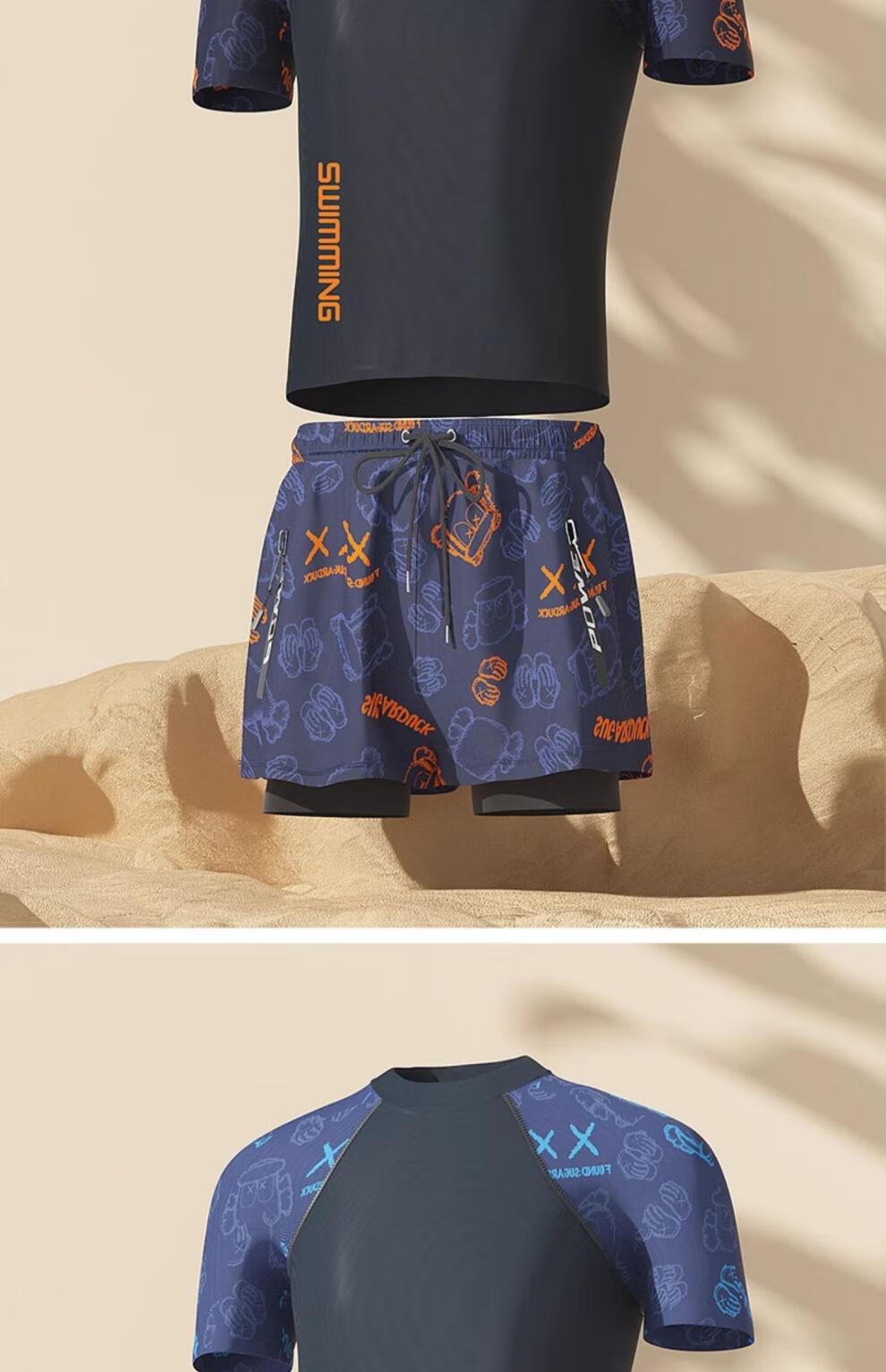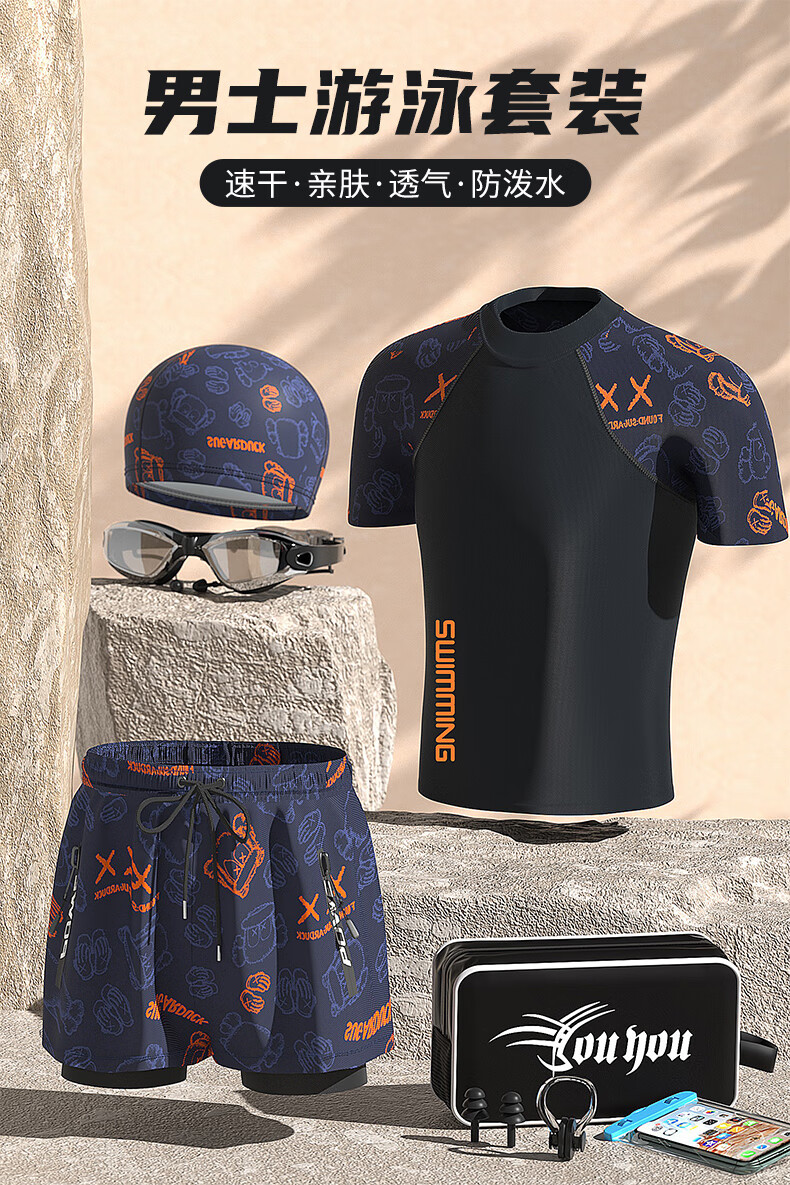 MDUG men's swimsuit complete equipment 2025 new style boys adult youth swimming trunks swimming cap swimming goggles blue swimsuit swimming trunks + swimming goggles + nose clip earplugs L (recommended weight 95-115Jin Jin equals 0.5 kg)