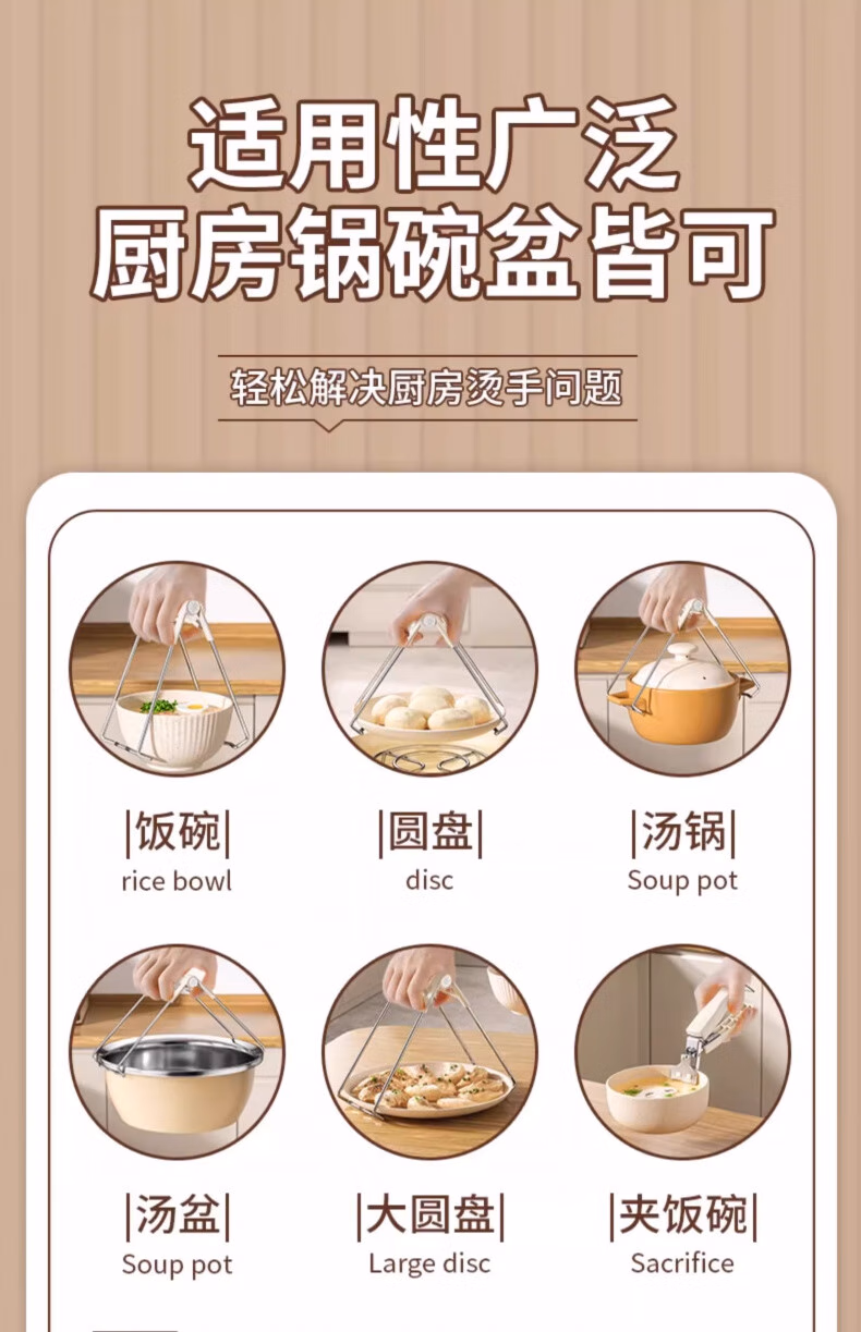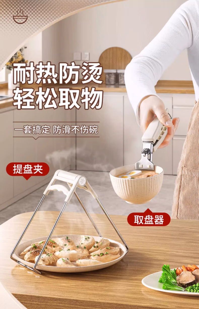 Skingcond anti-scalding bowl clamp, anti-slip pliers, kitchen clamp, plate clamp, steamed vegetable stainless steel insulated tray clamp, bowl clamp, upgraded two-piece set of tray clamp + bowl clamp, milk white