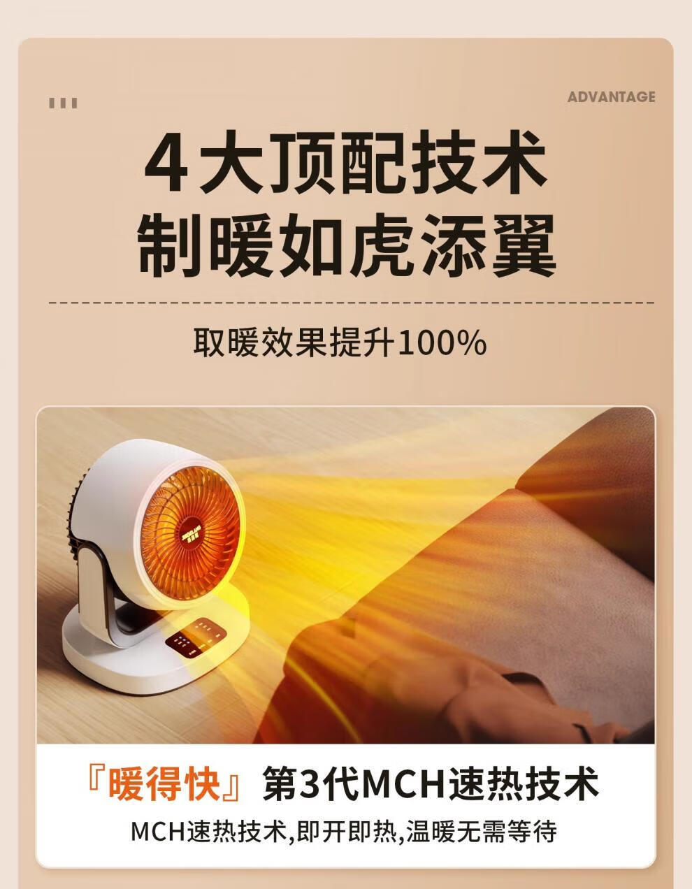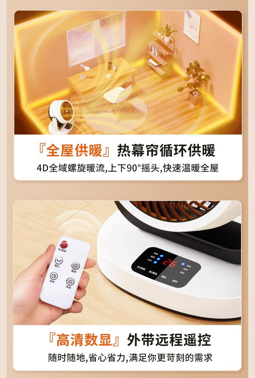 Pupan imported from Germany German brand heater heater electric small sun energy-saving power-saving heating small full upgraded model 1800W 3-speed heating and cooling + shaking head remote control +