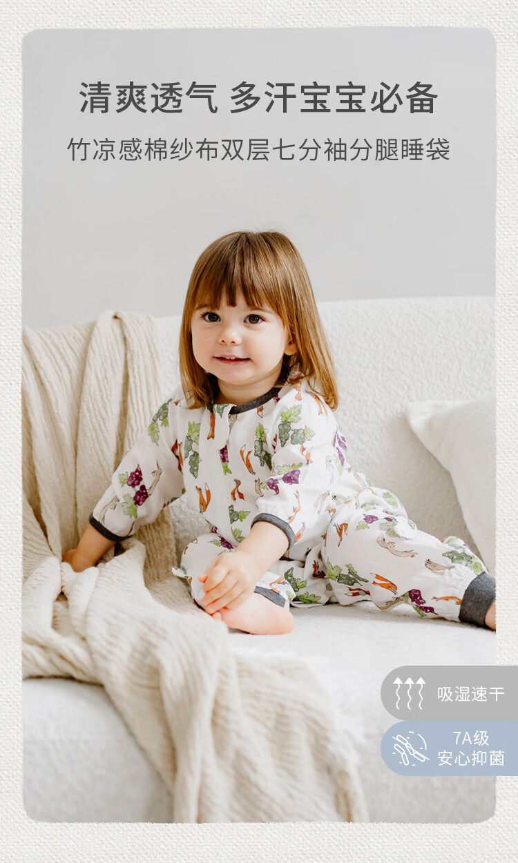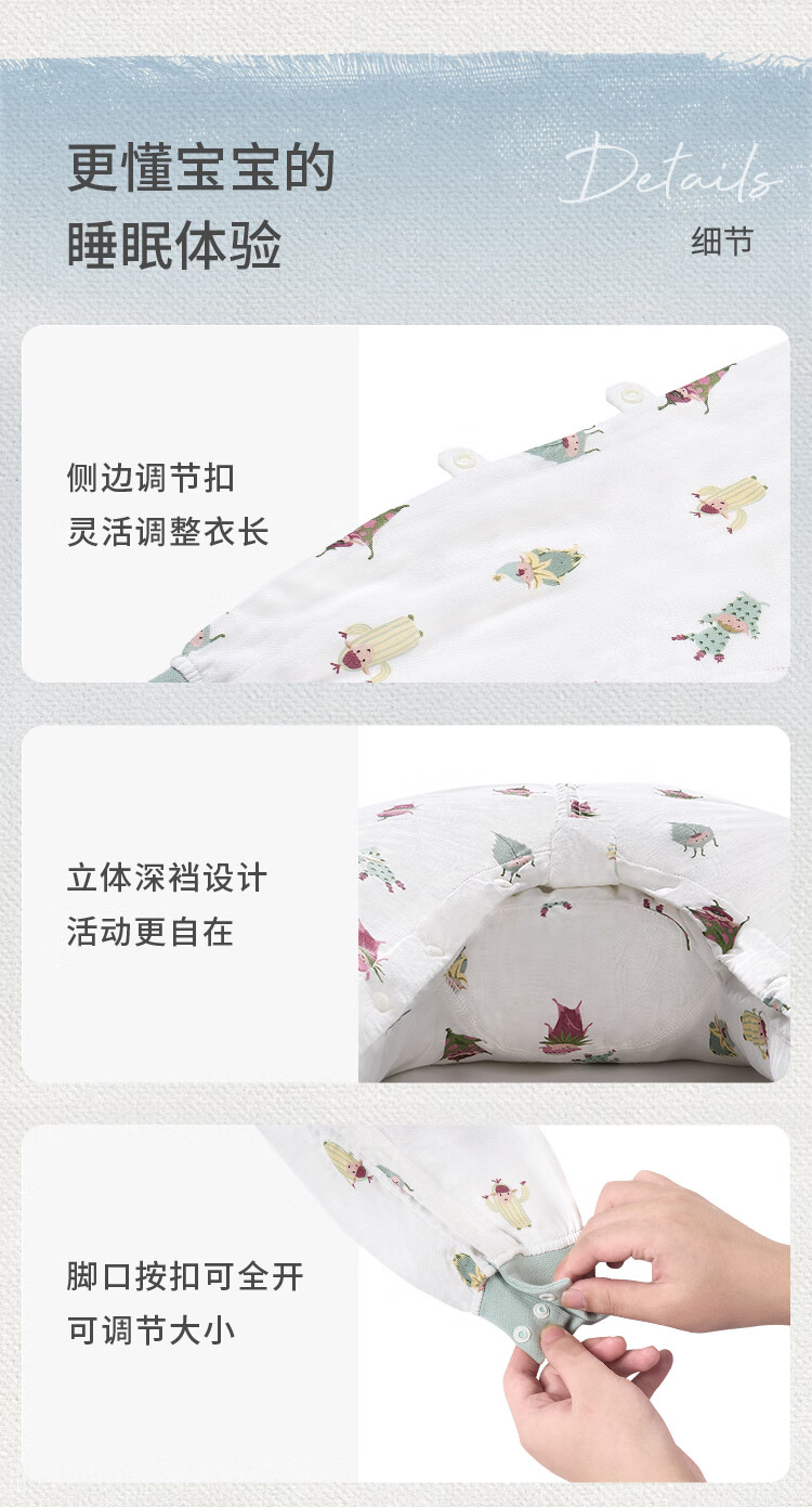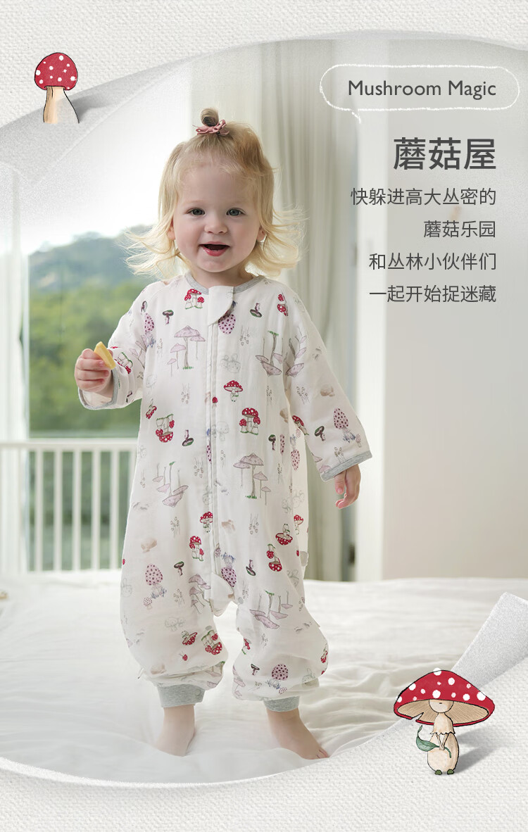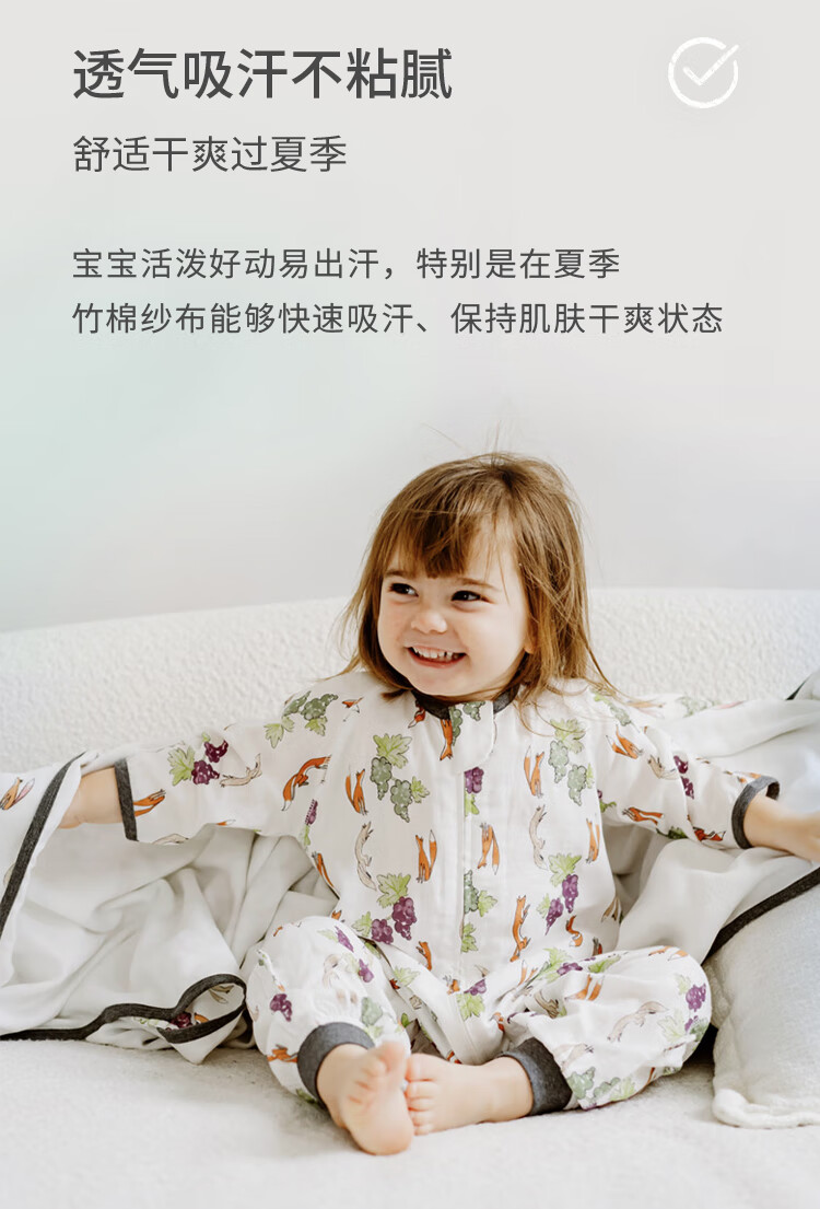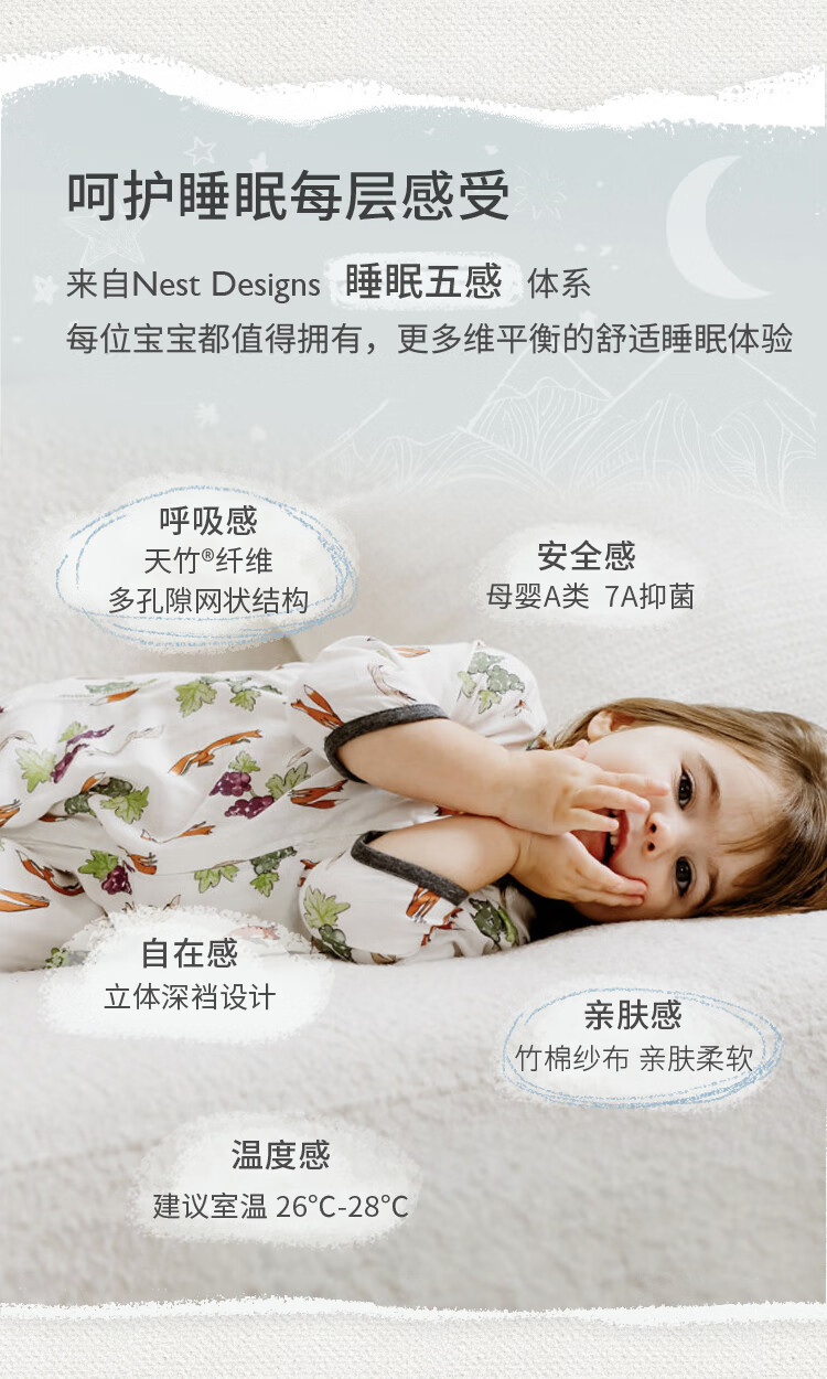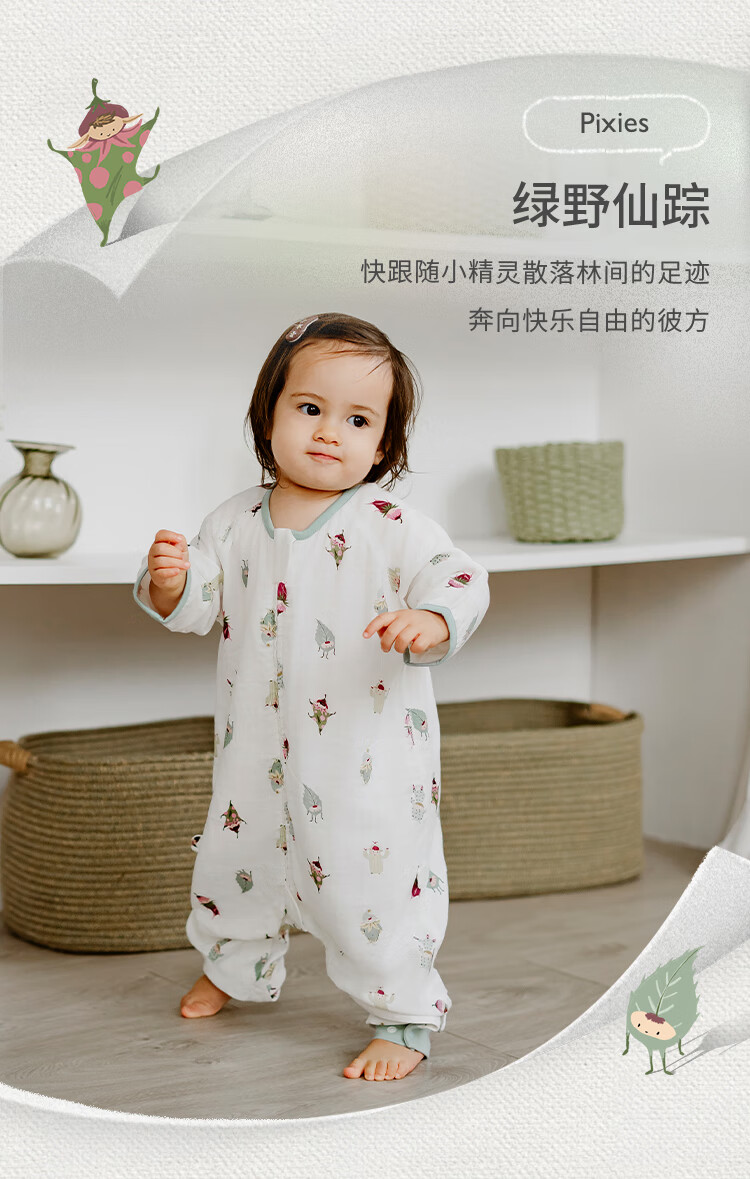 Nest designsnestdesigns infant sleeping bag spring and autumn baby anti-kick quilt split-leg sleeping bag children's four-season anti-kick forest path - six layers of gauze recommended 20-24 size 80 recommended height 70-85cm