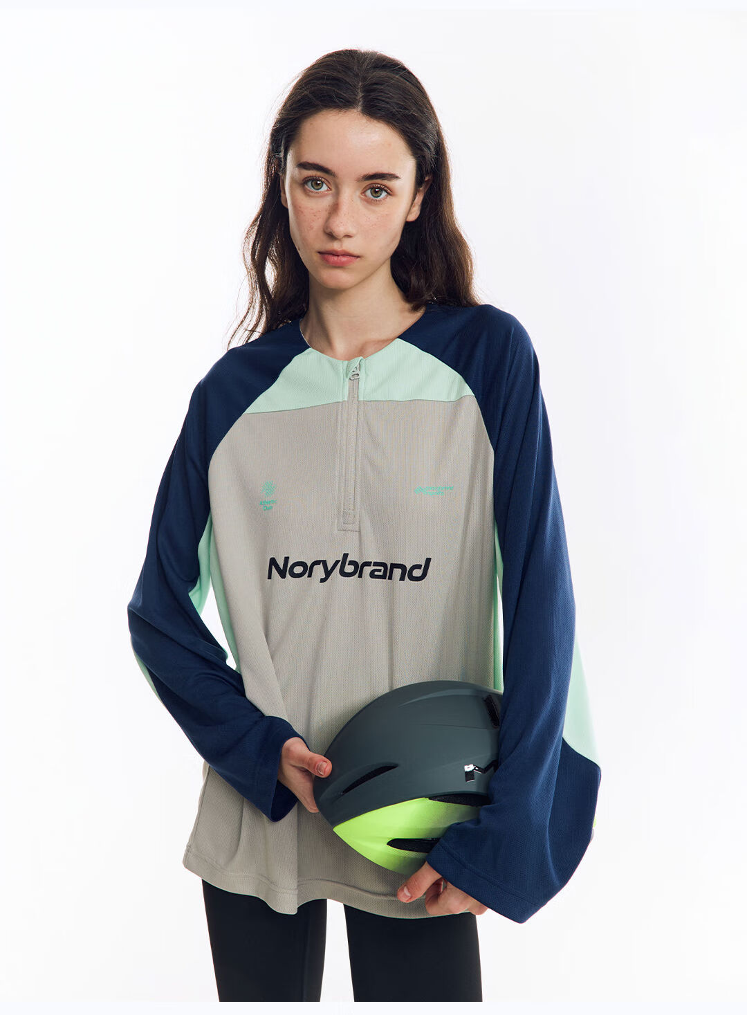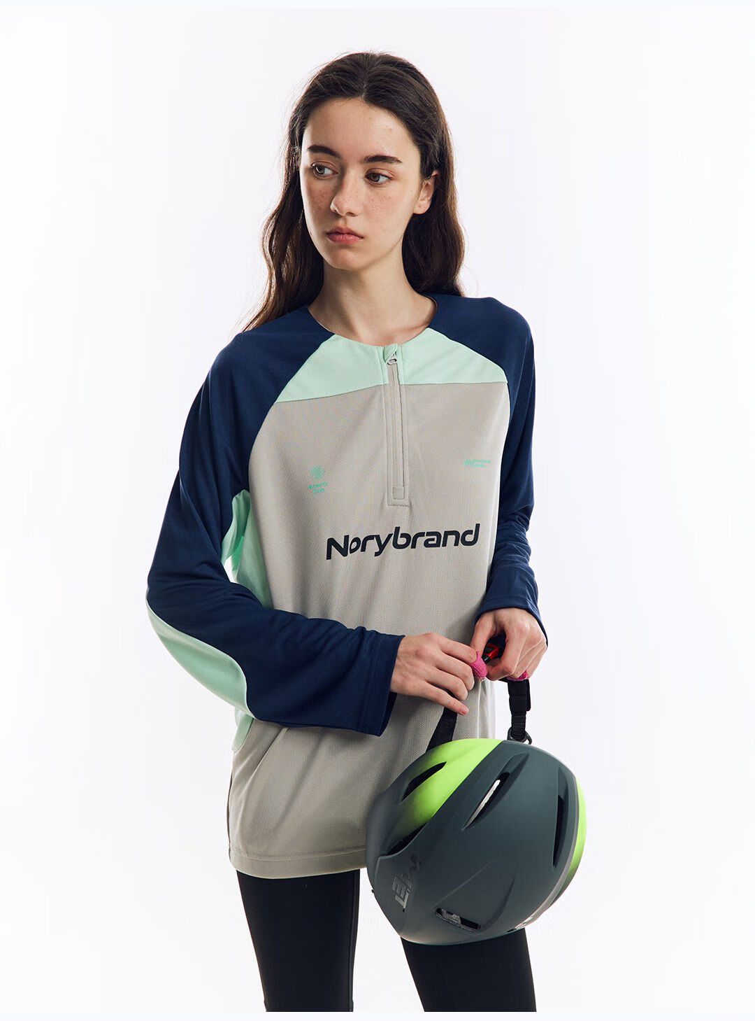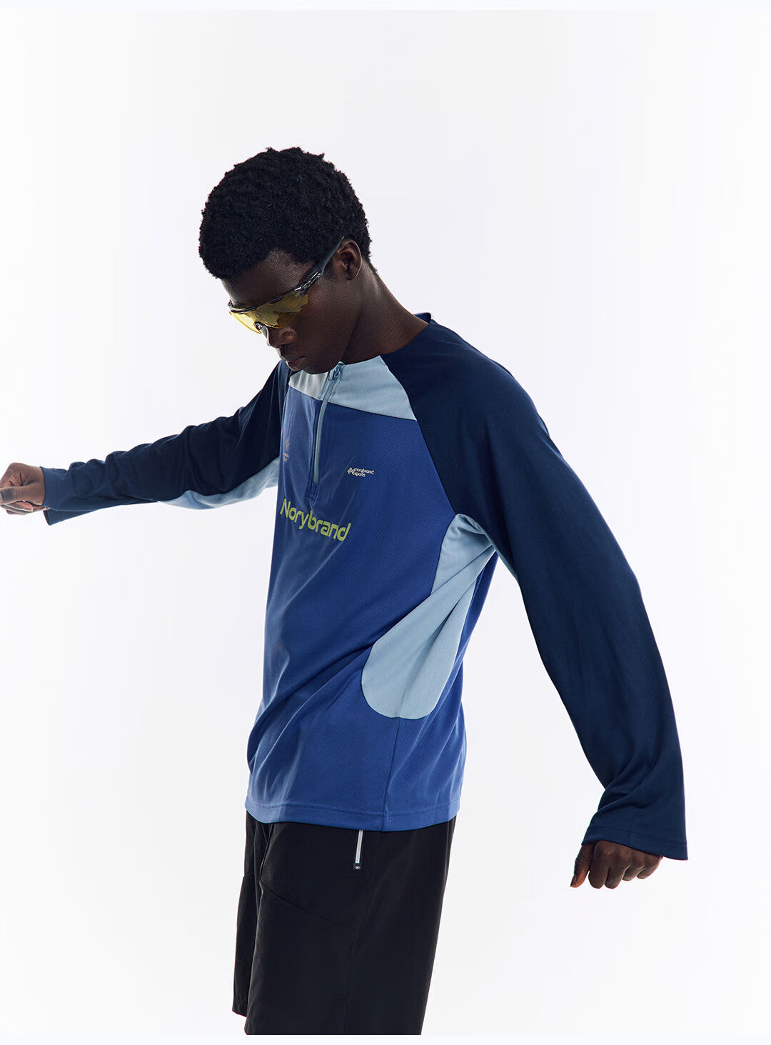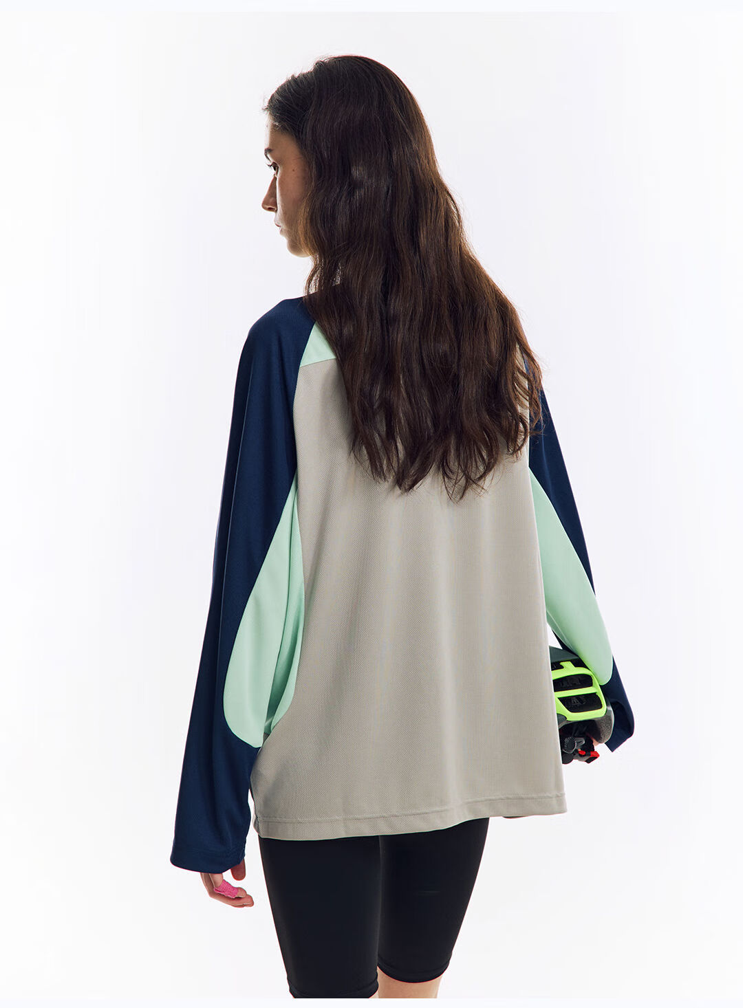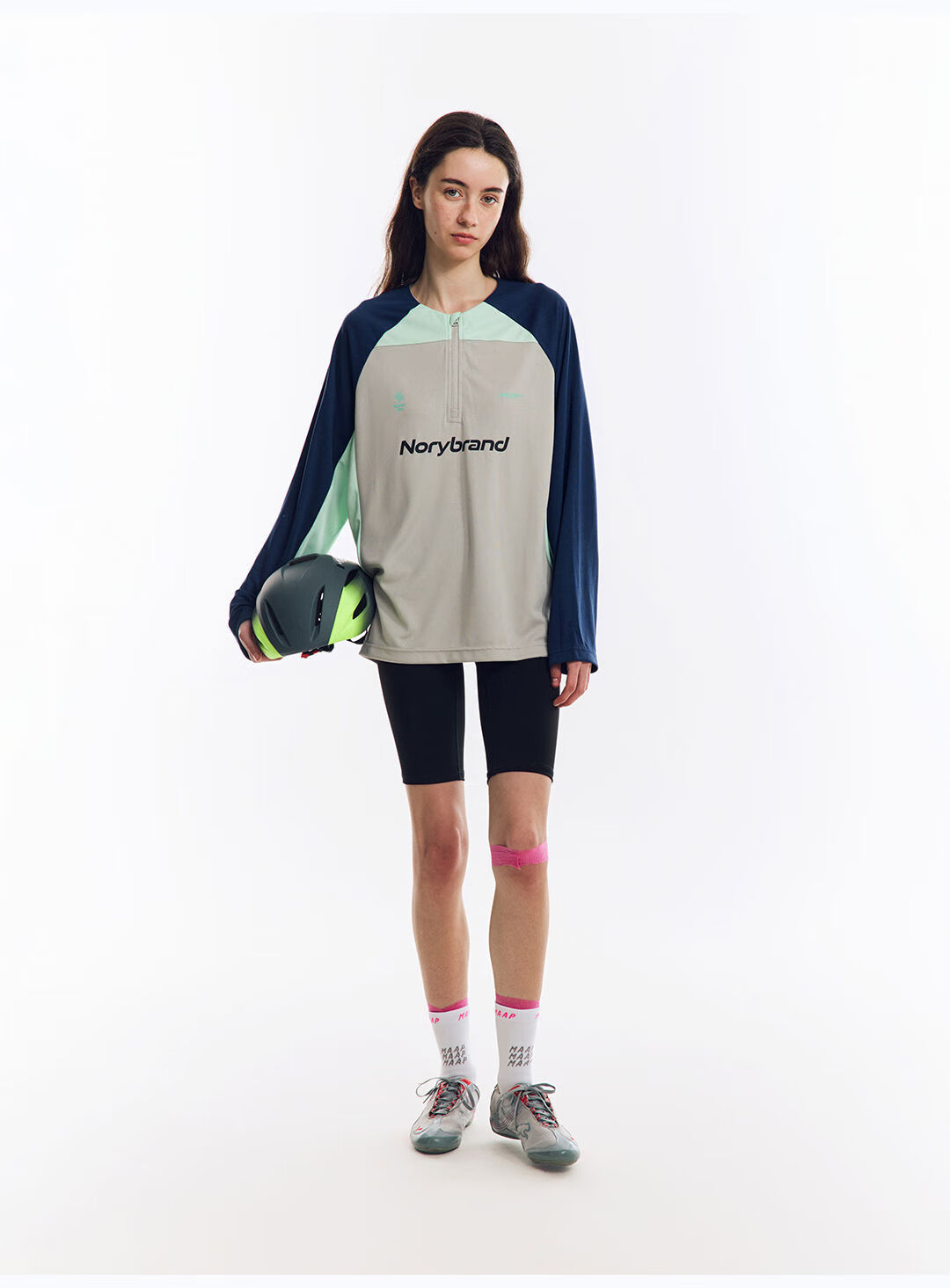 Outdoor sports cycling clothing thin sun protection half-zip contrasting stitching casual long-sleeved T-shirt gray green blue XS XS in stock