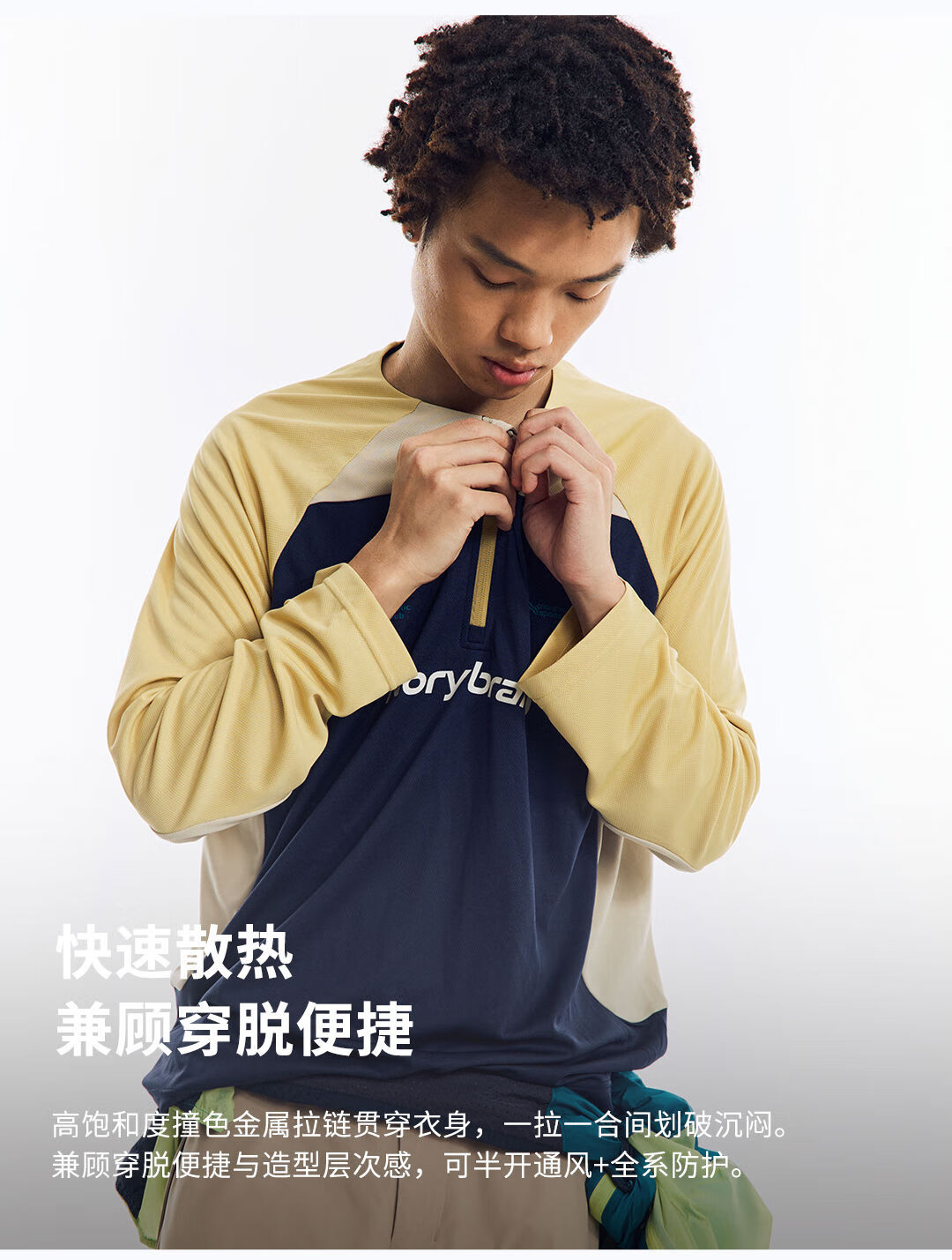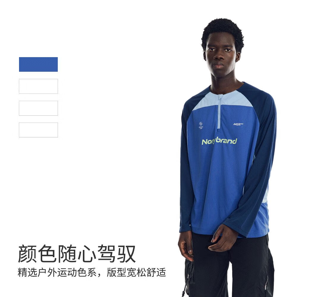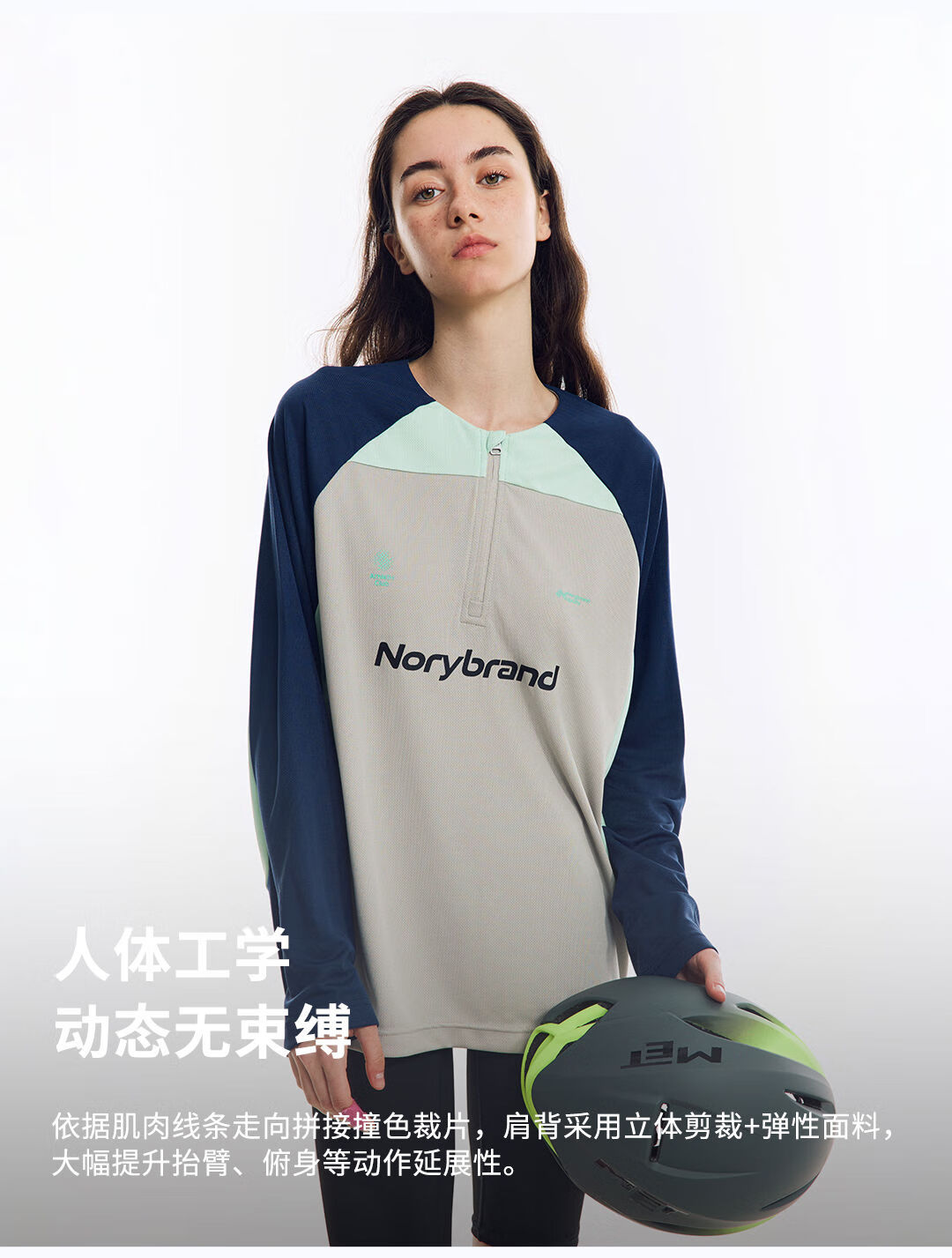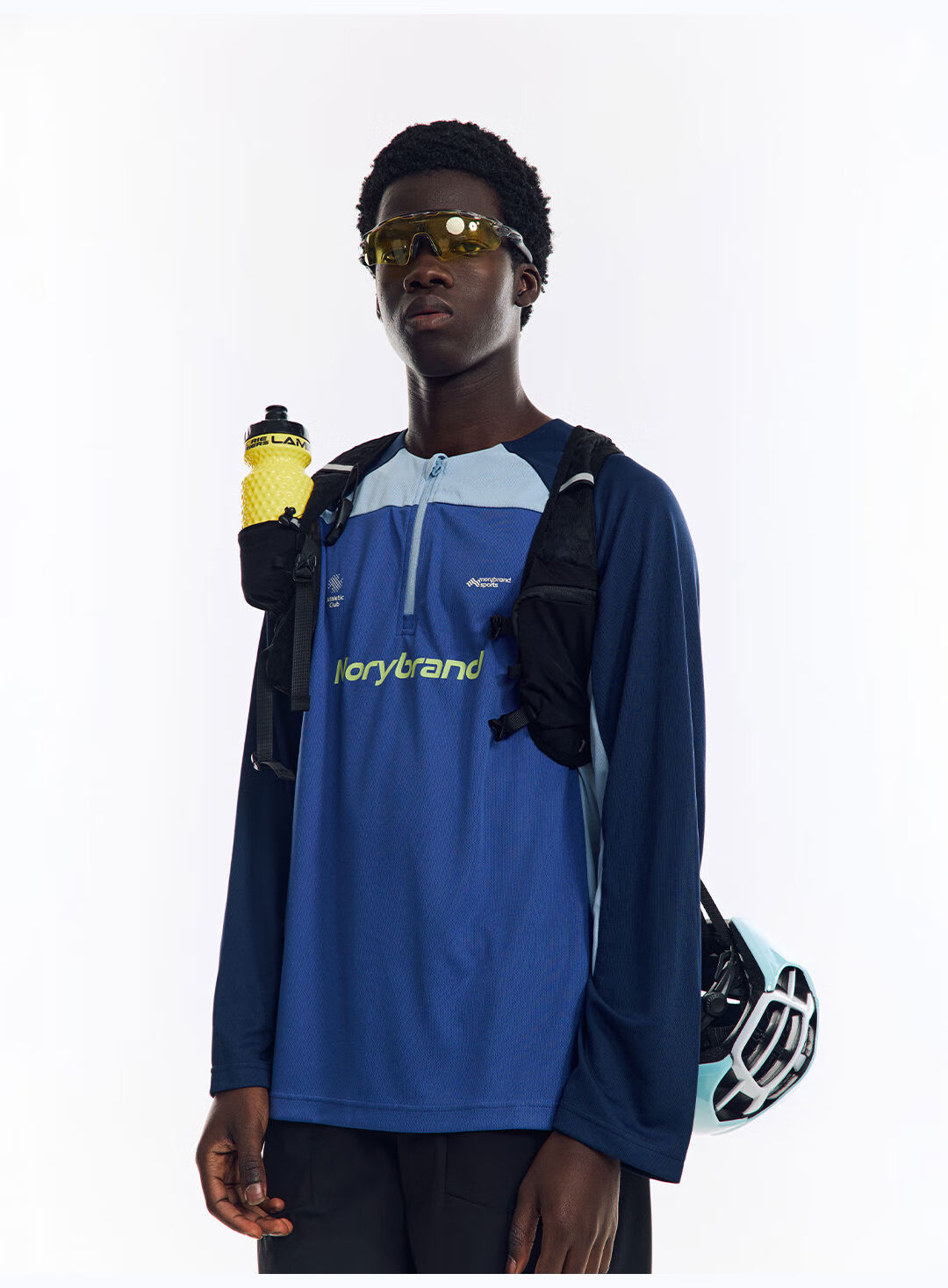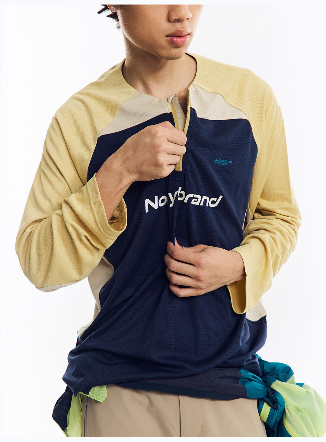 Outdoor sports cycling clothing thin sun protection half-zip contrasting stitching casual long-sleeved T-shirt gray green blue XS XS in stock