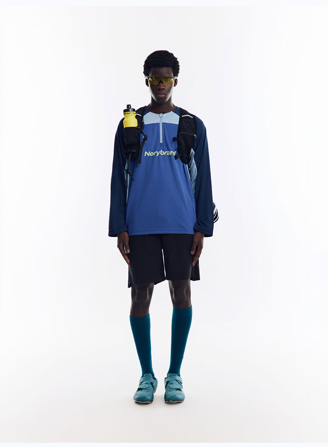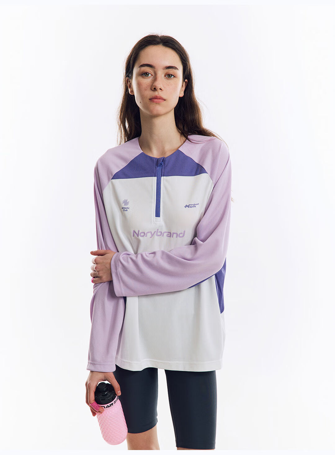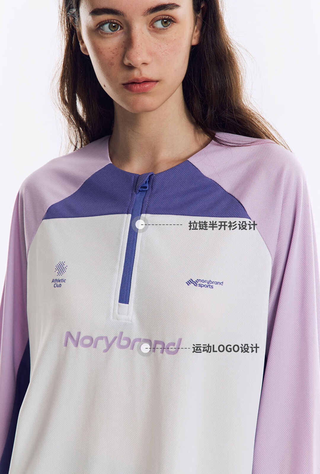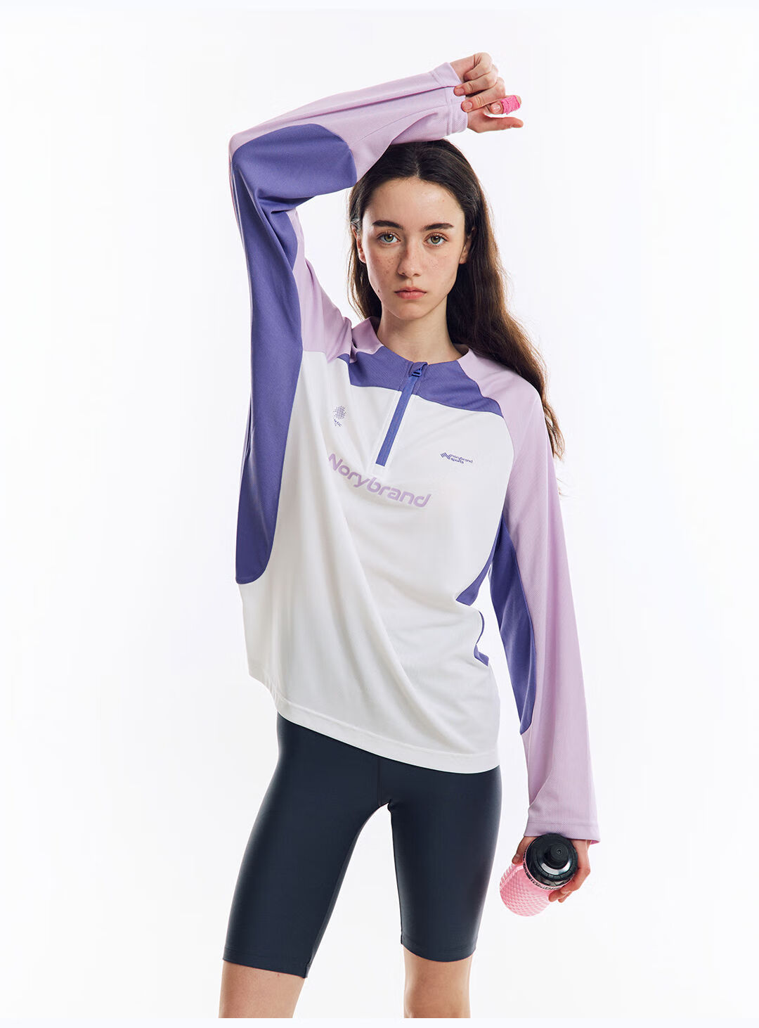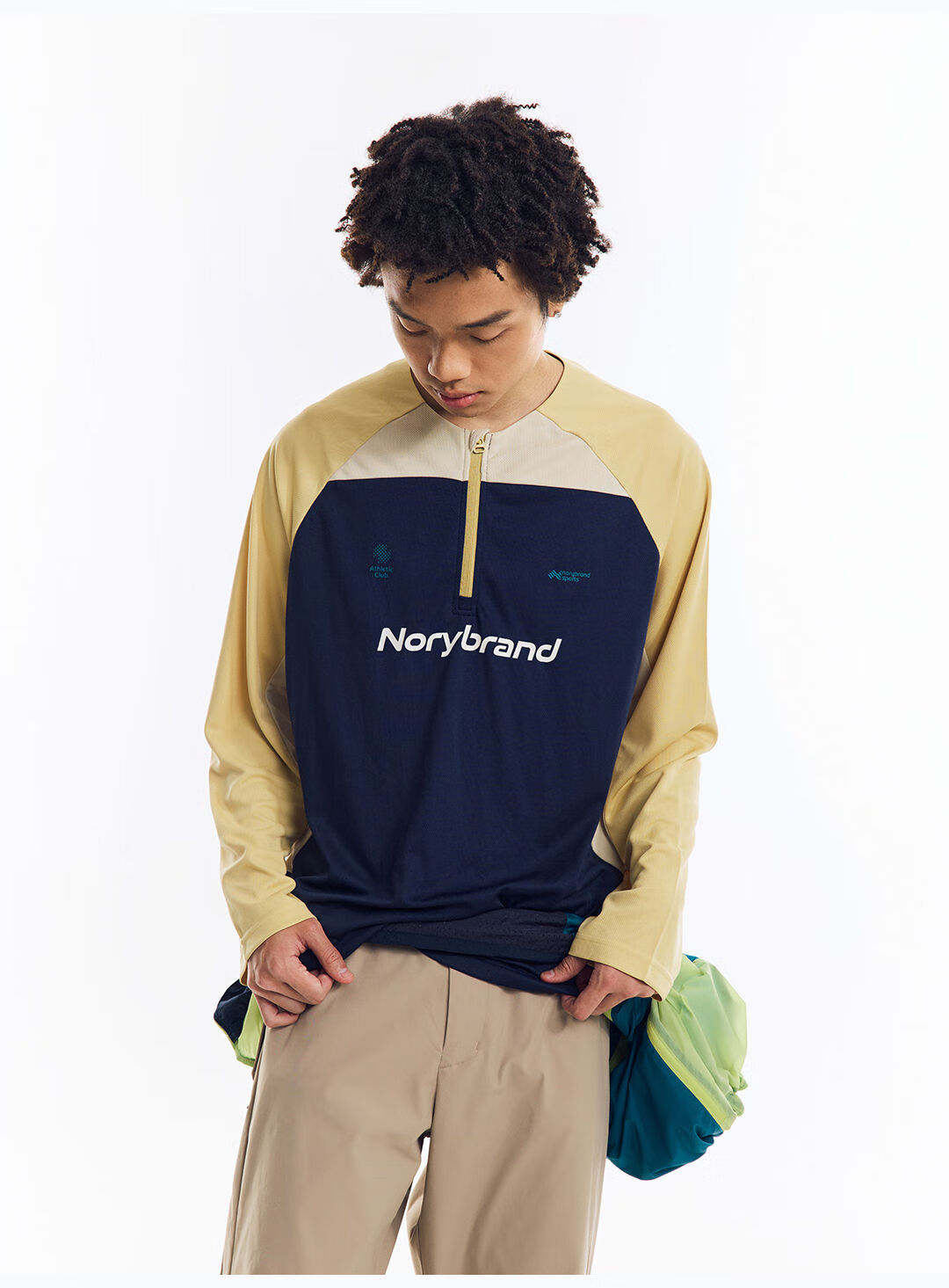 Outdoor sports cycling clothing thin sun protection half-zip contrasting stitching casual long-sleeved T-shirt gray green blue XS XS in stock