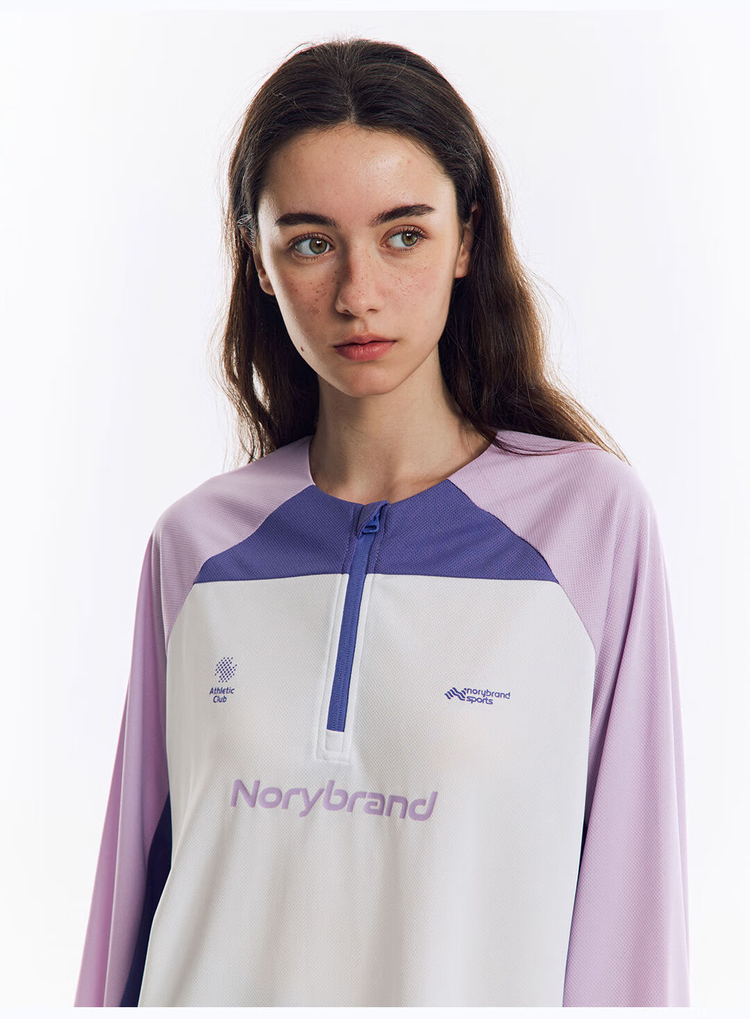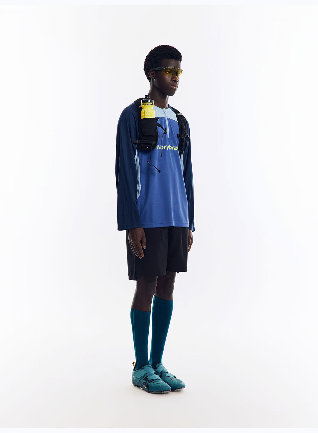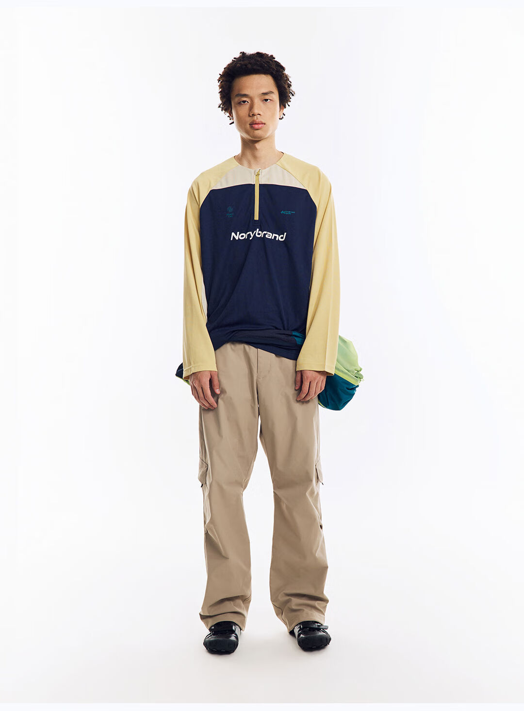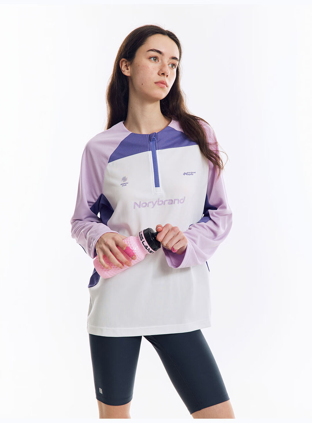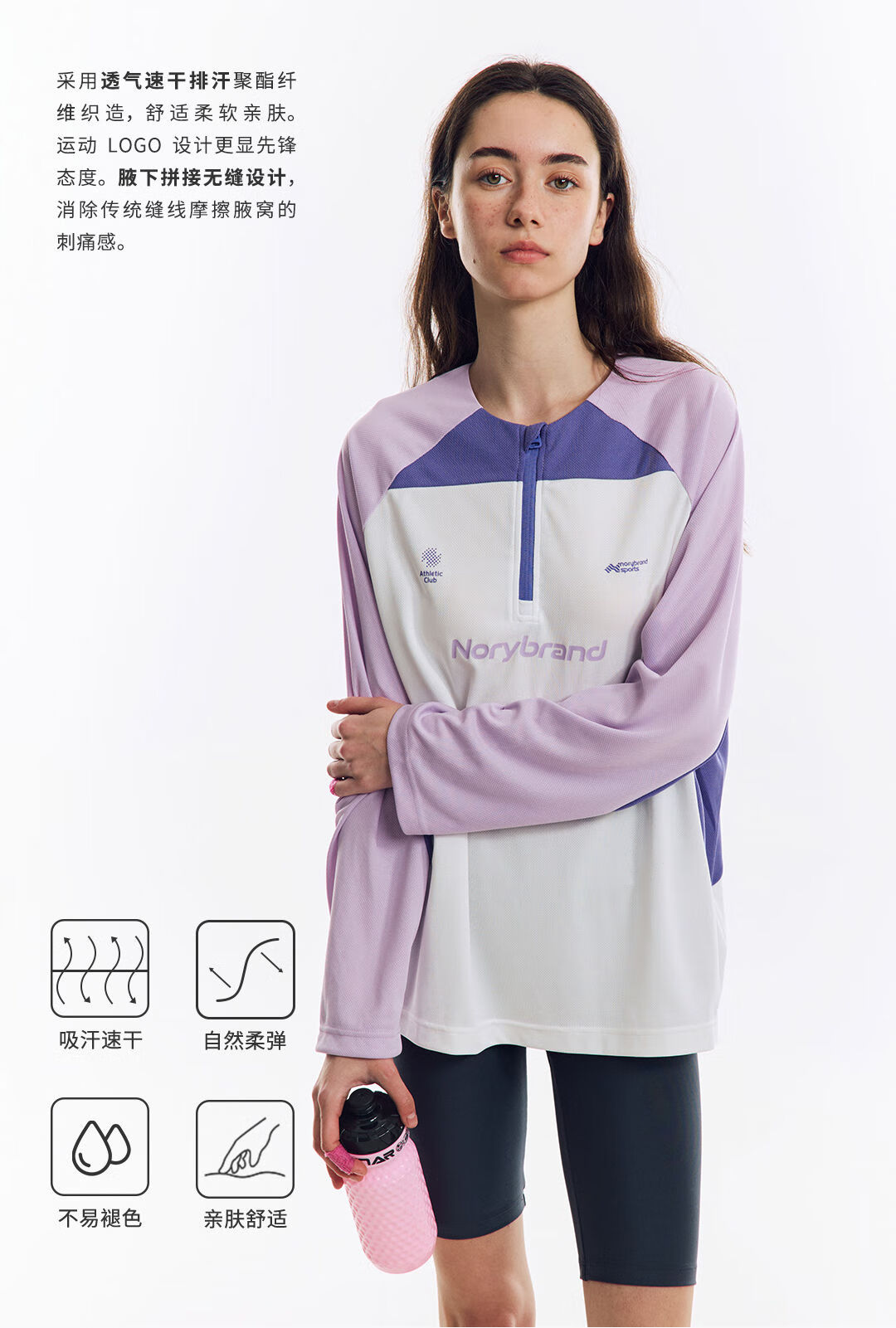 Outdoor sports cycling clothing thin sun protection half-zip contrasting stitching casual long-sleeved T-shirt gray green blue XS XS in stock