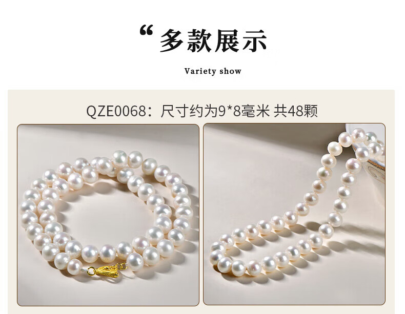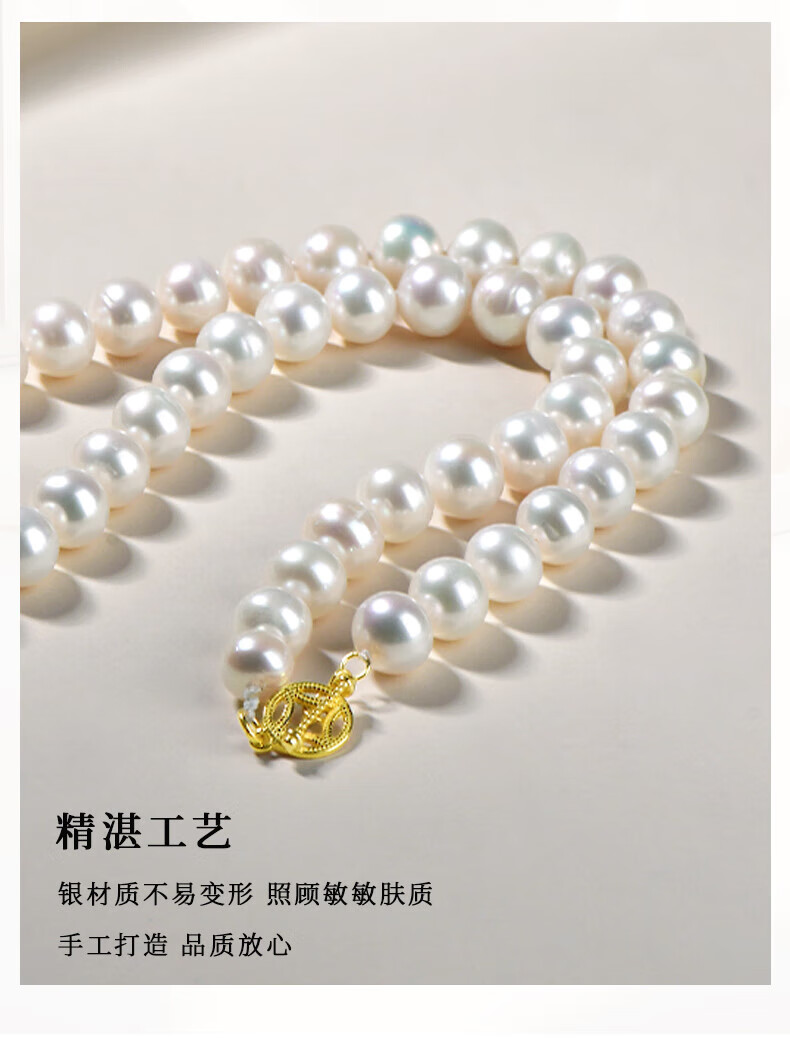 Bhiodha Chinese Valentine's Day gift pearl necklace for women, exquisite style, light luxury niche stackable sweater chain, about 9*8 mm QZE0068f