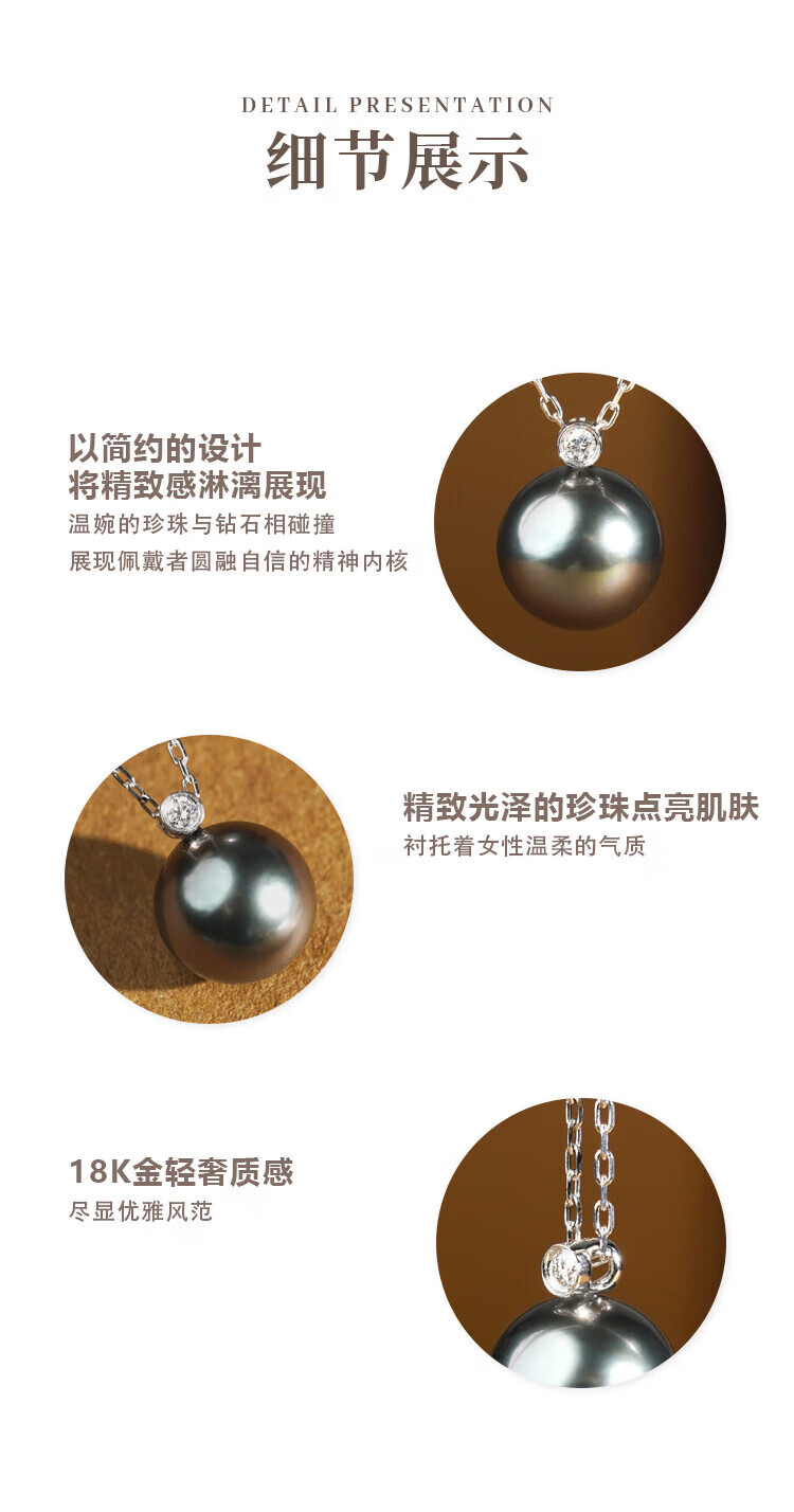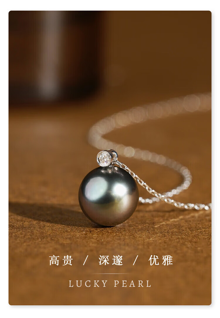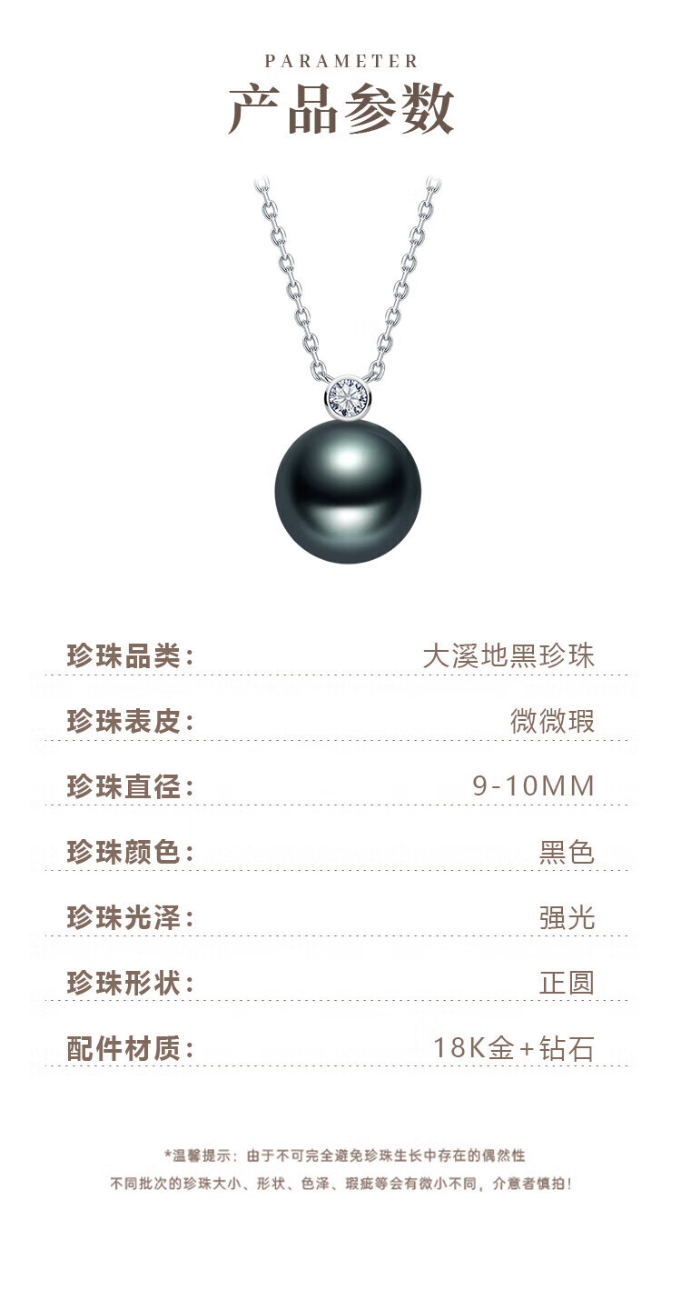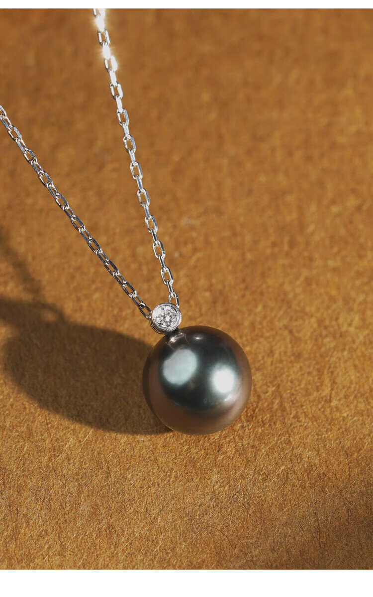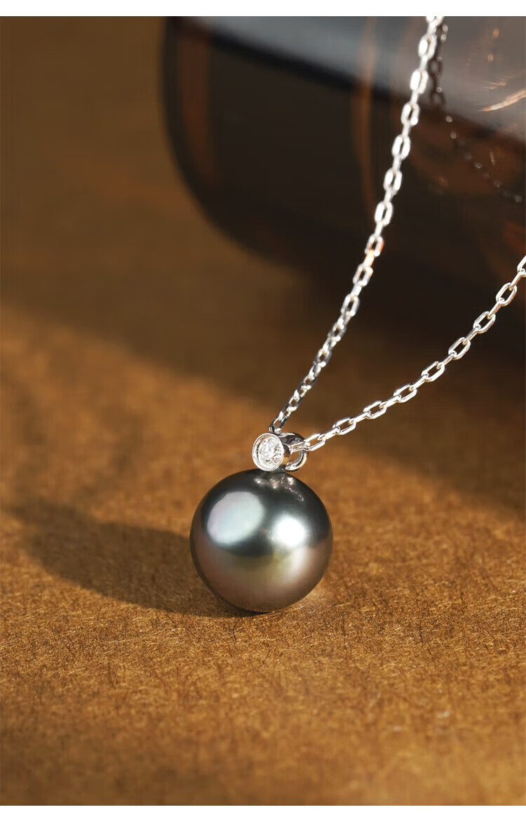 Queshe Black Pearl Pendant Gold Round 9-10mm Perfect Round Strong Light Light Luxury Gift for Women 9-1 Wu Nu 9-1