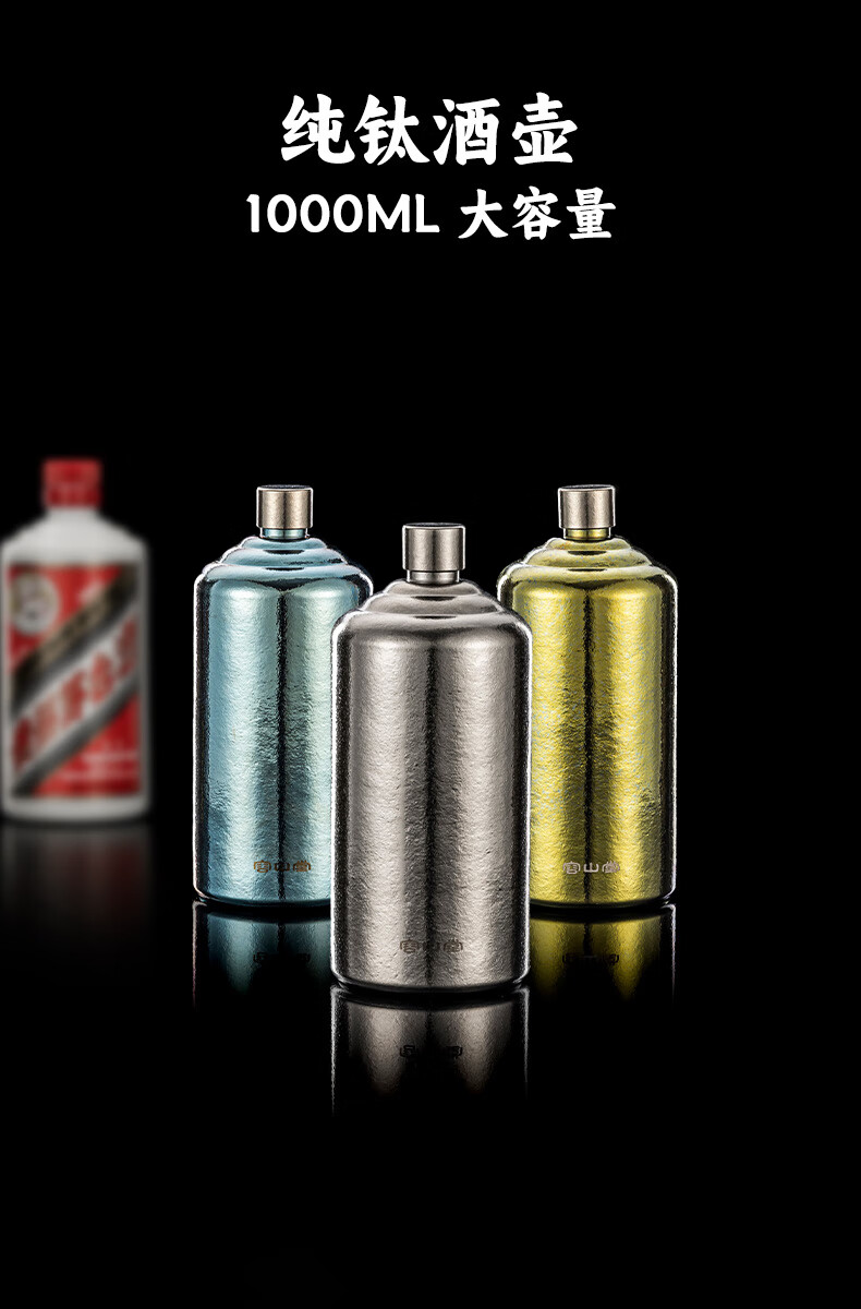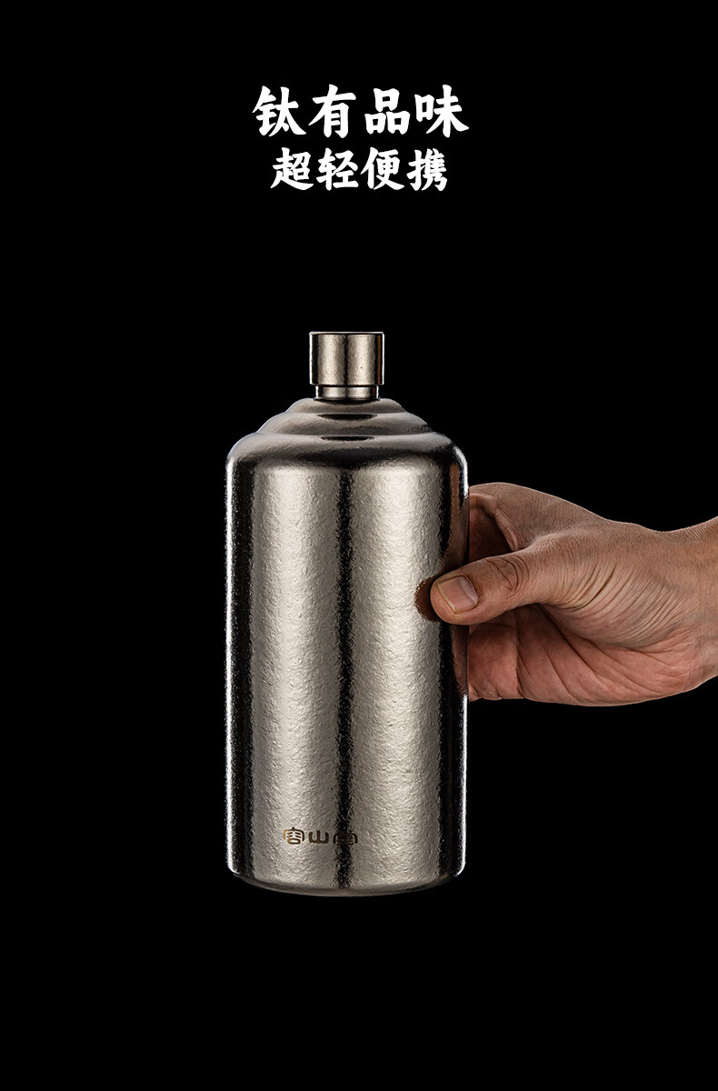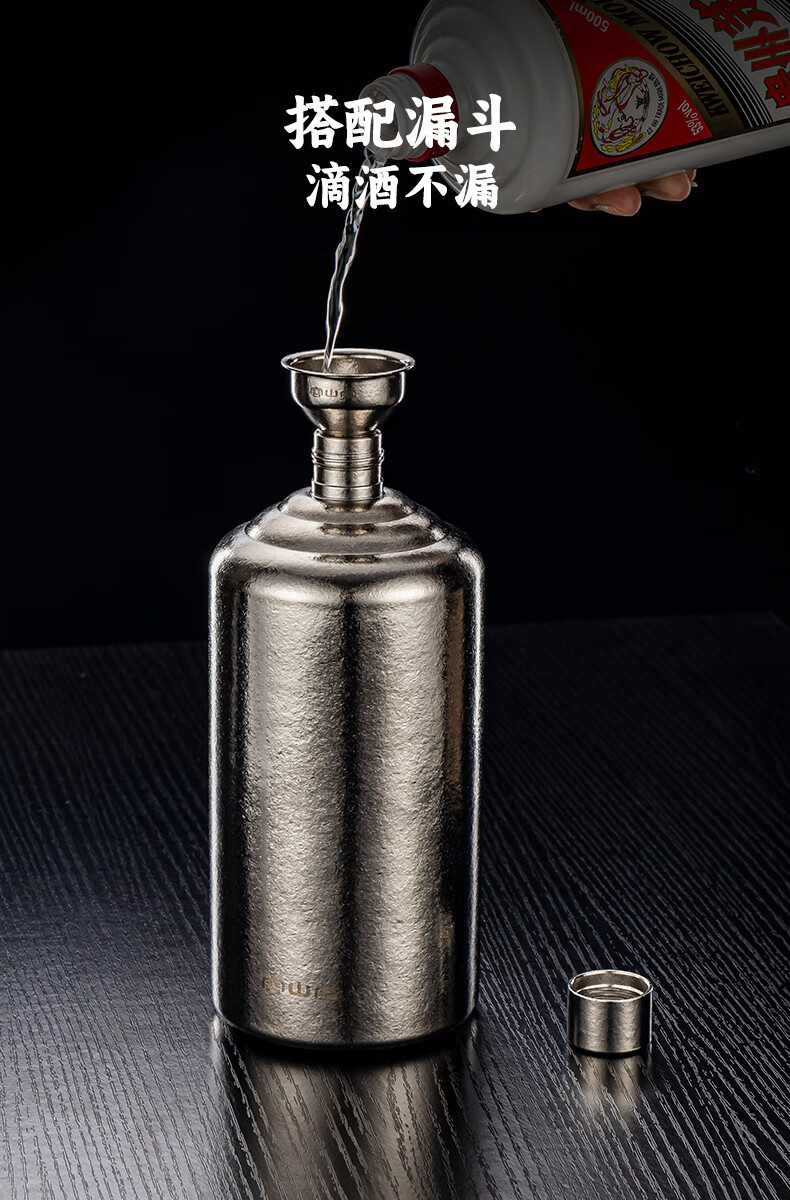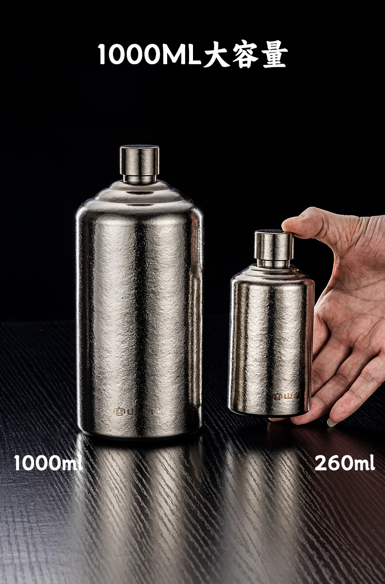 Rongshantang Pure Titanium Wine Bottle Home Large Capacity Portable High-End Exquisite Empty Wine Bottle White Wine Bottle Wine Bottle Filled with White Wine Extra Large Pure Titanium Wine Bottle-1000ml Haoyue Silver