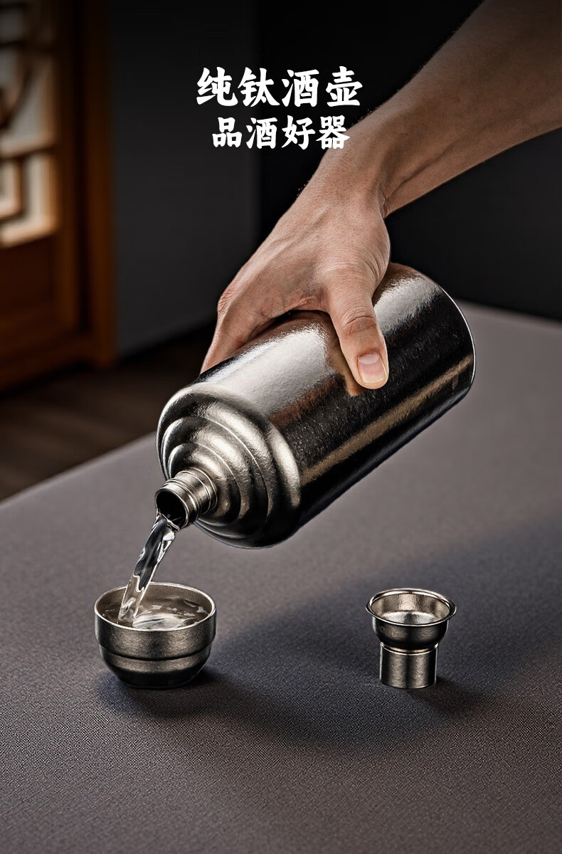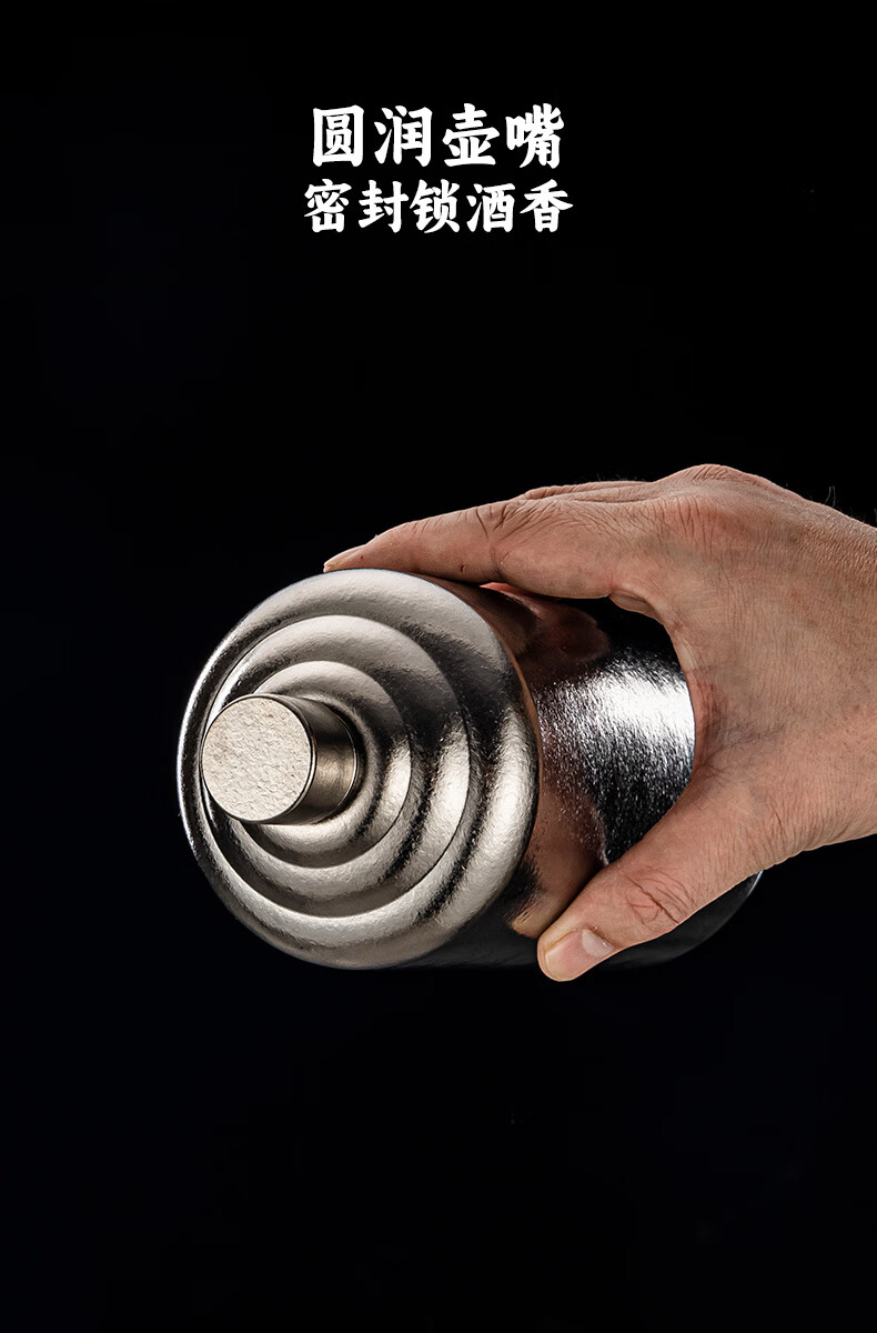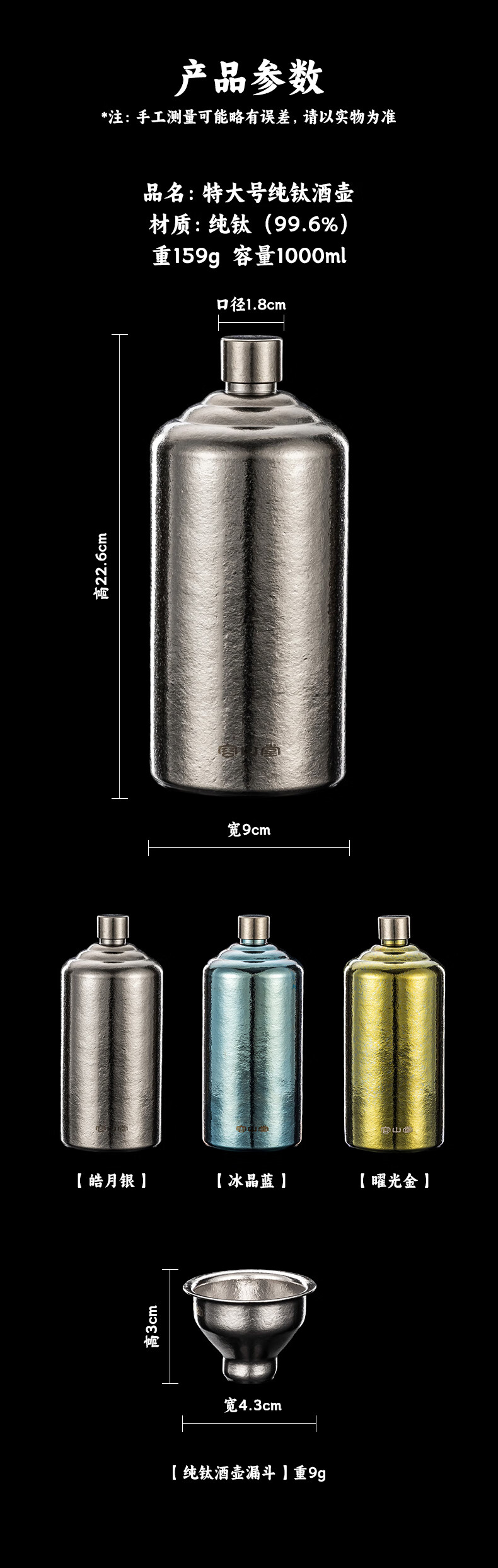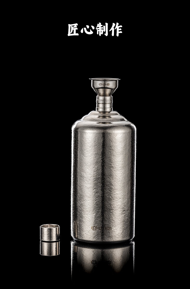 Rongshantang Pure Titanium Wine Bottle Home Large Capacity Portable High-End Exquisite Empty Wine Bottle White Wine Bottle Wine Bottle Filled with White Wine Extra Large Pure Titanium Wine Bottle-1000ml Haoyue Silver