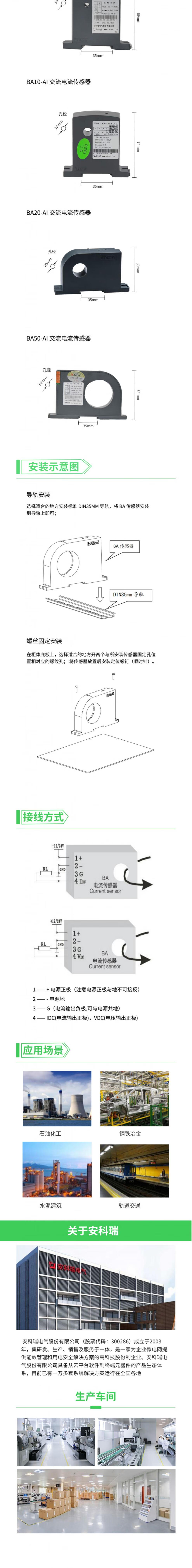 Ankerui BA20-AI/I AC current transmitter 600A output DC4-20mA/0-5V current transformer BA05-AI_I(V)10A
