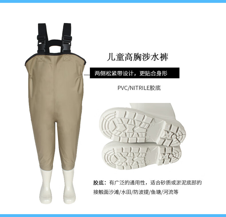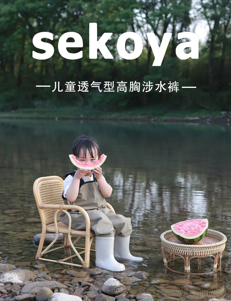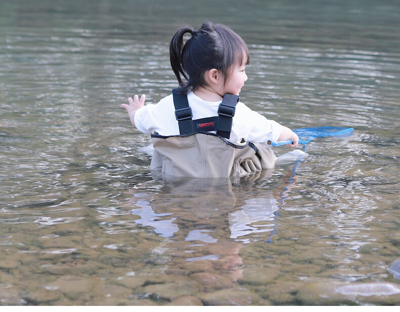 SEKOYA one-piece children's play wear wading pants, light and breathable, fishing in the sea, beaches and streams, suspenders, one-piece bottom M _Height (125-145C)