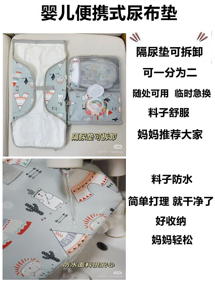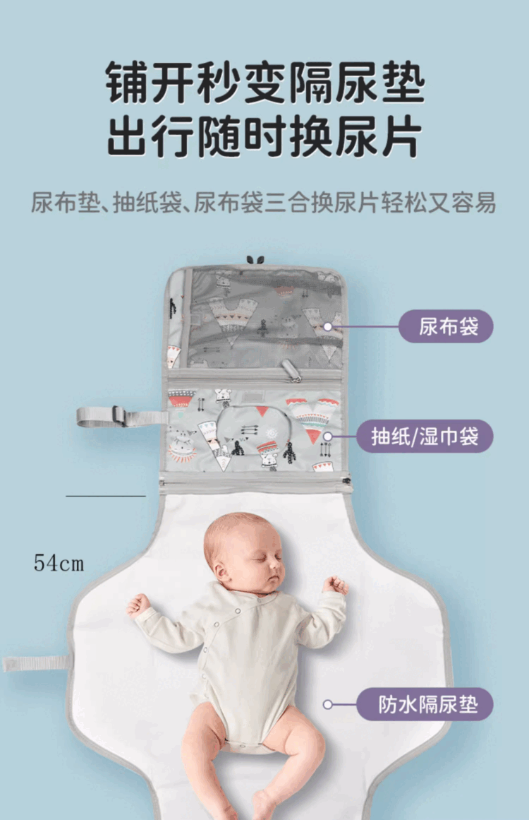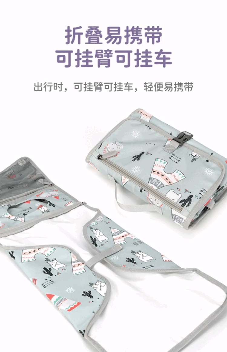 Portable baby changing pad, waterproof oxford cloth urine barrier, portable tissue paper diaper storage mommy bag, gray portable baby changing pad