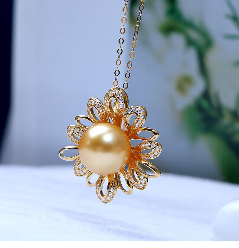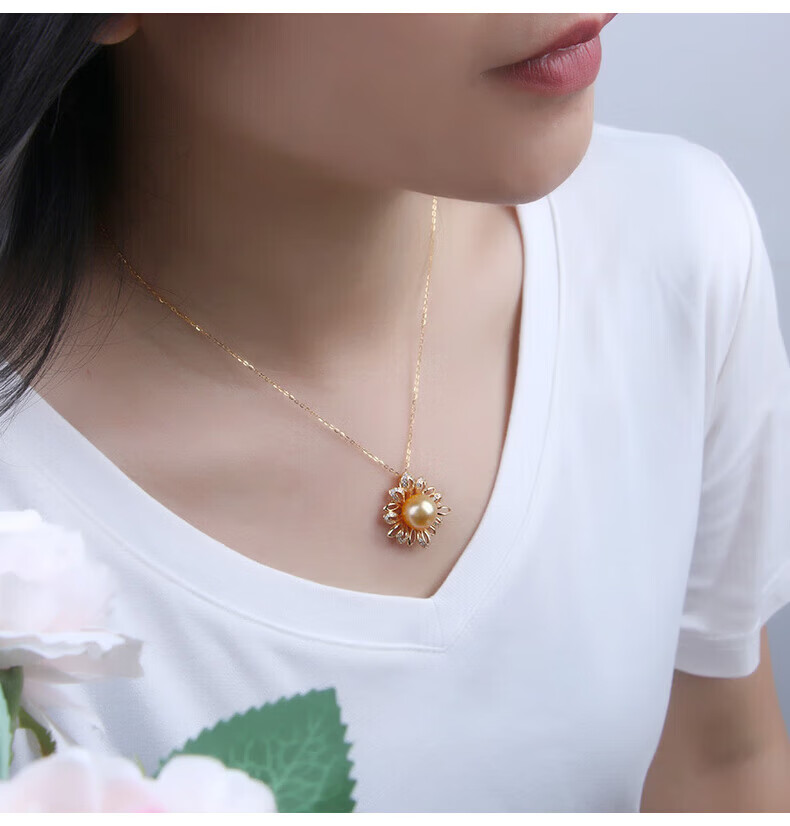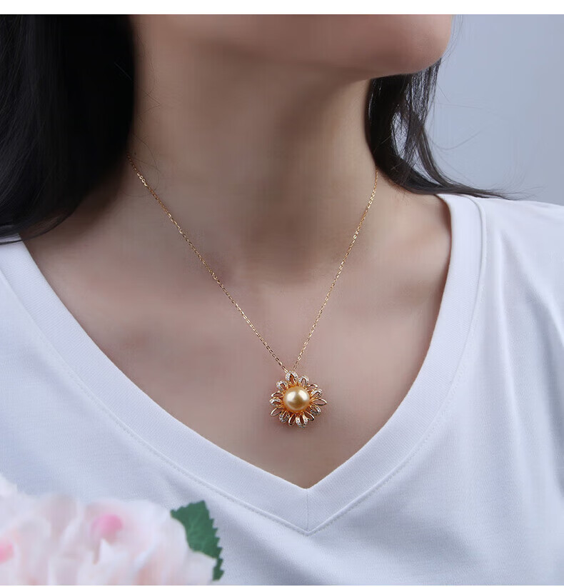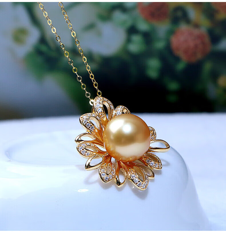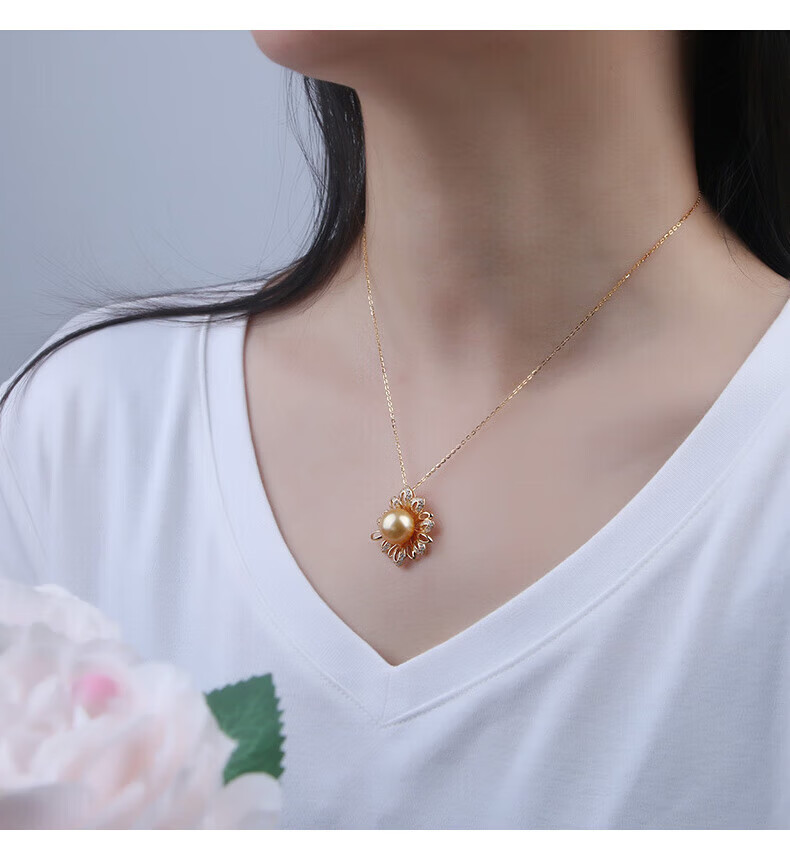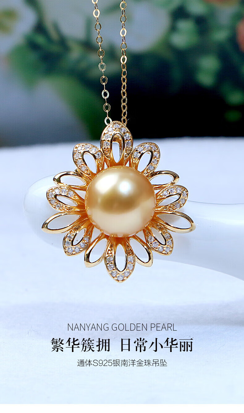 Queshe S925 silver seawater South Sea gold bead pendant single gold bead necklace for girlfriend, mother-in-law, mother 10-11mm -11mm