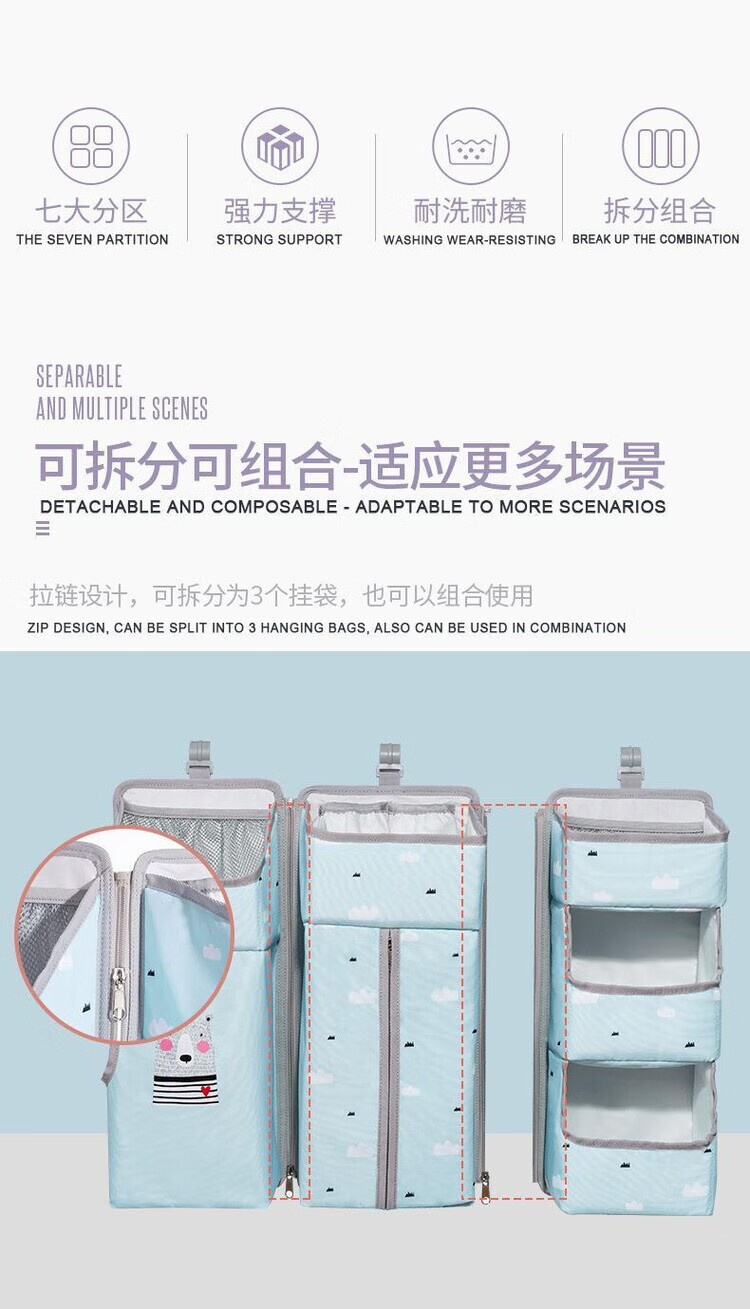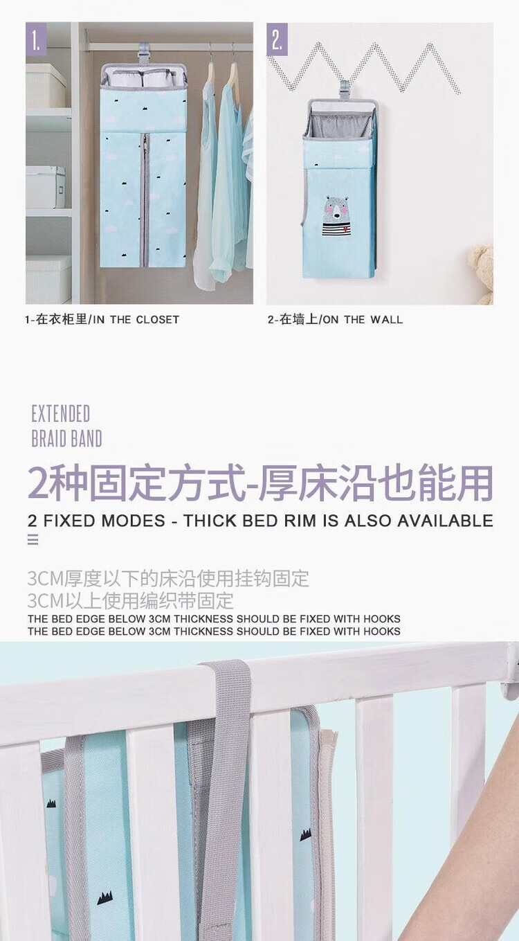 Baby bedside hanging bag storage bag storage bag baby BB diaper non-wet wipes paper storage rack hanging bag hanging basket sapphire blue (not separable)