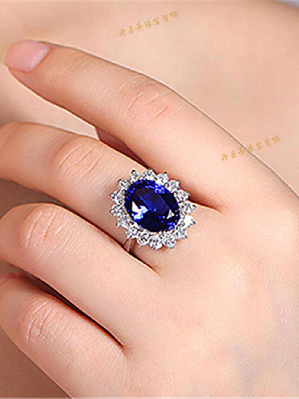 Stone pigeon wearing sapphire ring tanzanite sapphire ring colorful treasure female live mouth ring blue diamond ring white gold opening adjustable