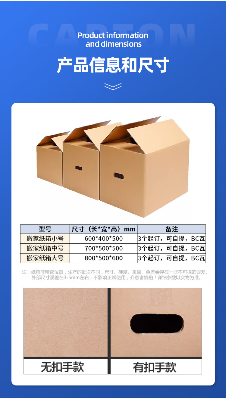 Extra large moving carton, five layers, extra hard and thick, storage box for moving, packing carton, custom express carton, small size 600*400*500mm, 3 clasp-free hands