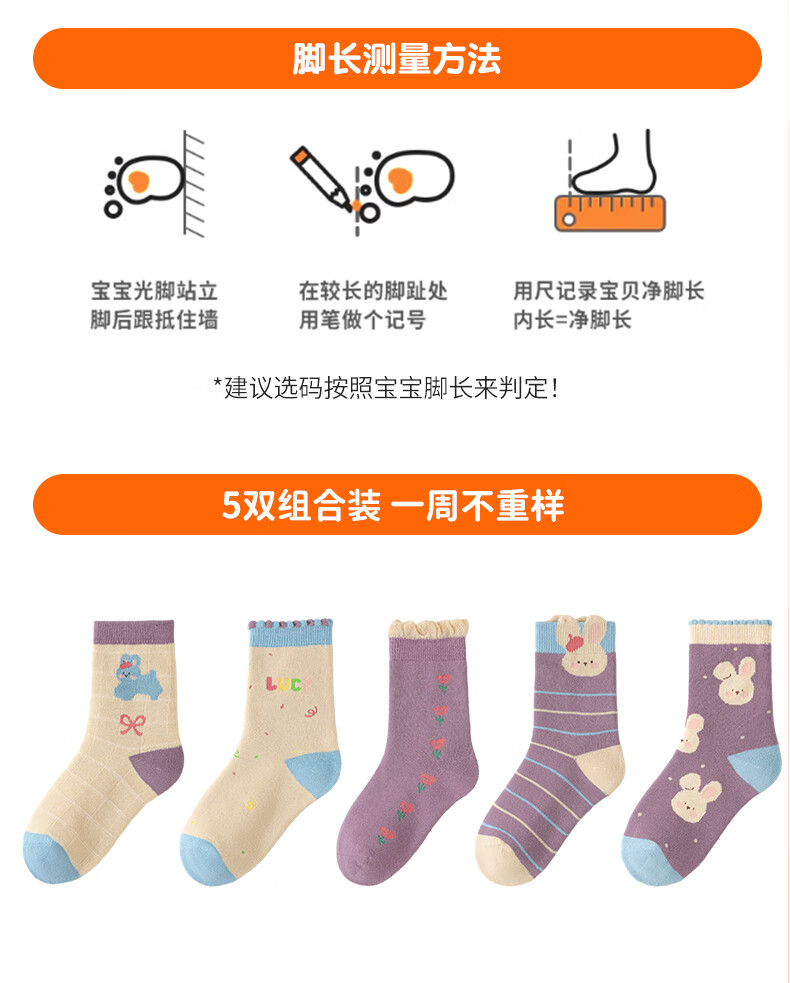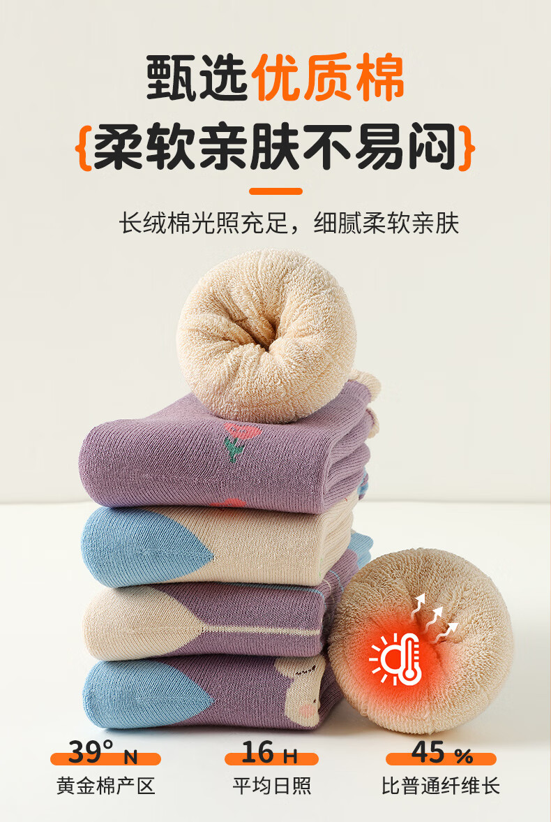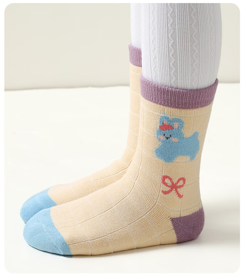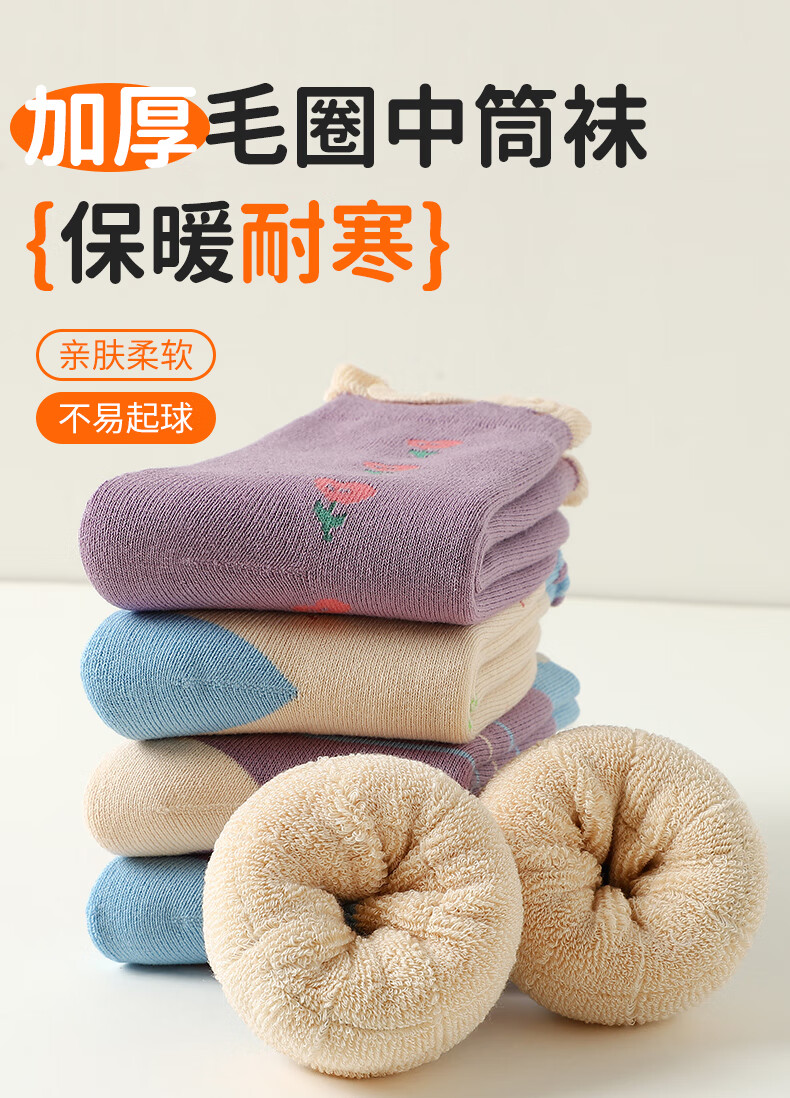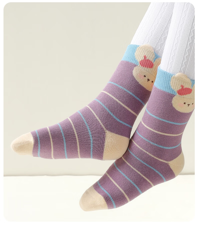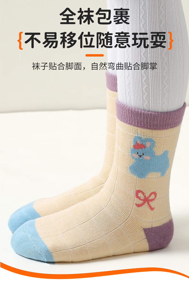 Catman Children's Socks Girls' Autumn and Winter Mid-Tube Socks Plus Velvet Thickened Terry Socks Winter Girls' Baby Winter Long Socks Girls' Thickened Terry Socks 5 Pairs 3-5 Years Old (M)