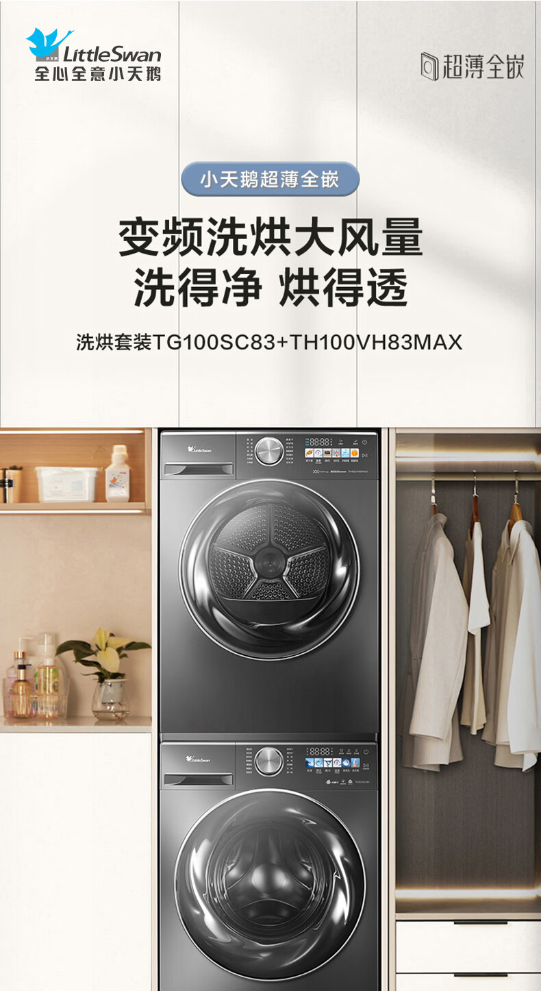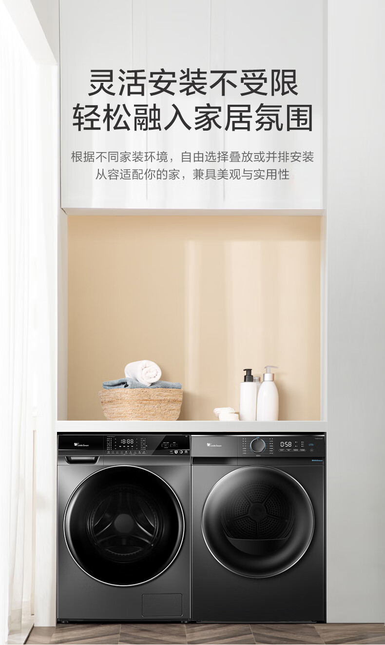 LittleSwan Wasch- und Trocknungsset 10 kg Frequenzumwandlungs-Trommelwaschmaschine Niedertemperatur-Wärmepumpe Trocknungswasser Zauberwürfel Kaltwasserwaschen Kreuzfahrtsterilisation Intelligente Lieferung Xiaowumei/Ultra-Mikroblasenreinigung/Doppelfrequenzumwandlungs-Wärmepumpe 83+VH83MAX