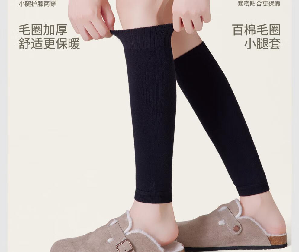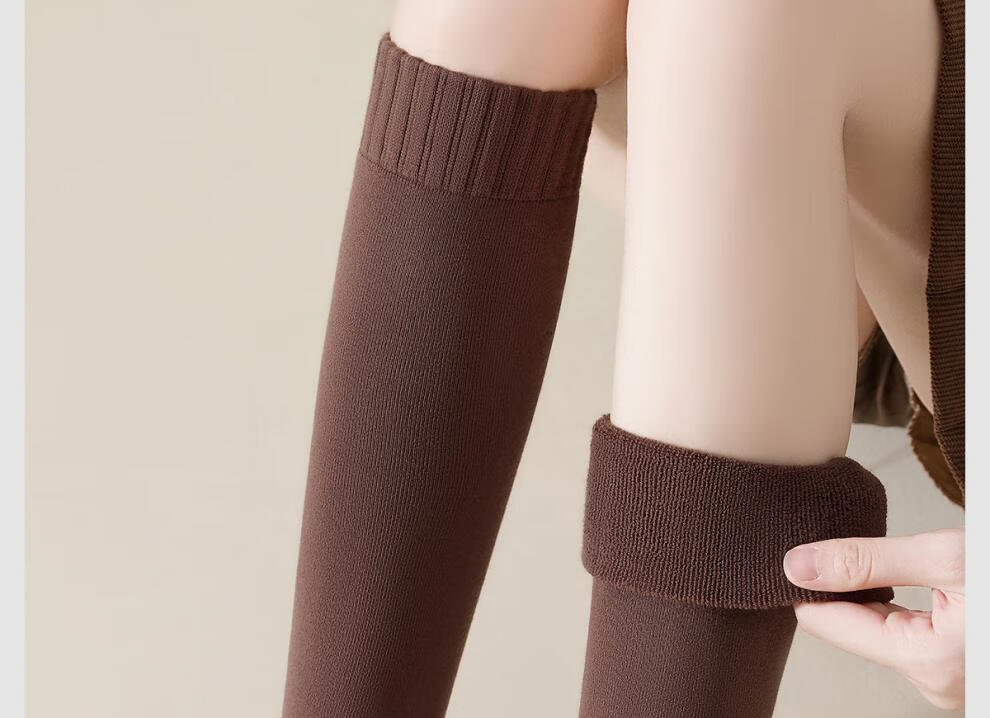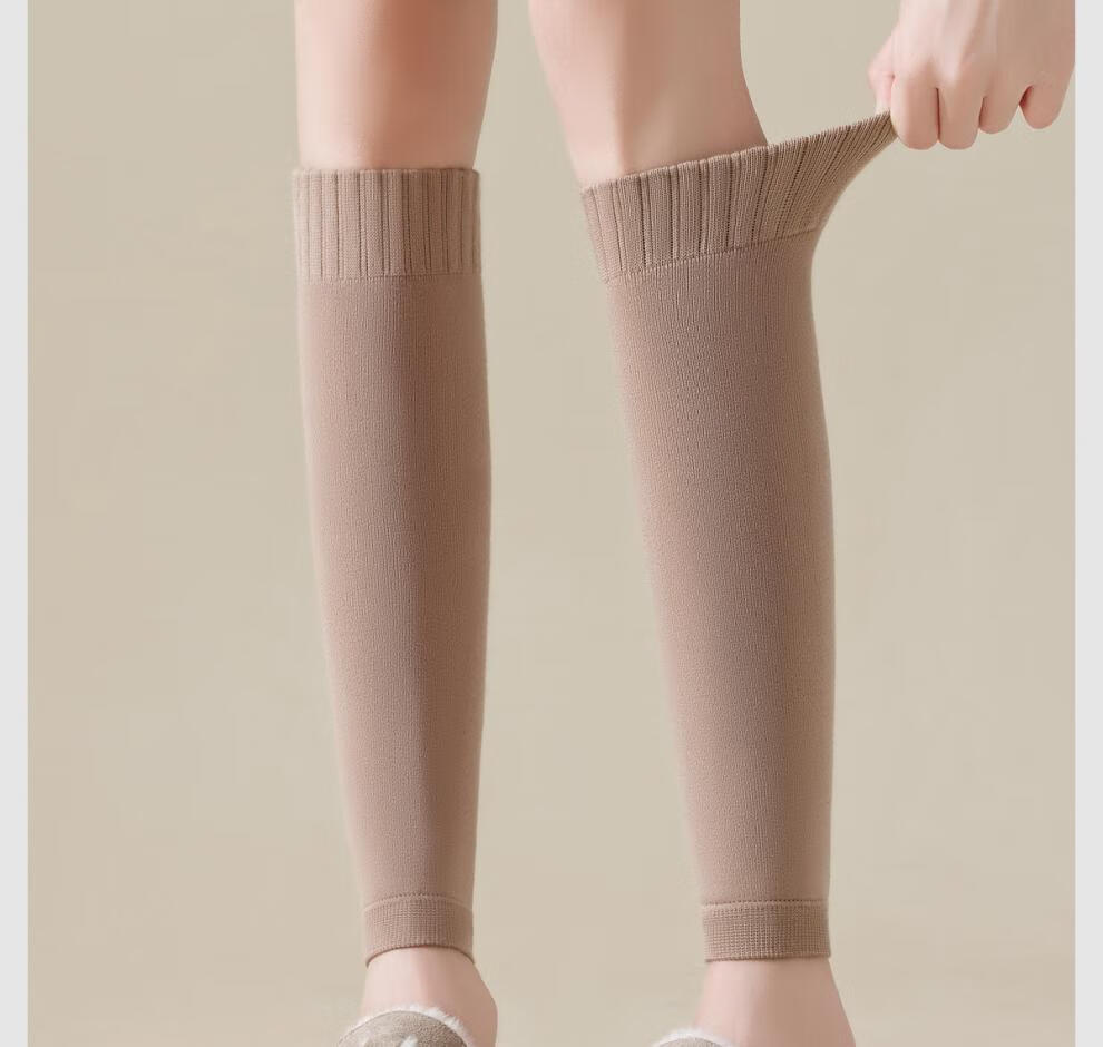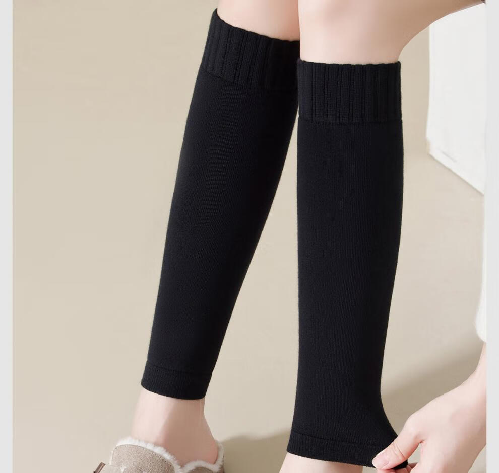 Kiss Socks Women's Terry Plus Velvet Thickened Warm Cotton Winter Warm Knee Protector Anti-Slip Calf Leg Covers Muye Black One Size