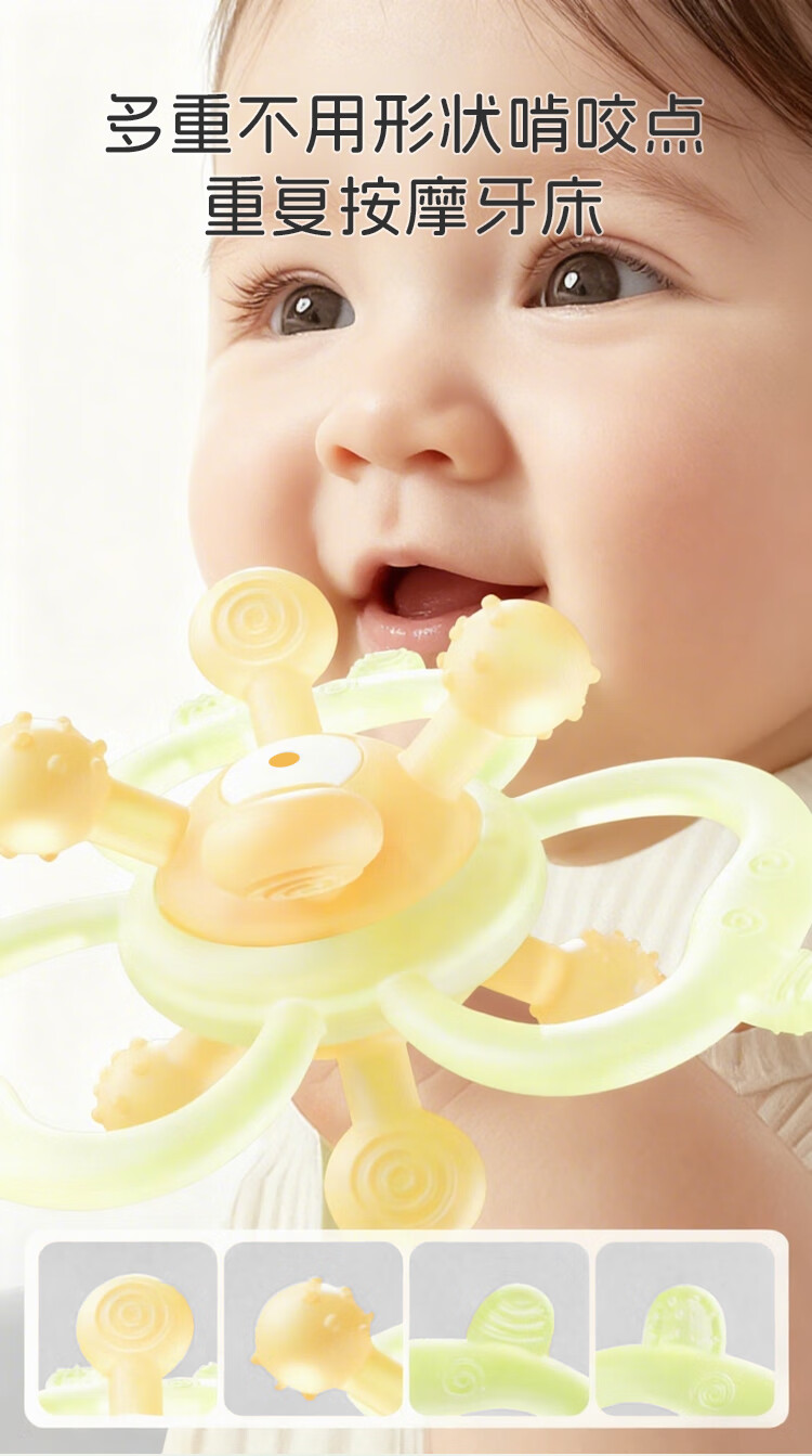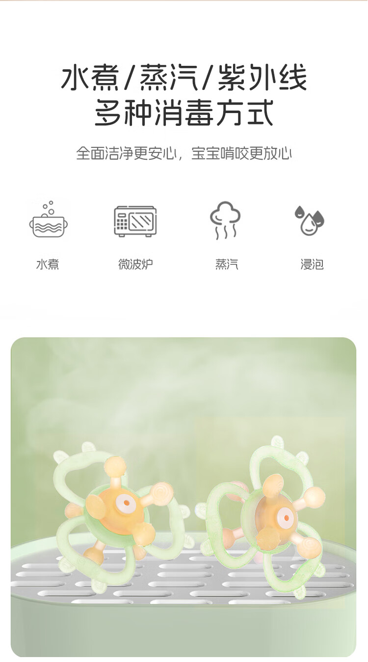Baby silicone molar stick, anti-eating hand chewing gum, Manhattan hand ball grip training molar tool, soothing teether, green mushroom teether + storage box