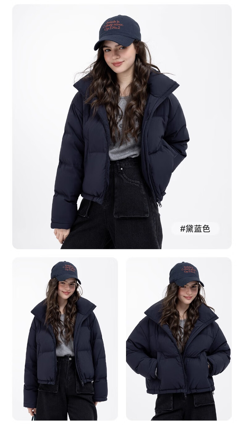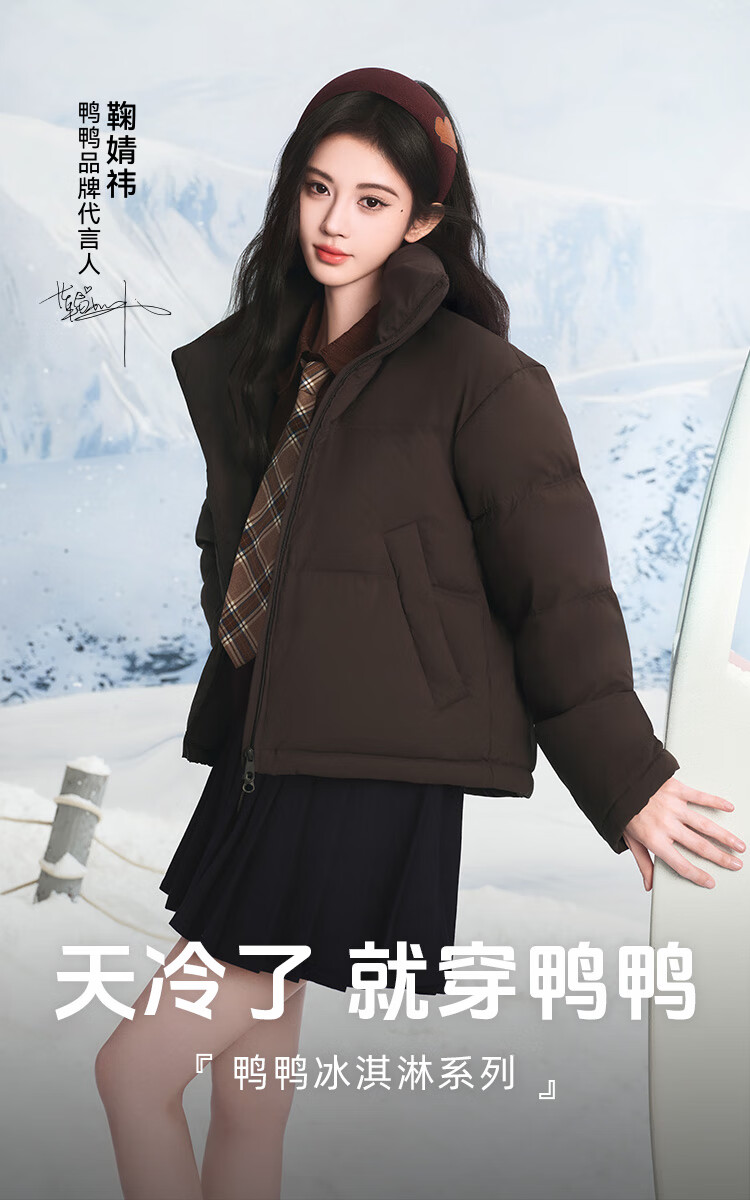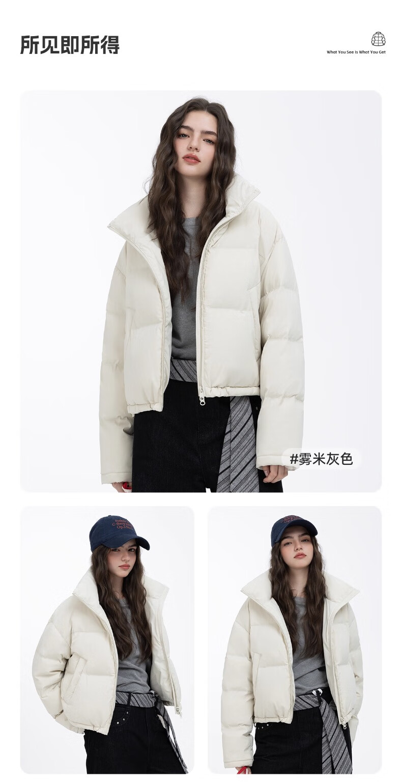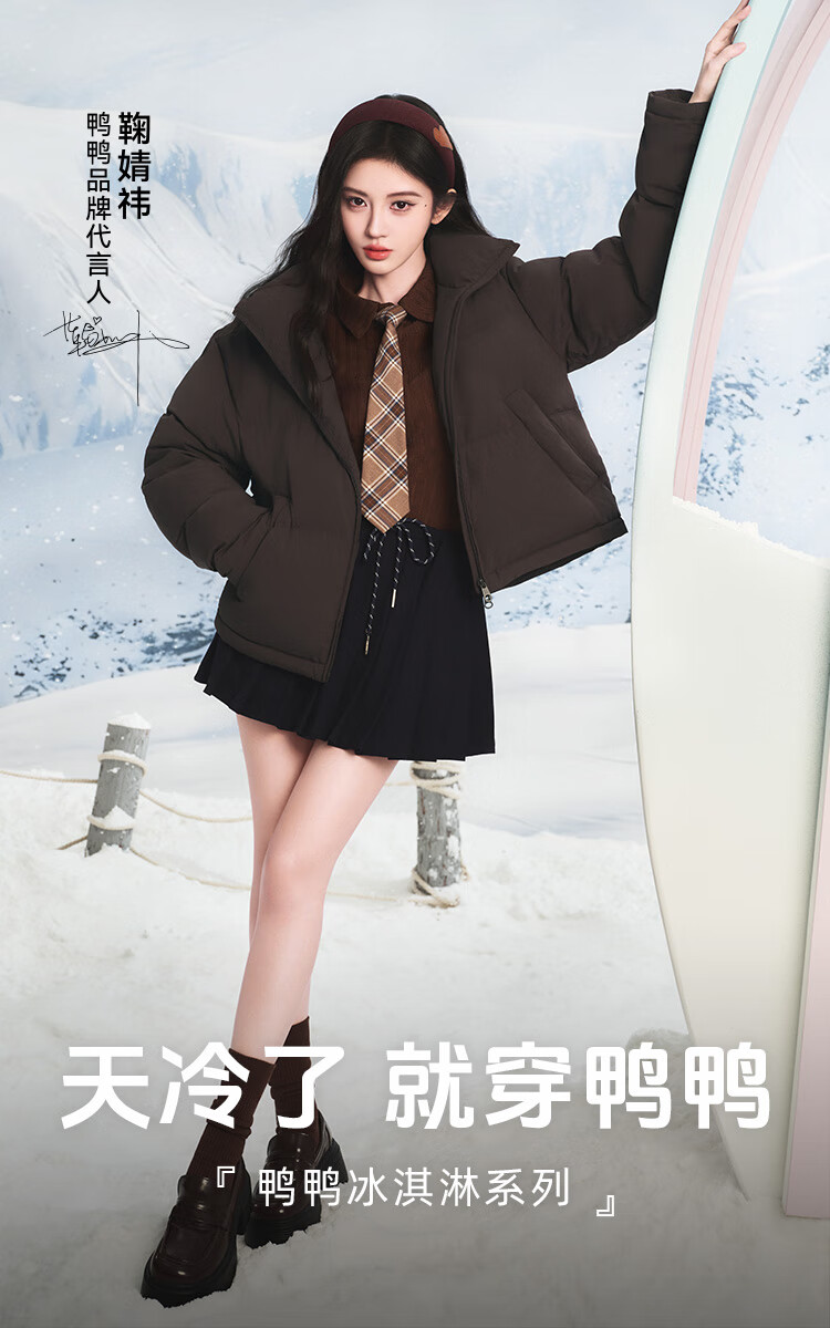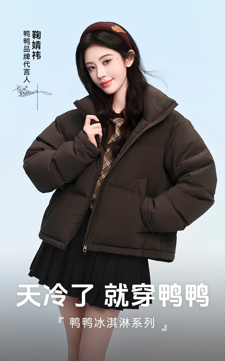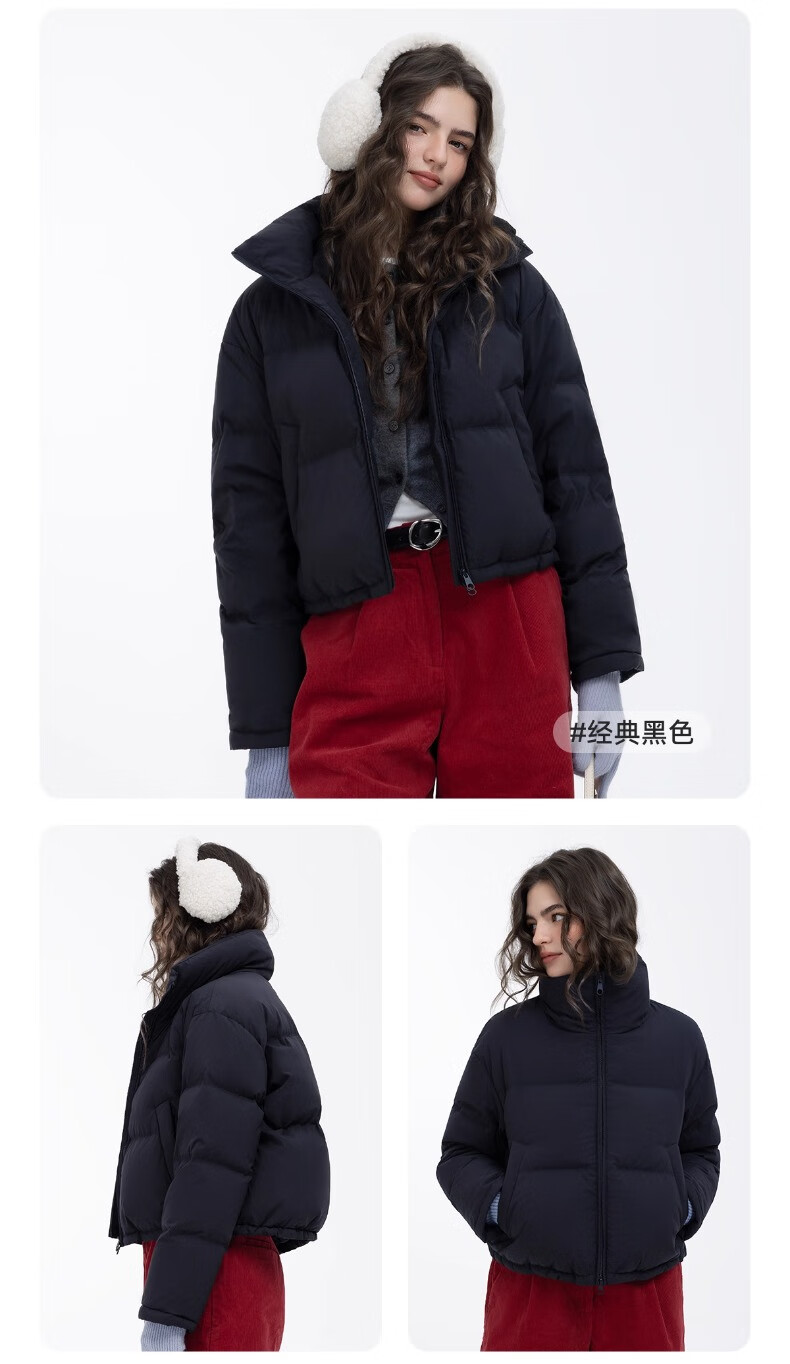 YAYA Ju Jingyi's same style 2025 winter new all-match short women's solid color stand collar down jacket YZ black M