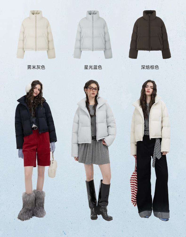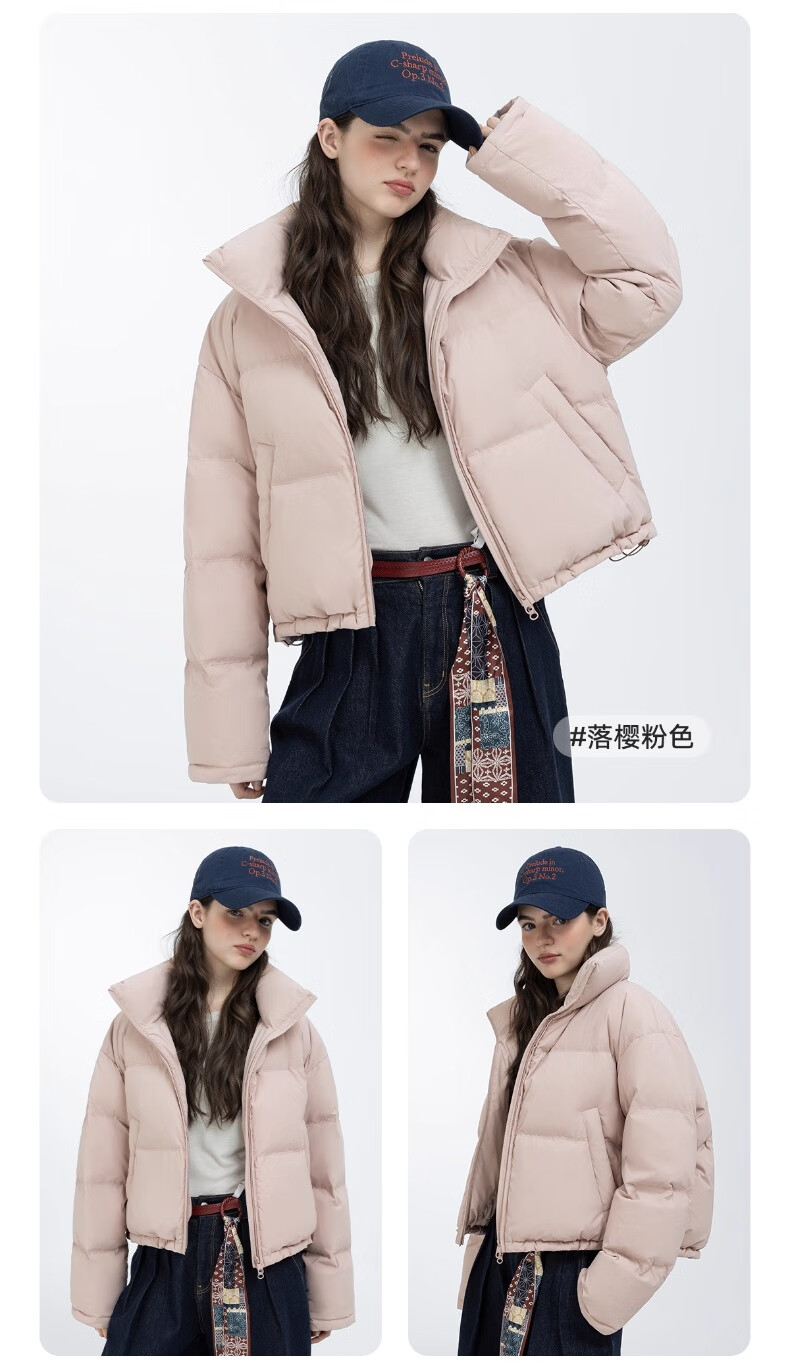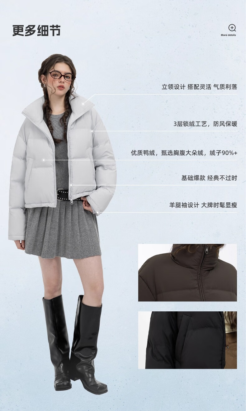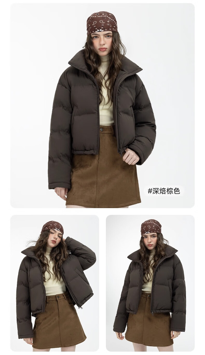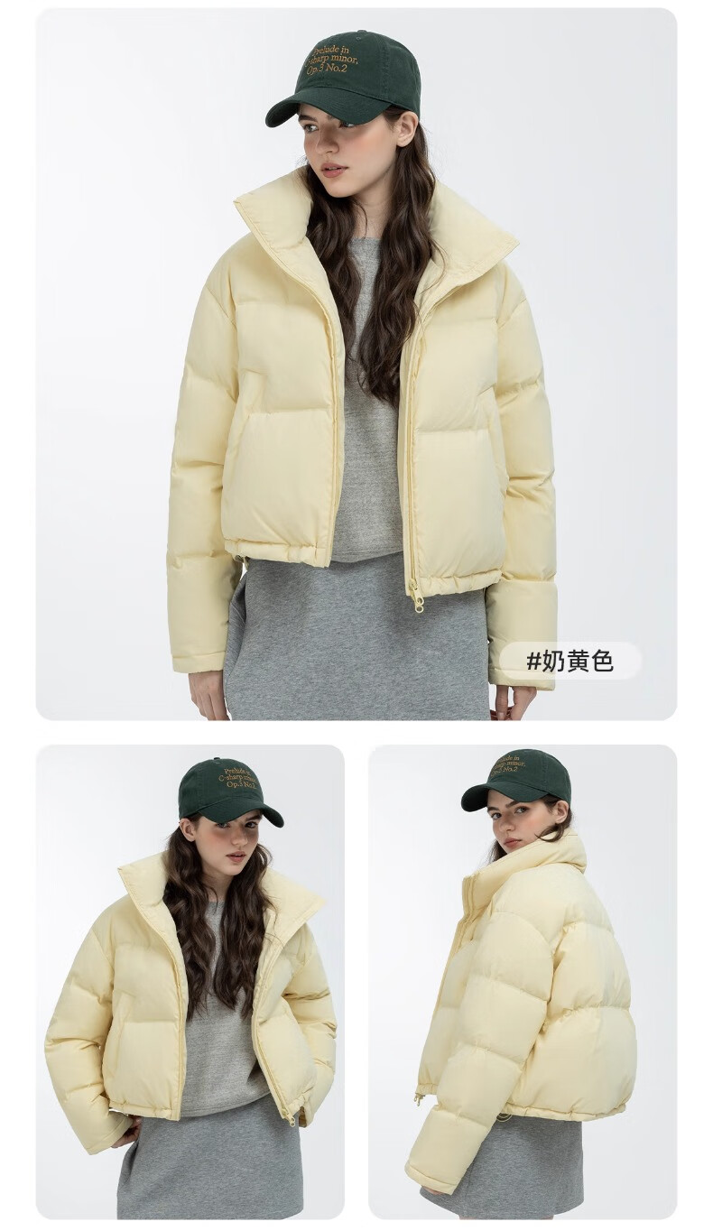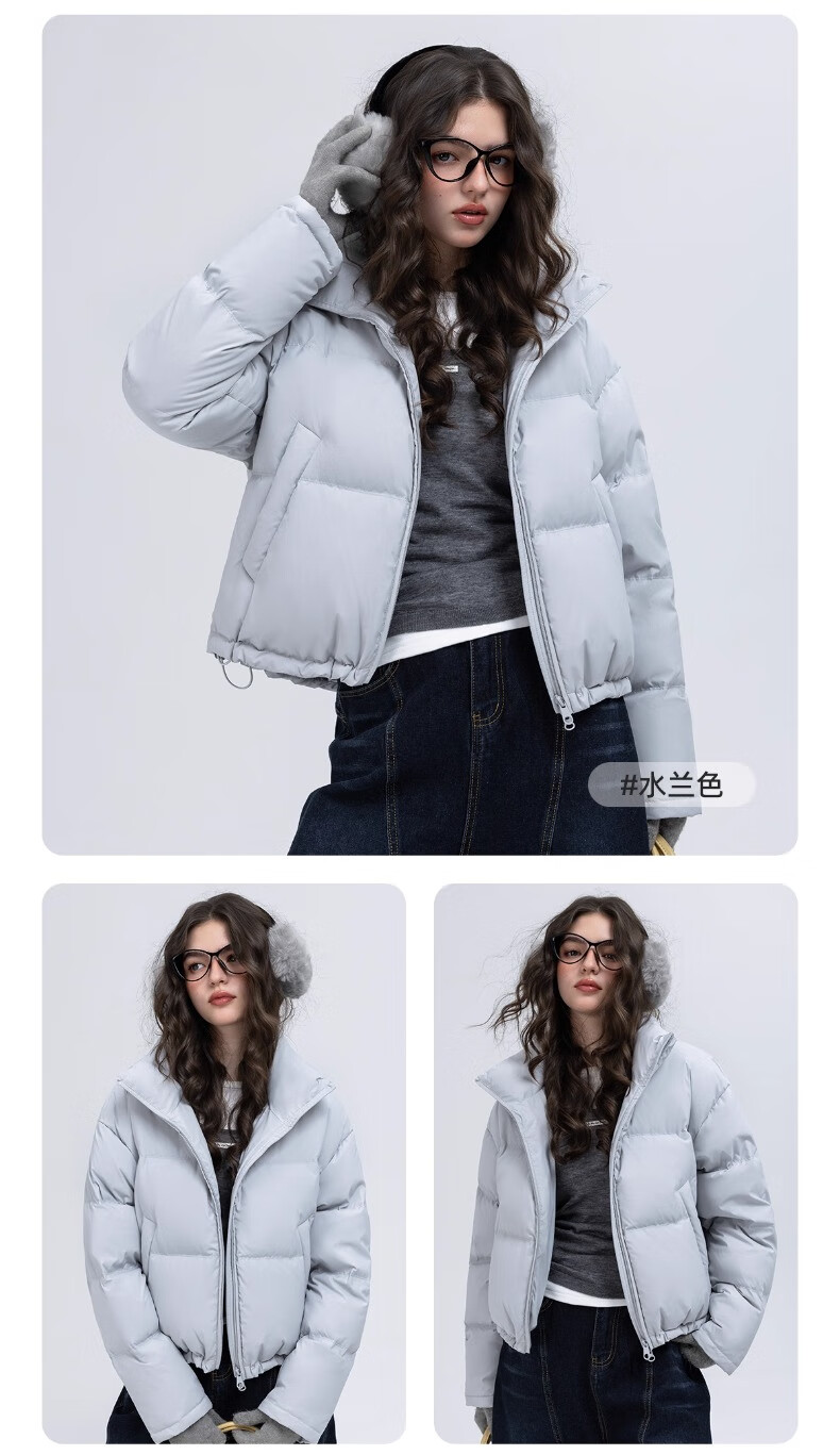 YAYA Ju Jingyi's same style 2025 winter new all-match short women's solid color stand collar down jacket YZ black M