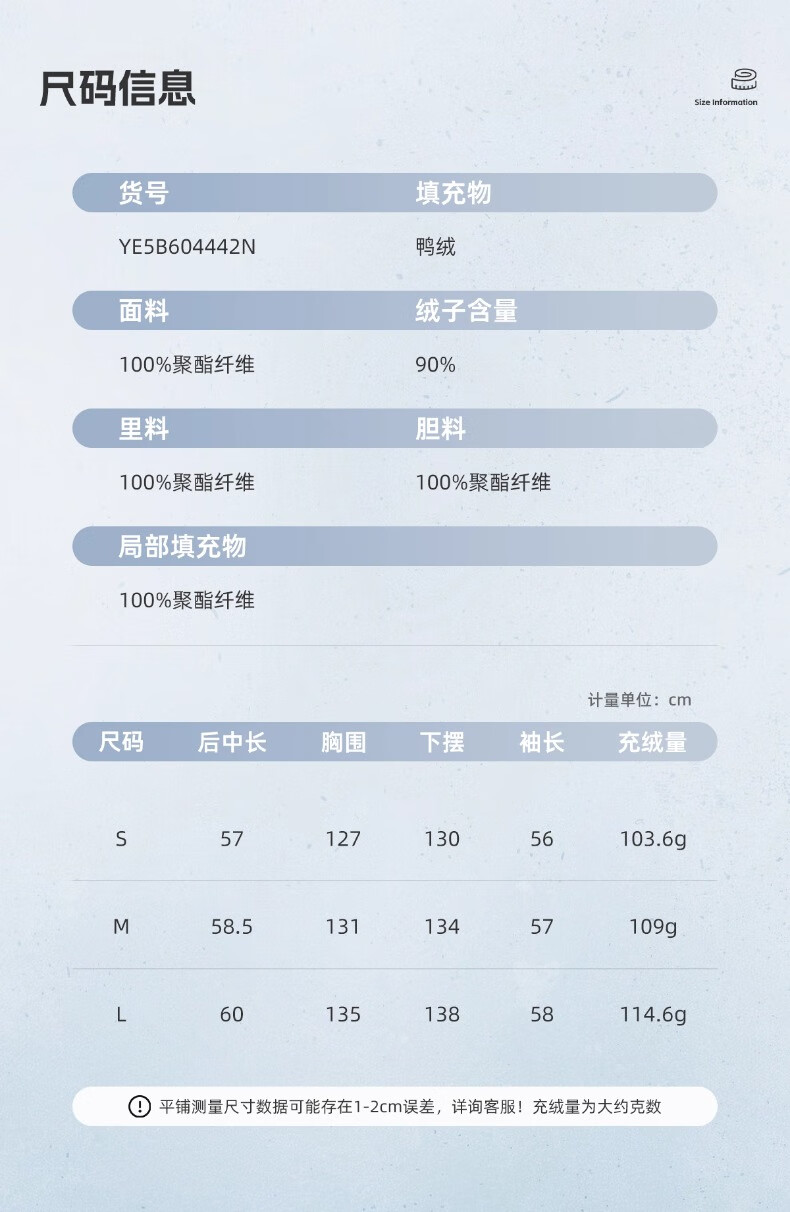 China (cm) 165 / 88-90 170 / 96-98 175 / 108-110 180 / 118-122 185 / 126-130