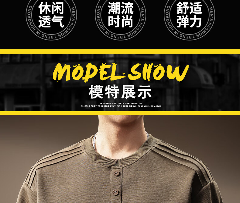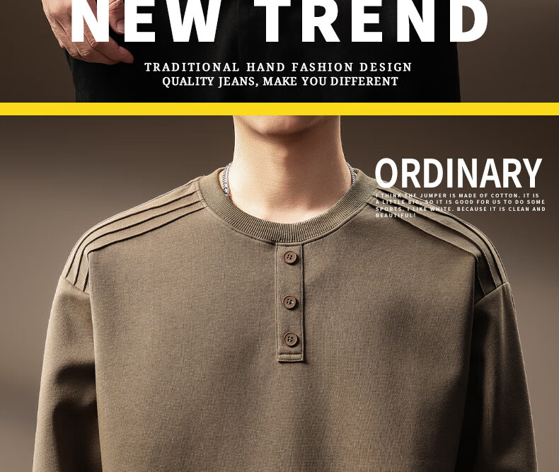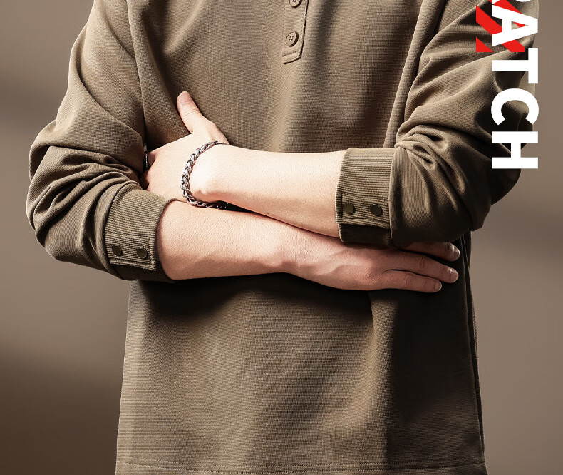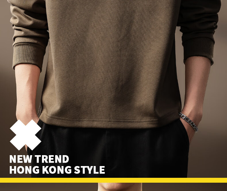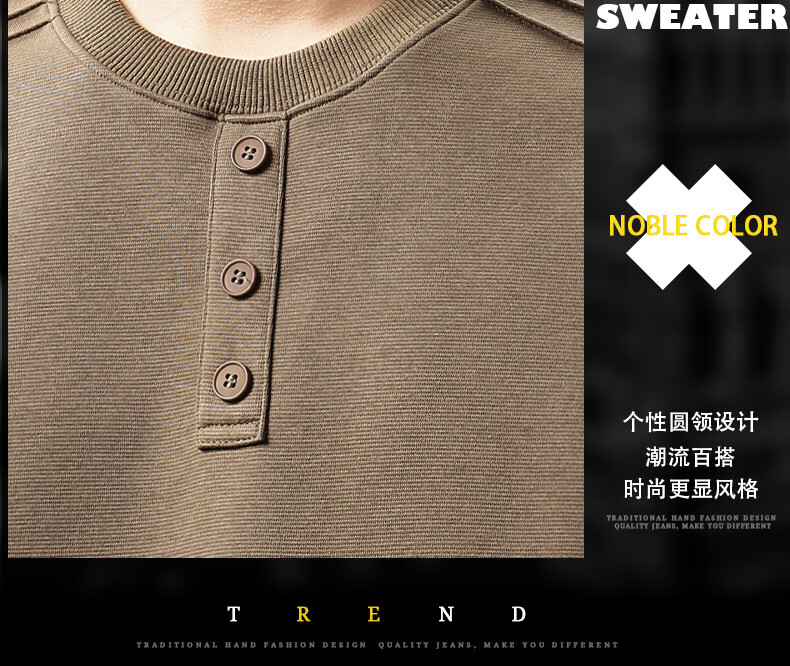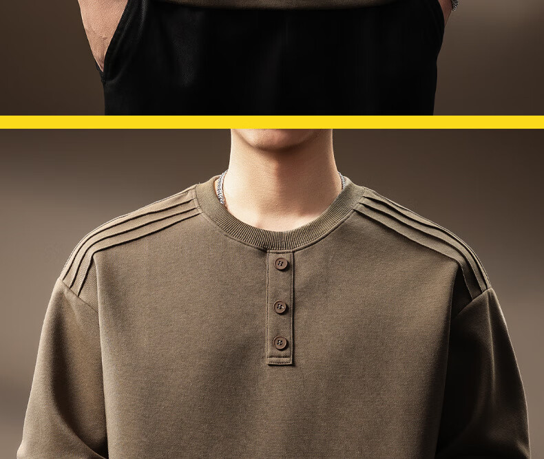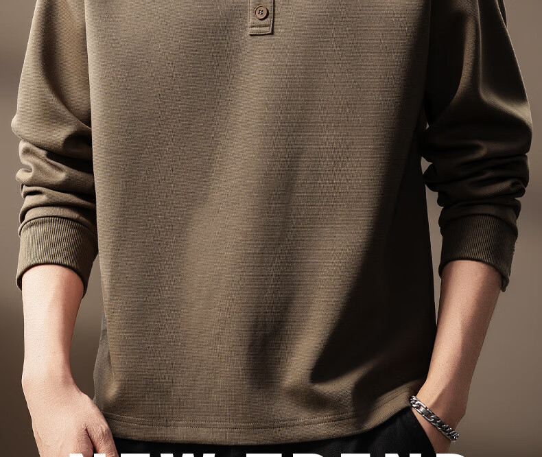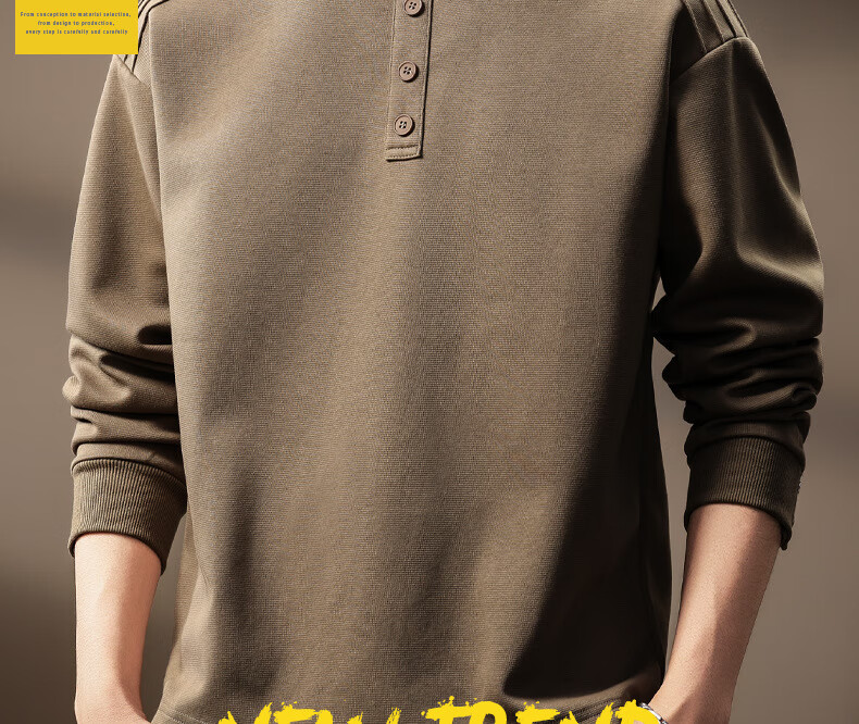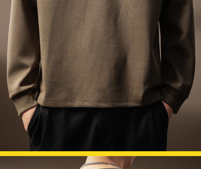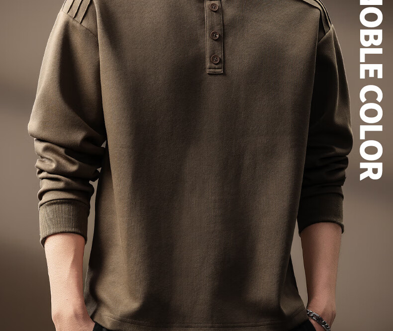 OLJ light luxury brand heavyweight Henry collar sweatshirt men's autumn design niche pleated long-sleeved T-shirt light coffee M suitable for 100-120Jin Jin equals 0.5 kg