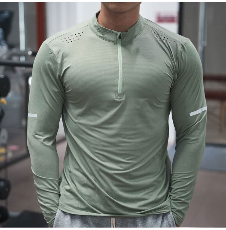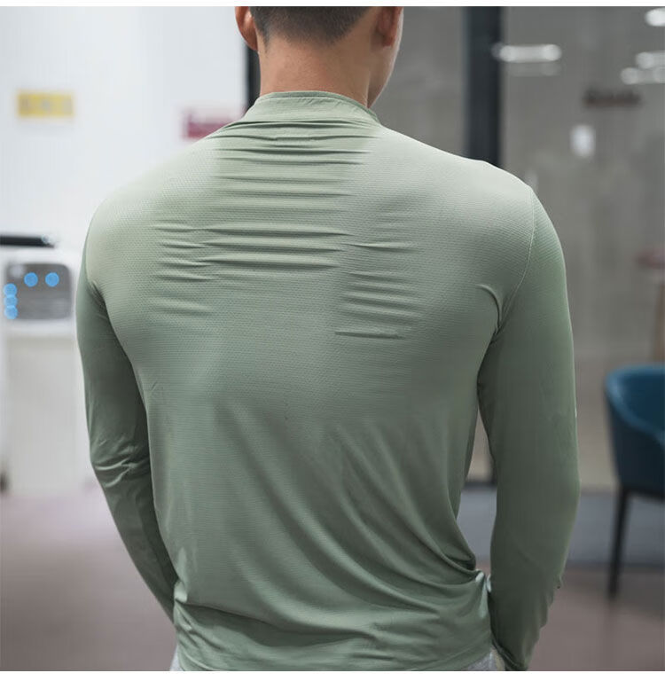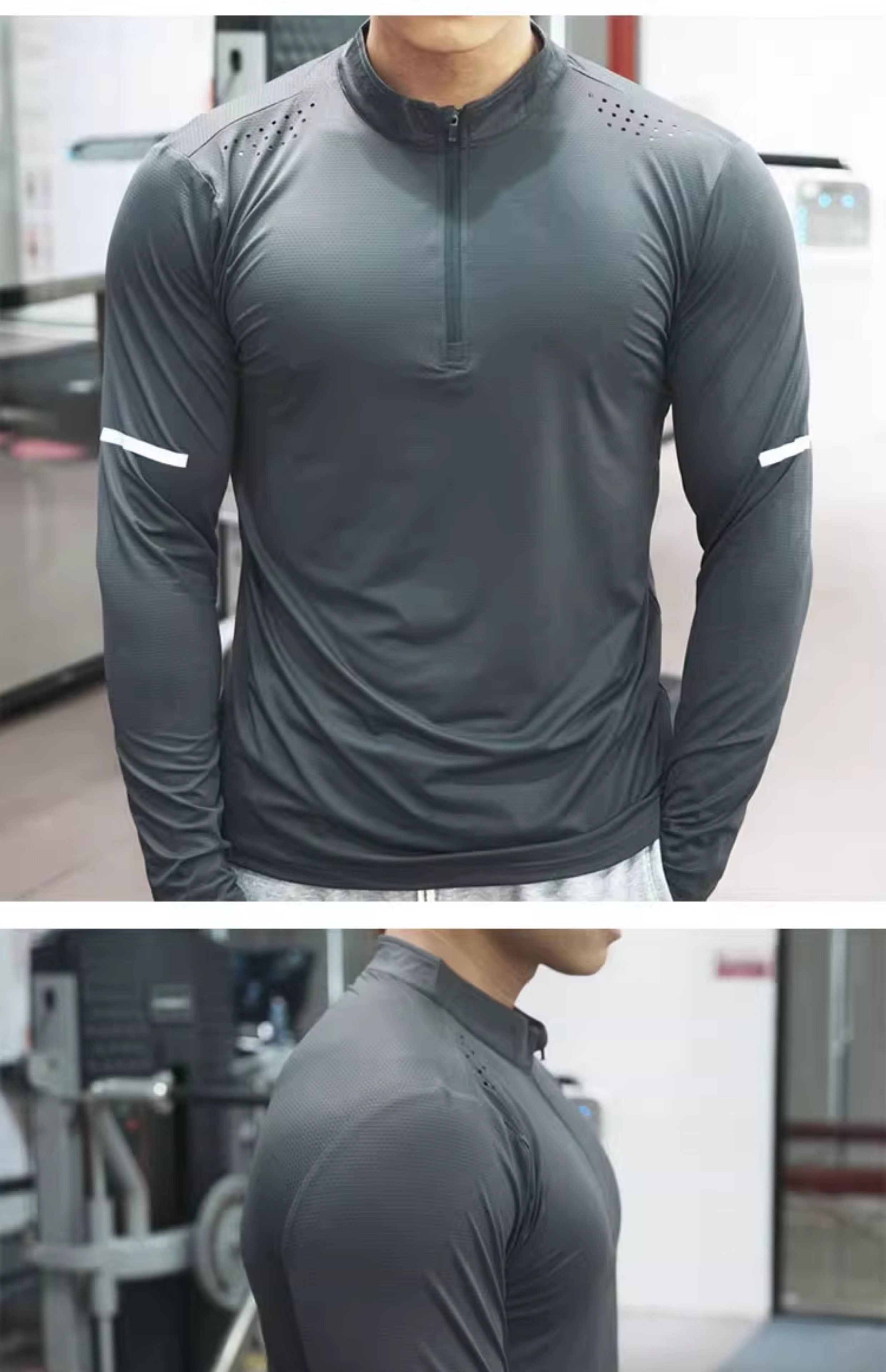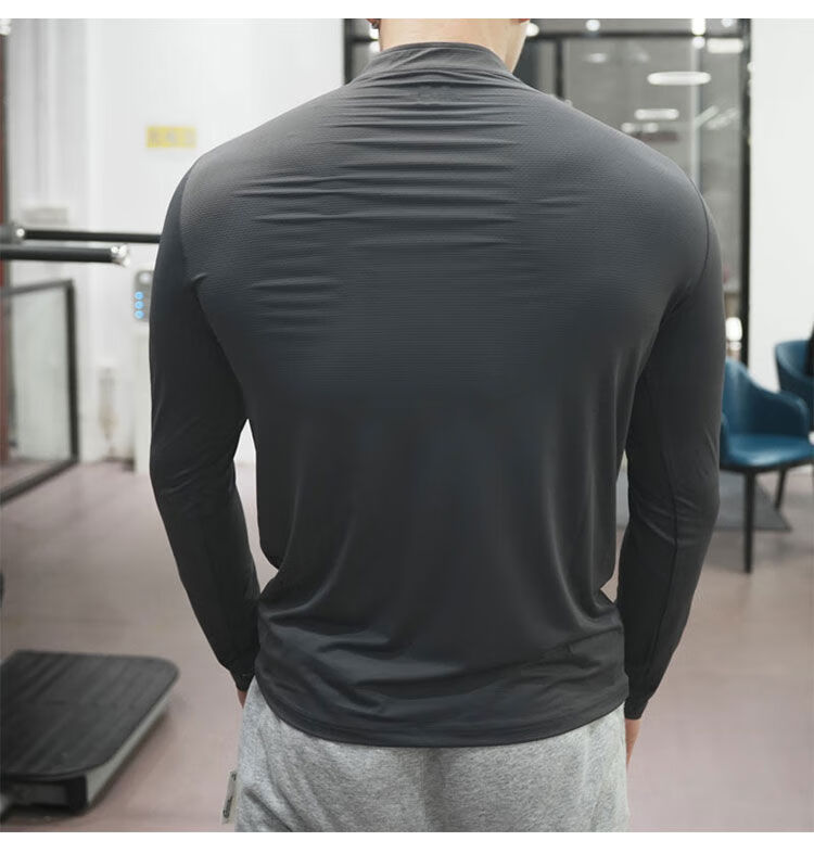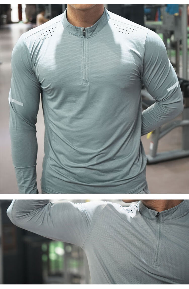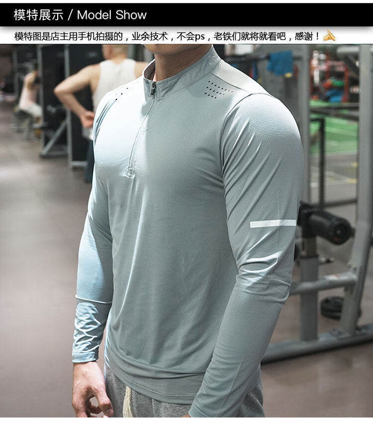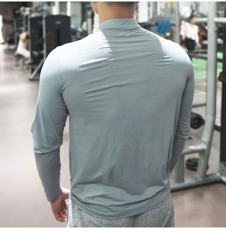 Summer fitness clothing for men, quick-drying, long-sleeved, thin, elastic and slim-fitting, outdoor running training, sports cycling clothing, sun protection, light gray XL XL
