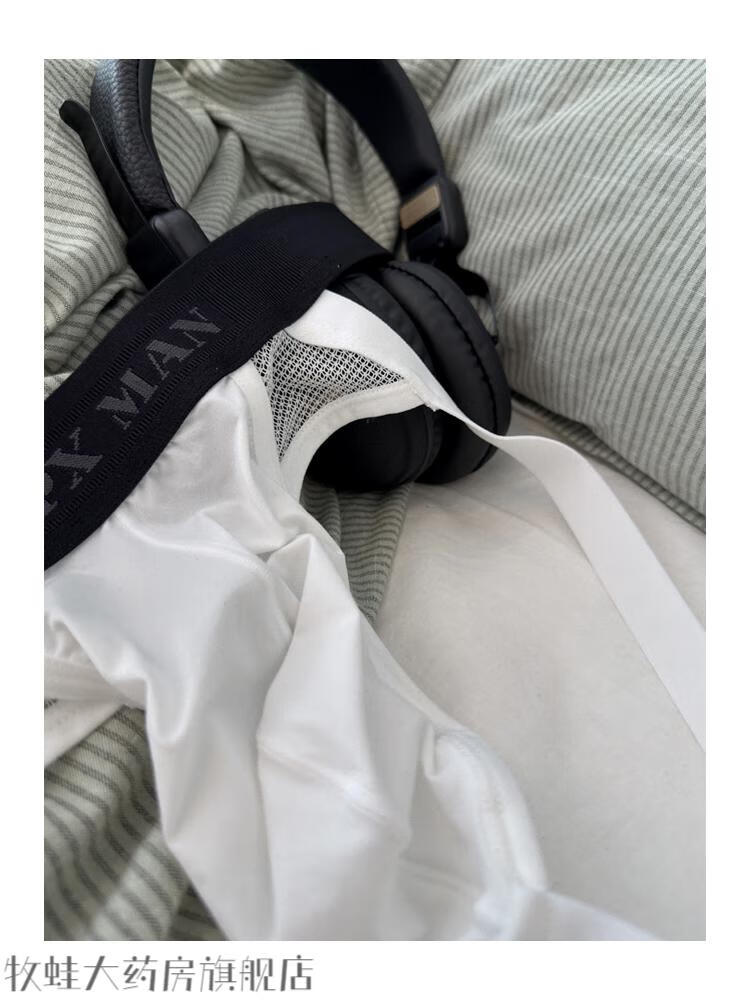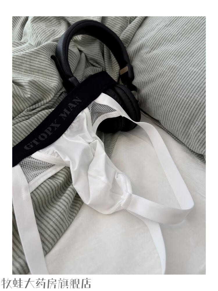 Universal men's thongs, sexy double thongs, men's underwear, contrasting color restraints, mesh stitching, white M