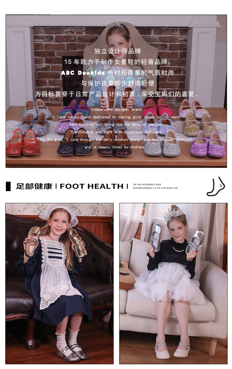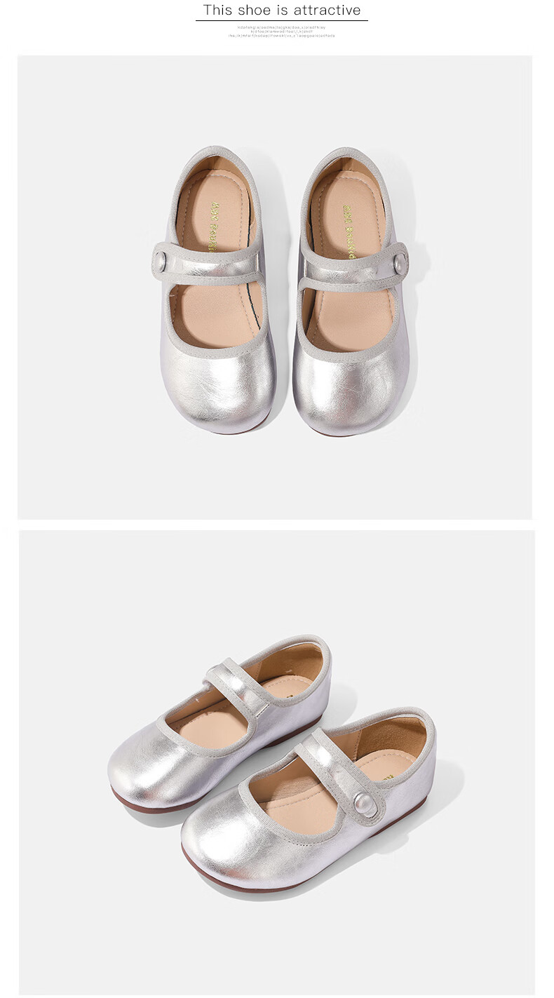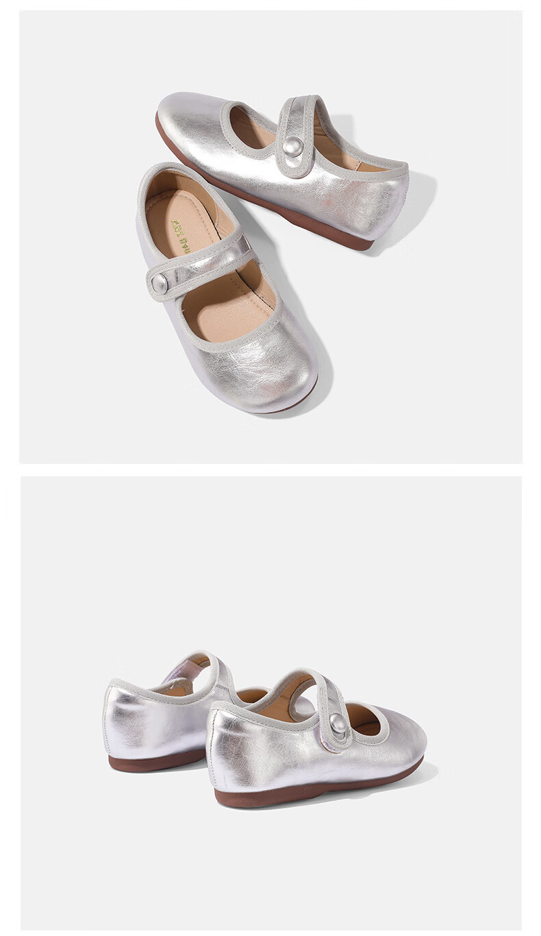 ABCdoukids Girls Princess Shoes 2025 Autumn and Winter New Children's Mary Jane Shoes Simple and Versatile Soft Sole Shoes Silver 24 Inner Length 15.5cm
